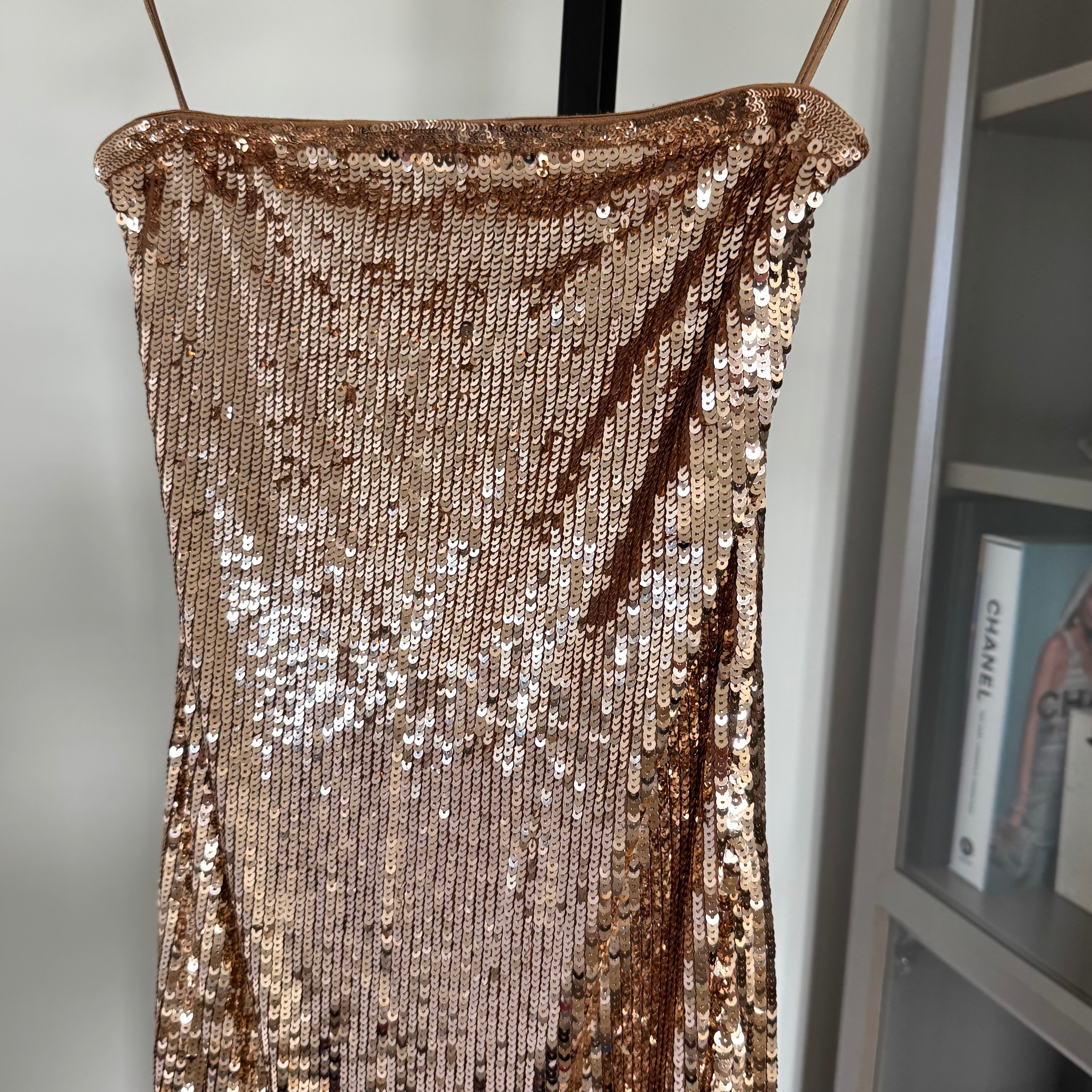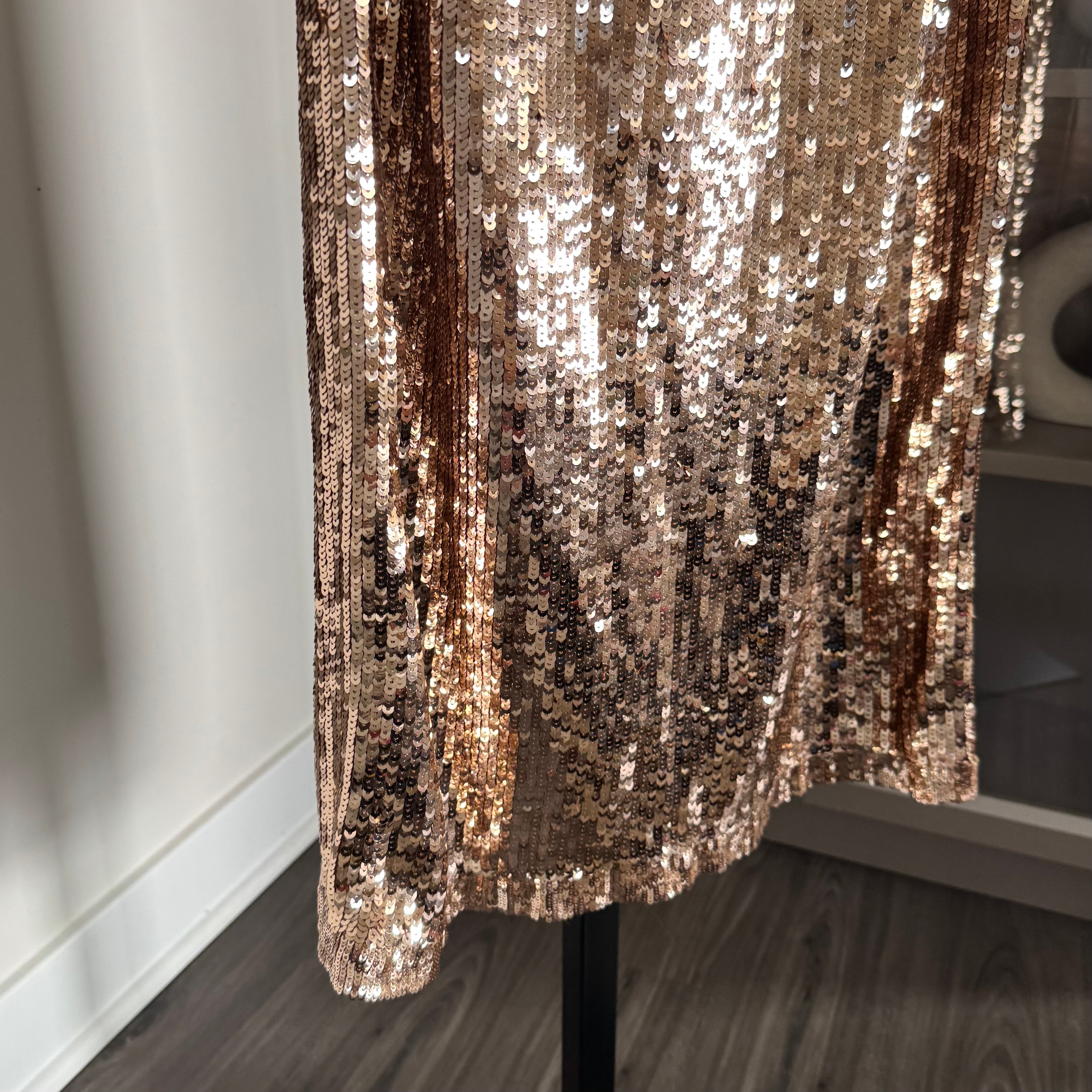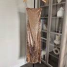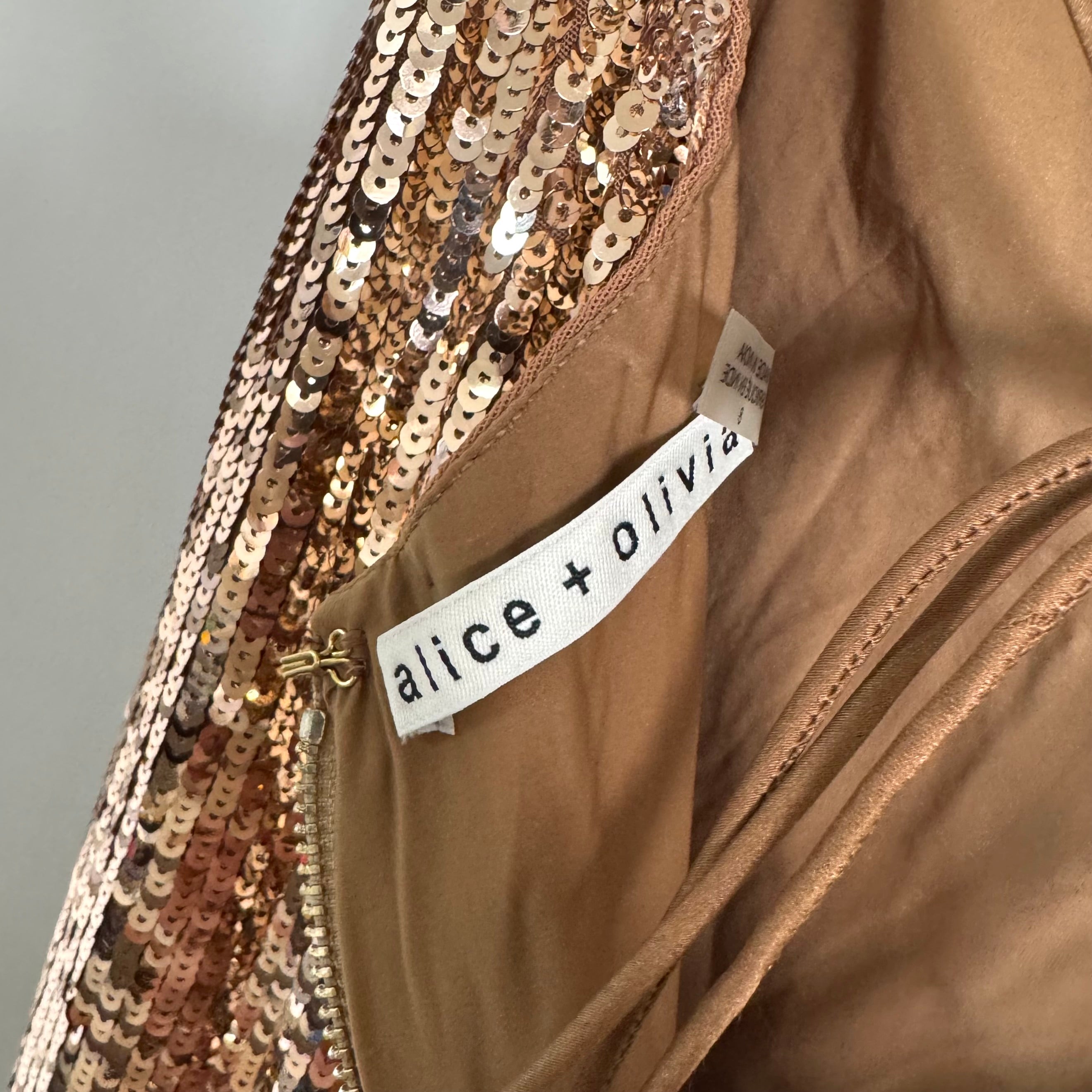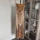 Alice + Olivia Fifi Strapless Gold Sequin Midi Dress