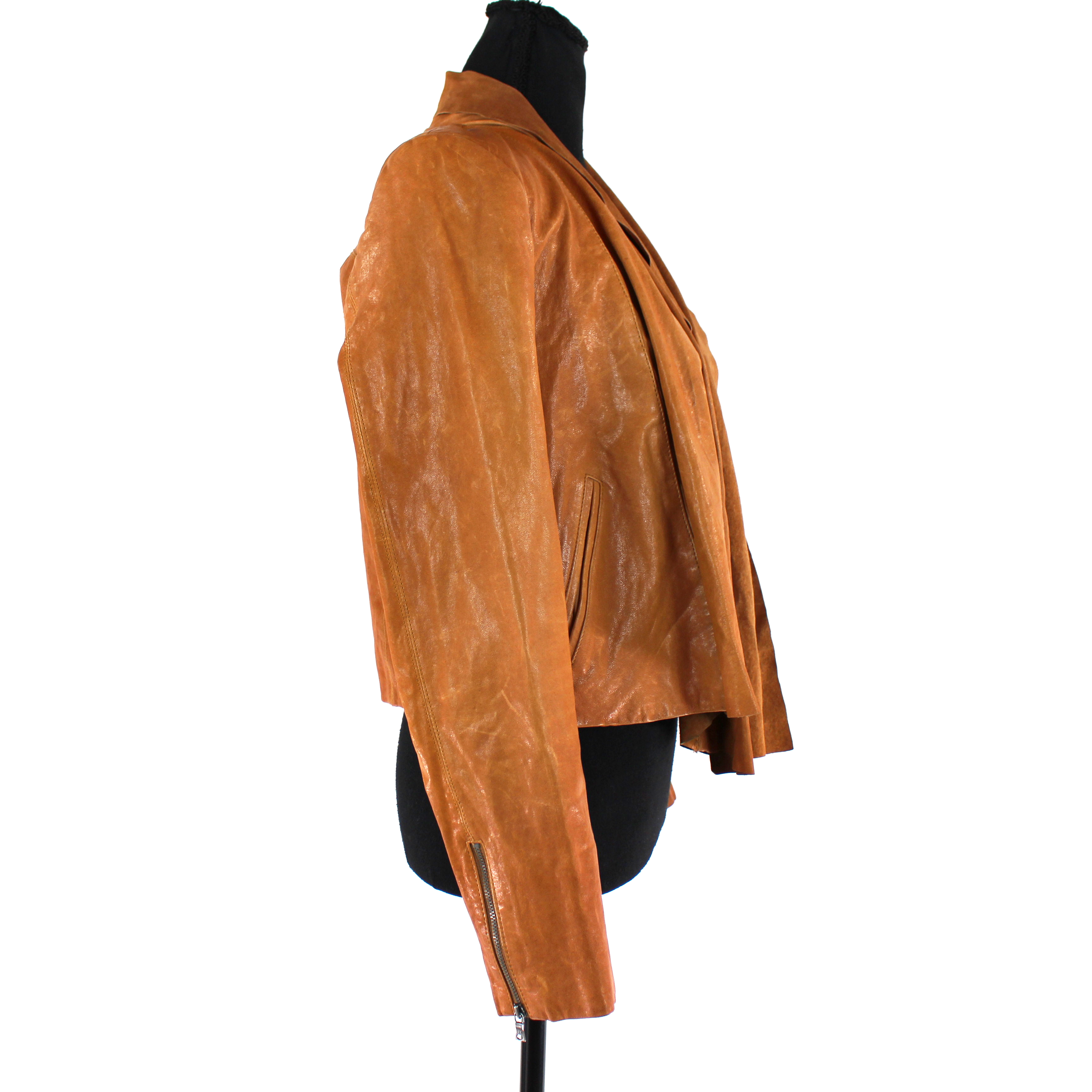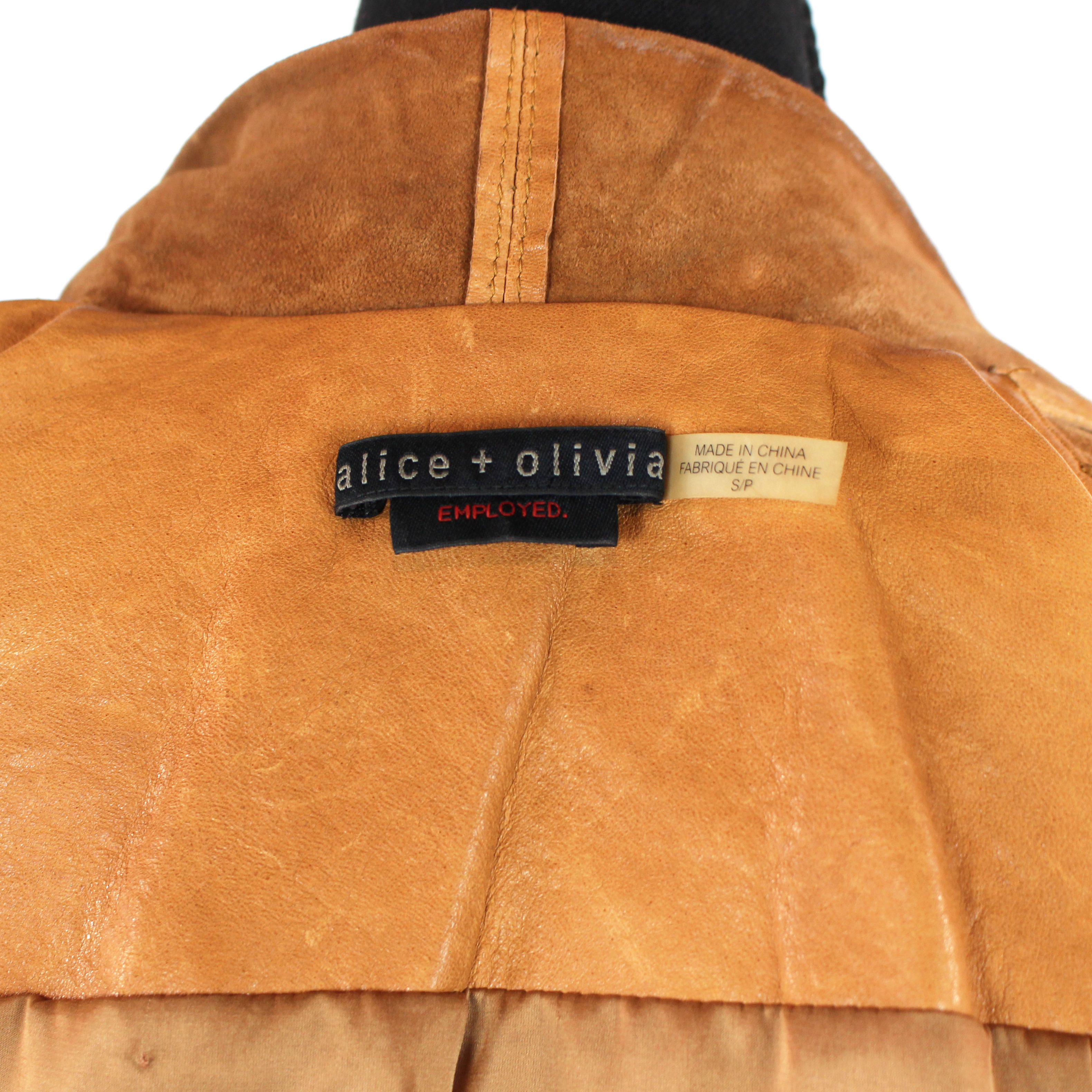 Alice + Olivia Lamb Leather Tan Open Front Cropped Moto Jacket