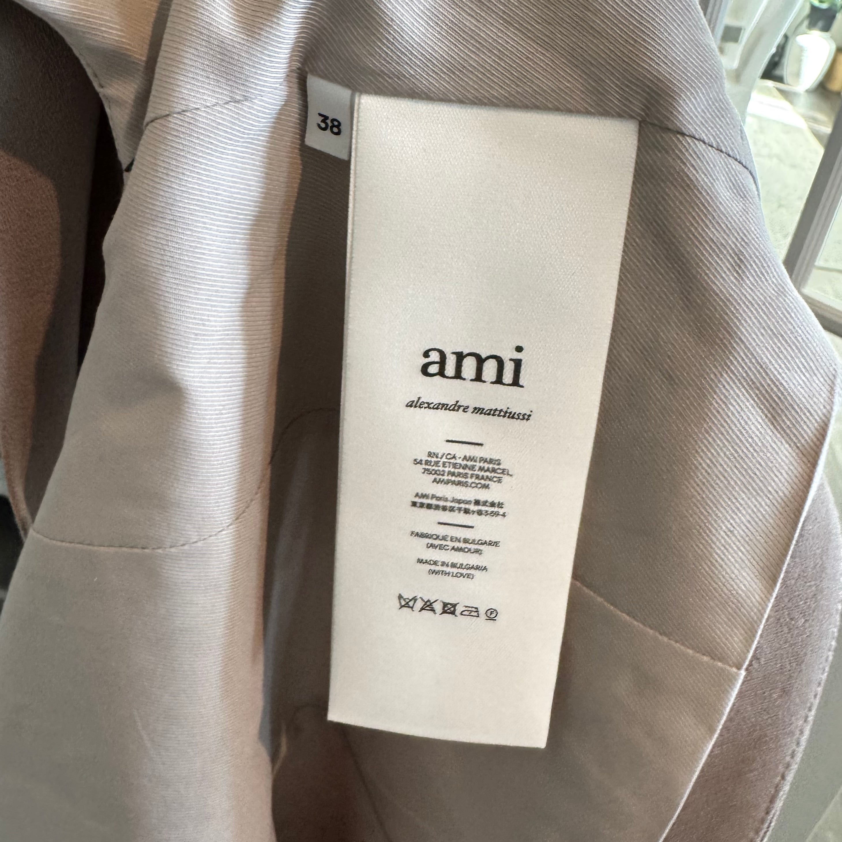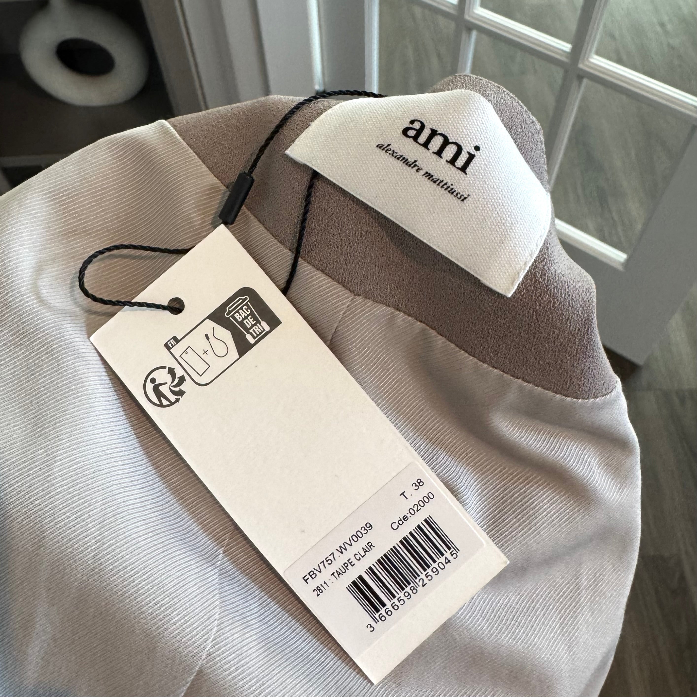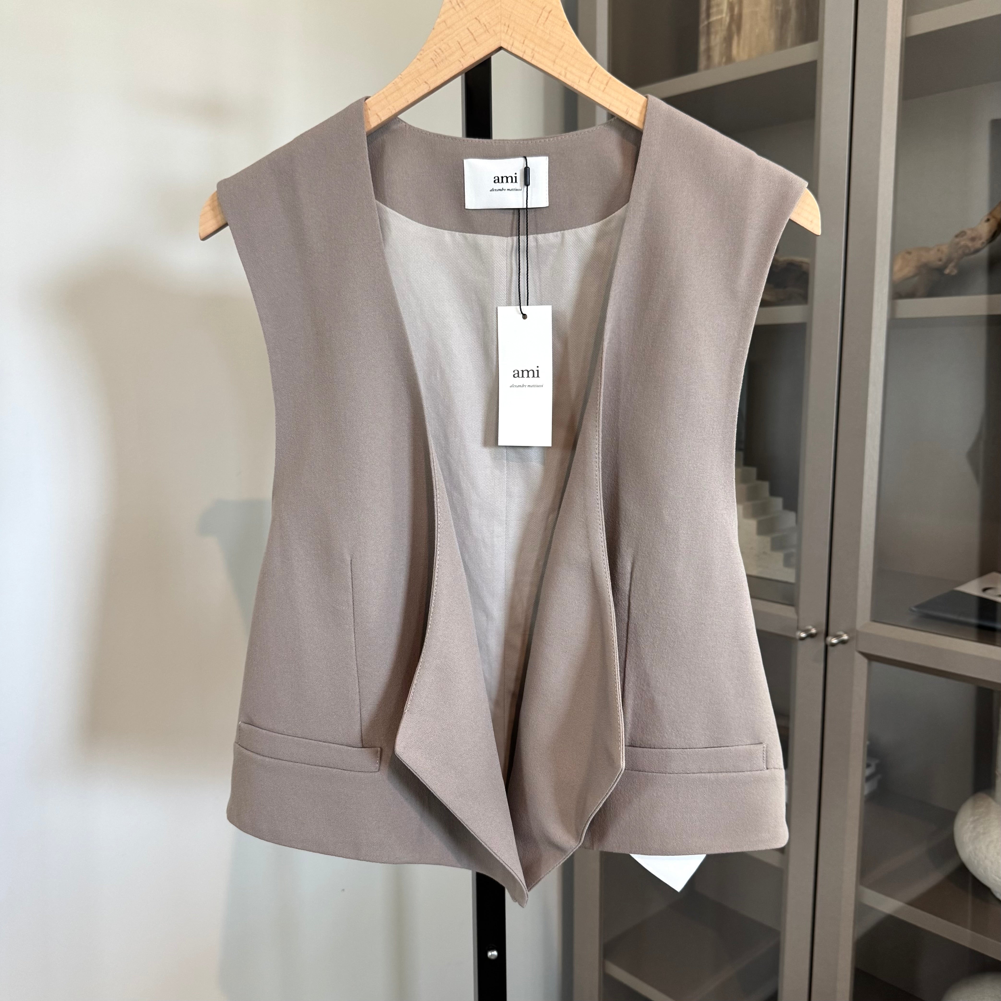 AMI Paris Clair Taupe Brown Virgin Wool Crepe Sleeveless Open Front Vest