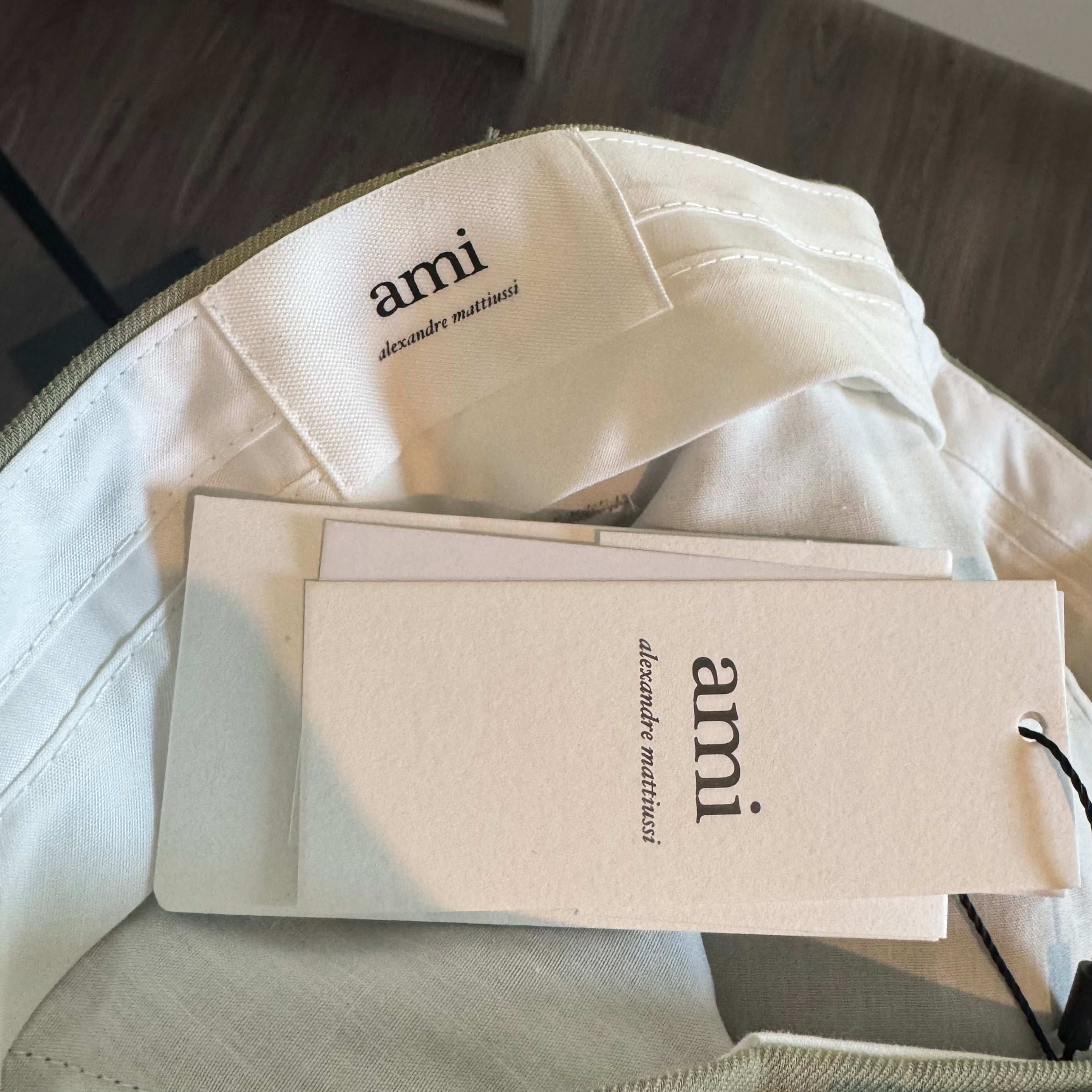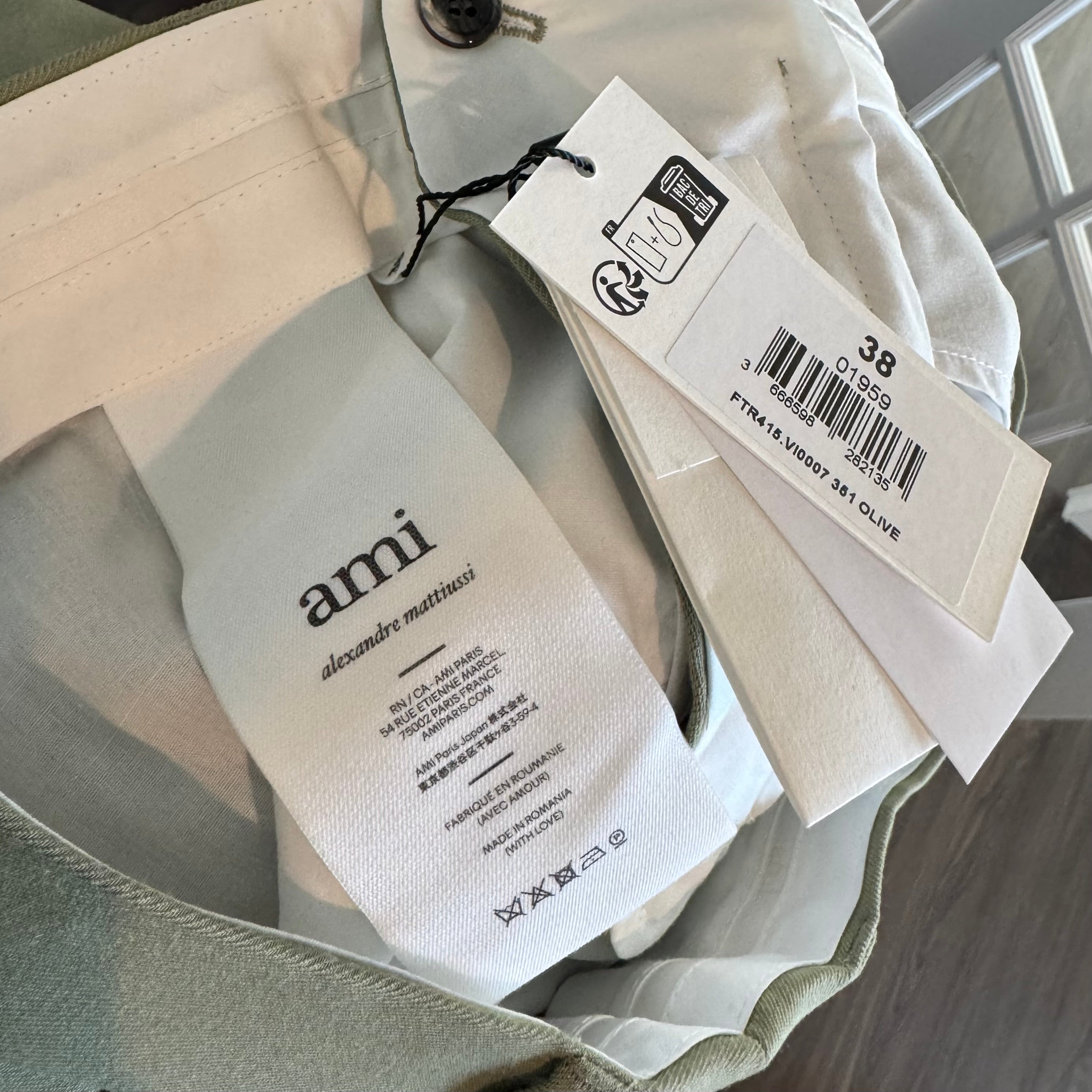 Ami Paris Light Green Wool Blend Flared Leg Trouser Pants