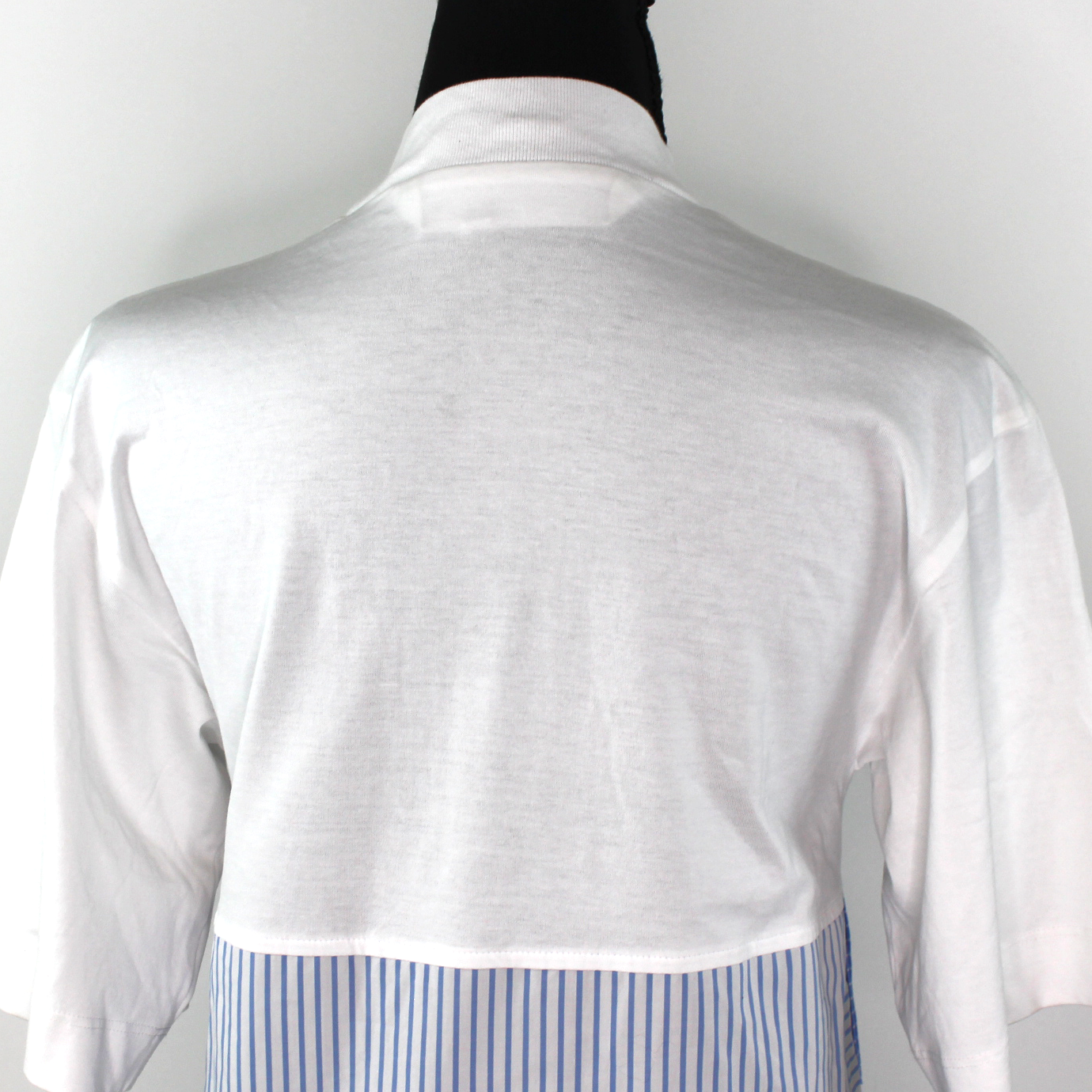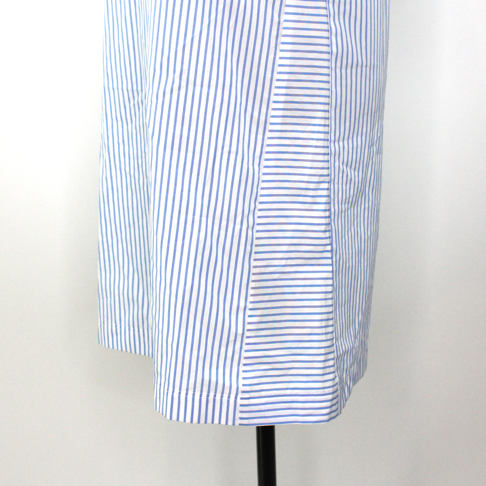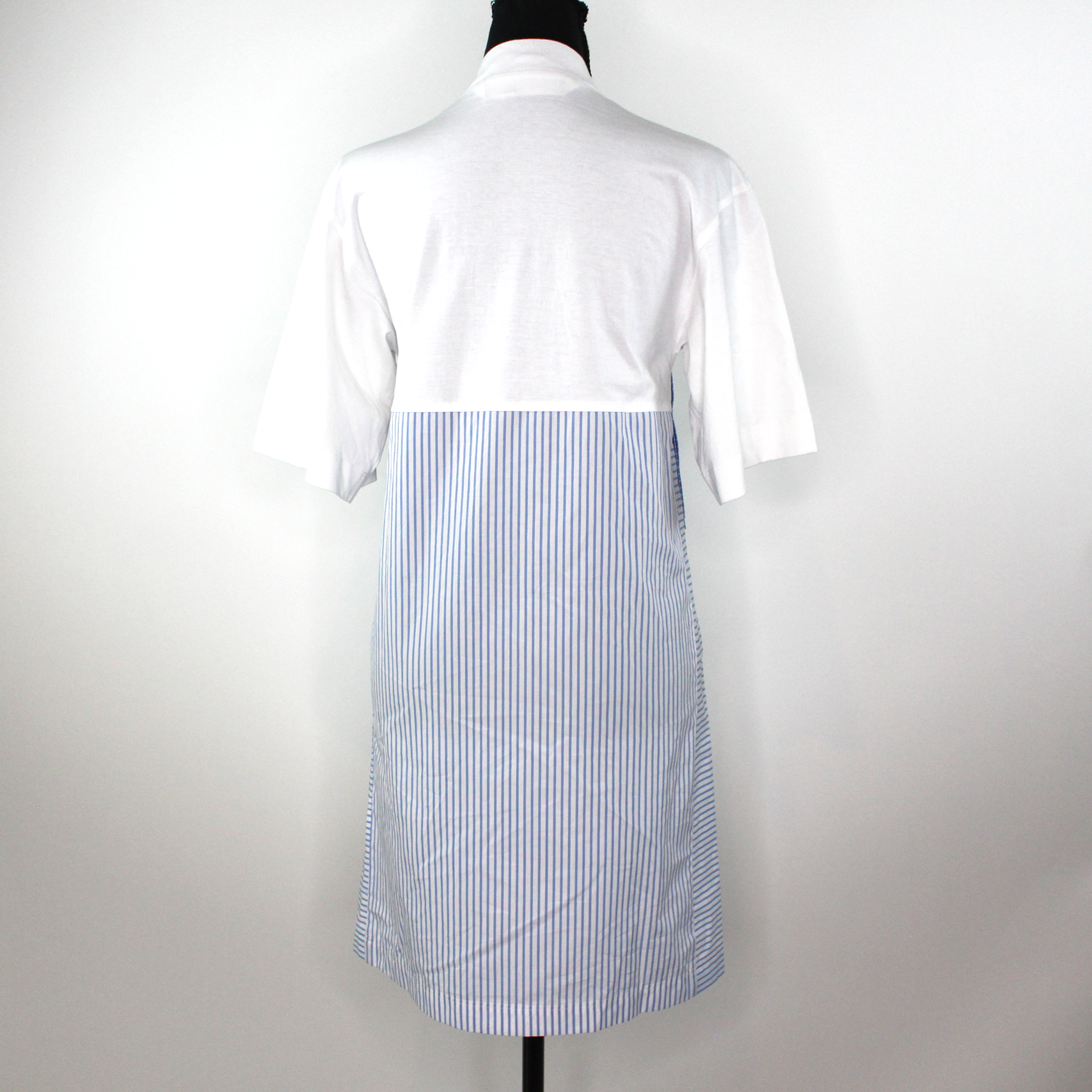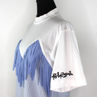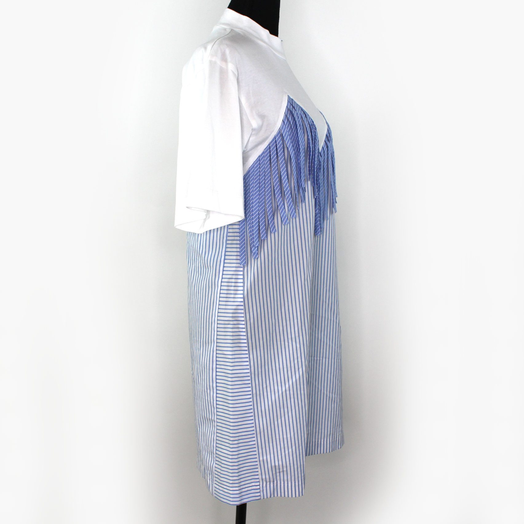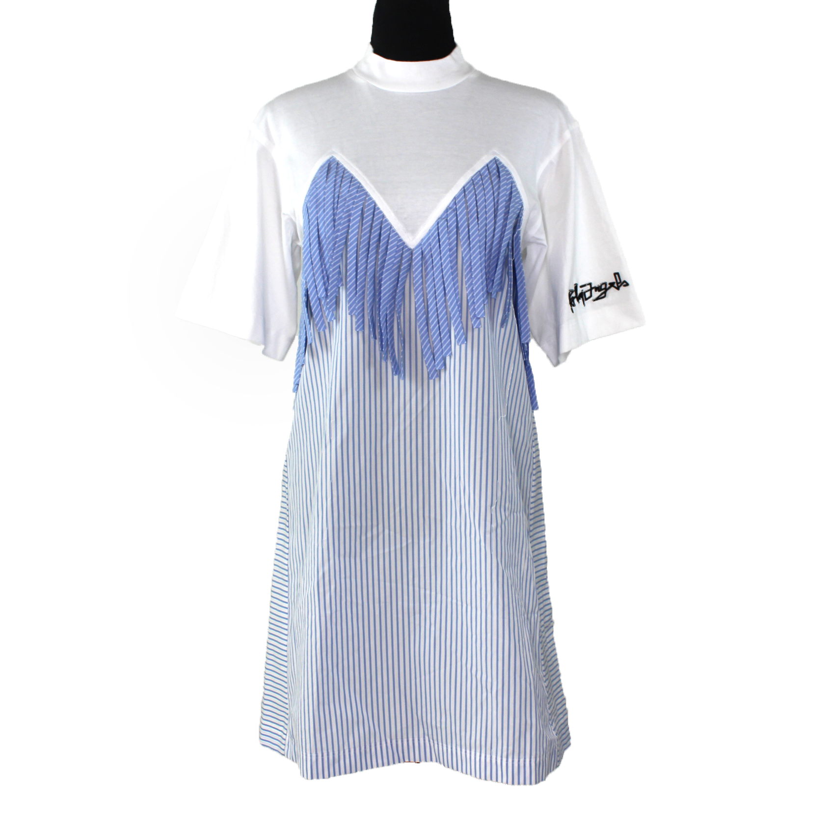 Palm Angels Fringed Trim Short Sleeve White Blue Pinstripe T-Shirt Mini Dress