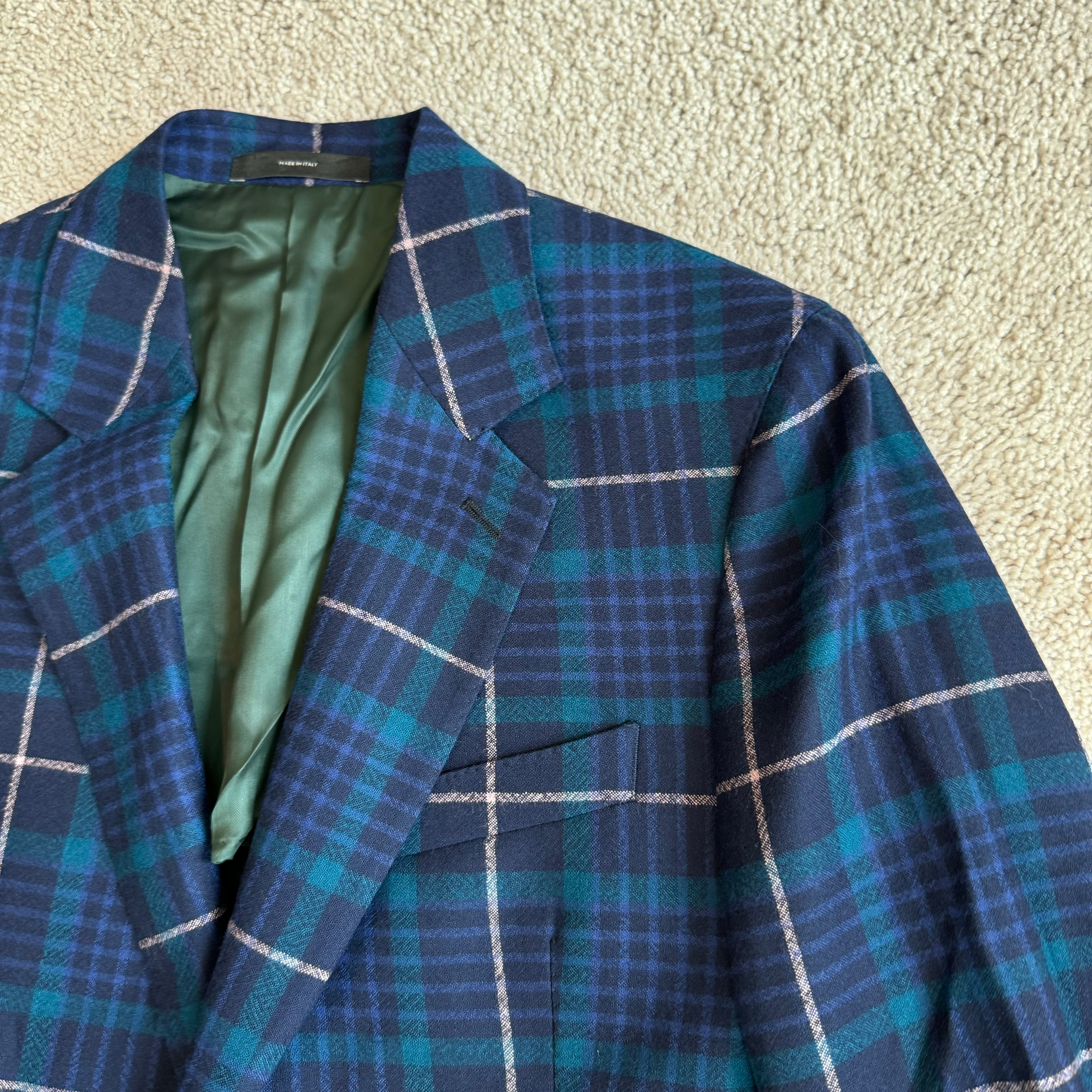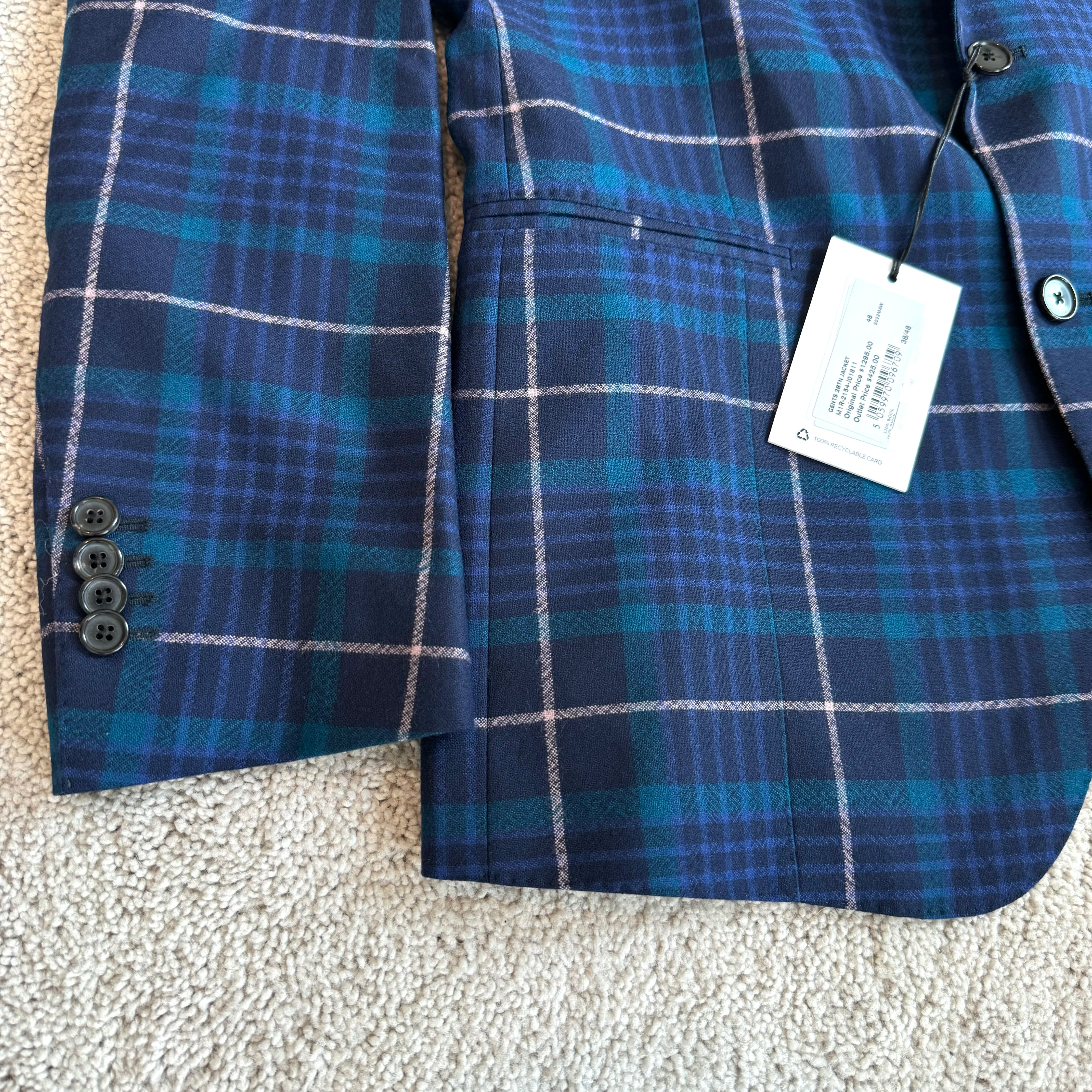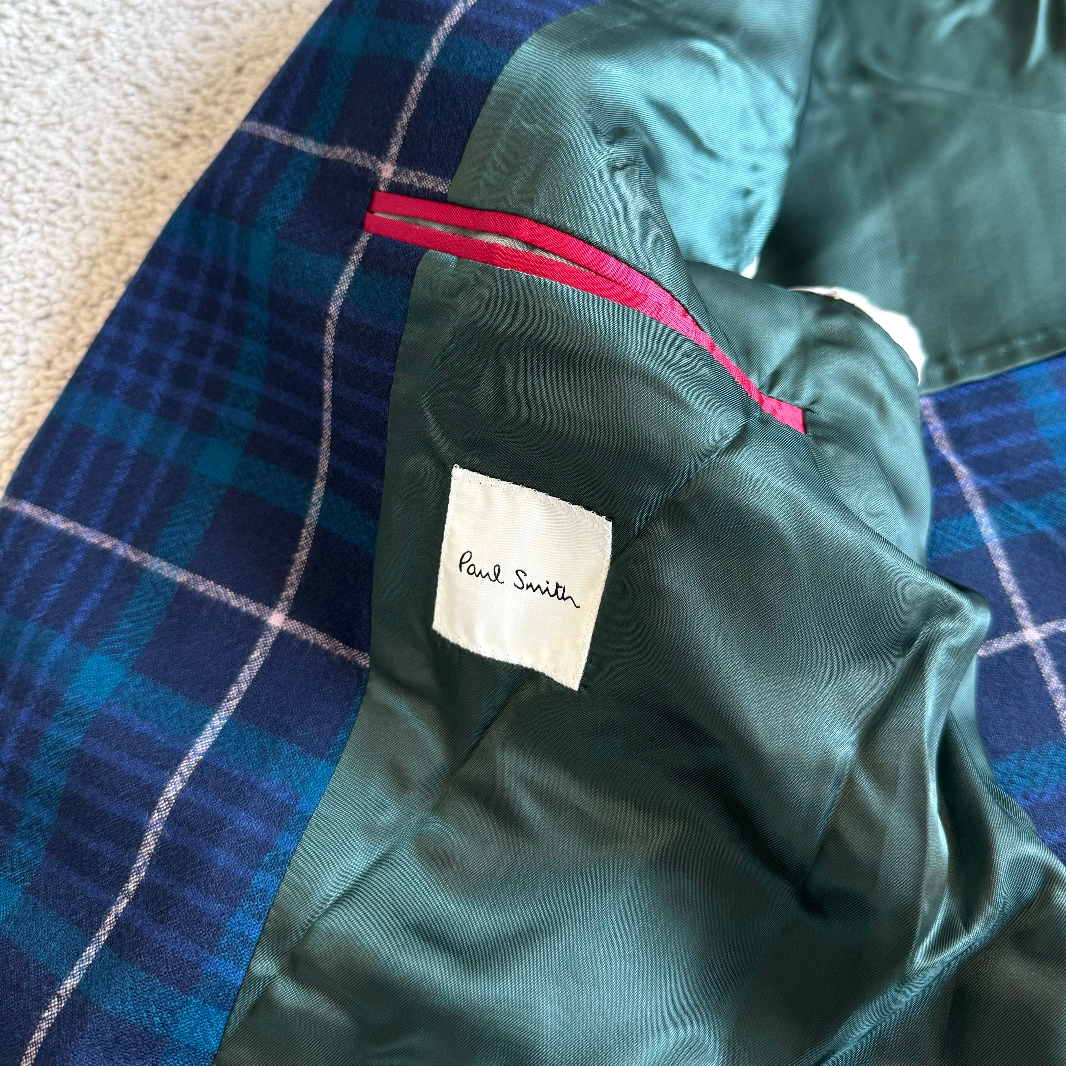 Men's Paul Smith Gents 2 Button Navy Teal Pink Plaid Wool Sport Coat Blazer