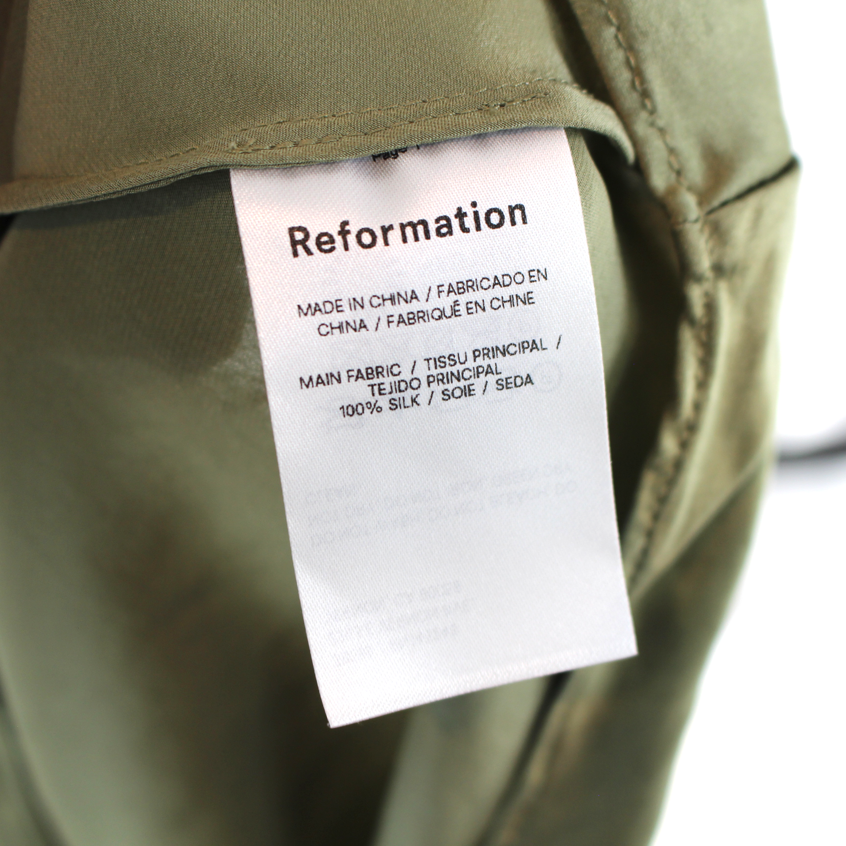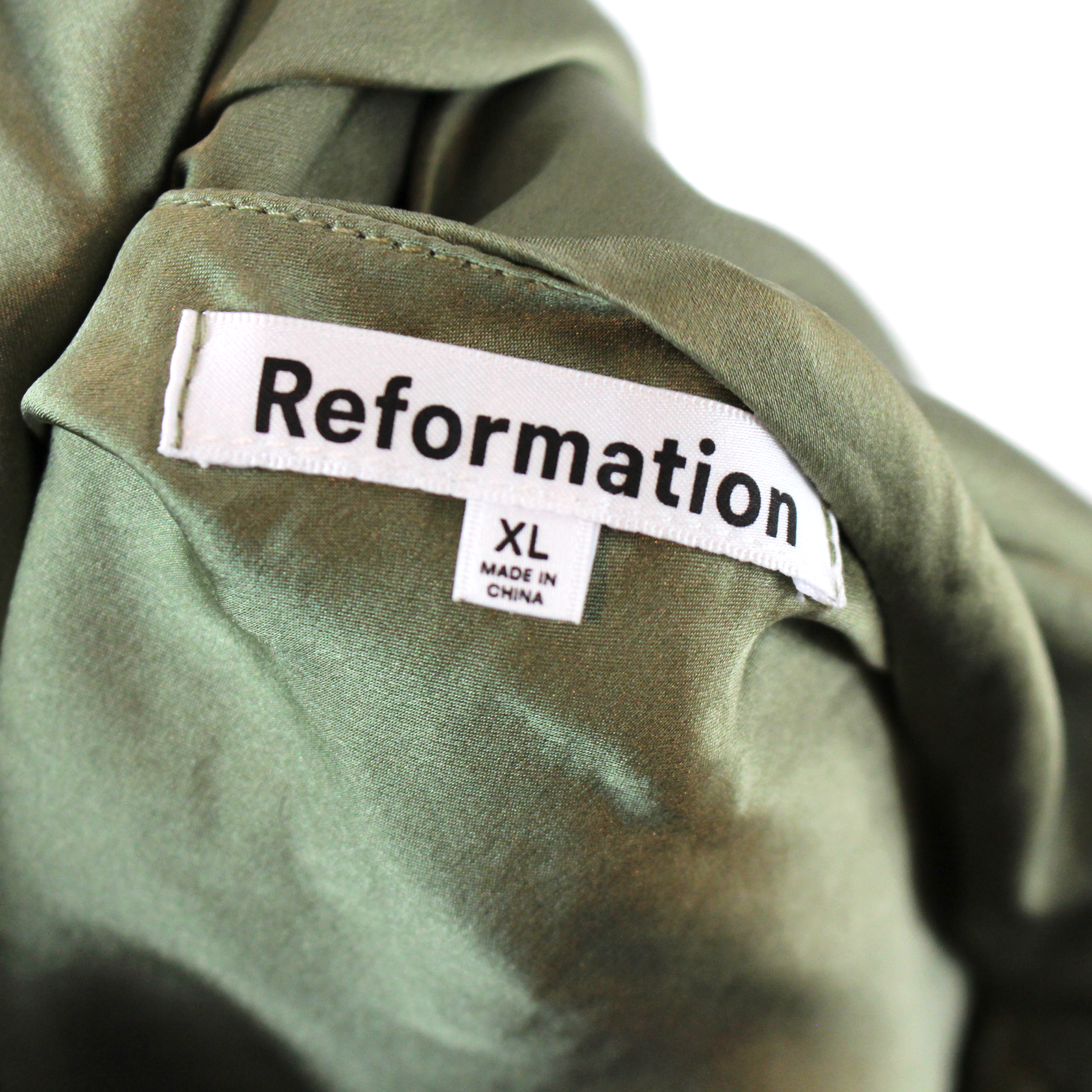 Reformation Aden Silk Artichoke Tie Shoulder Satin Slip Midi Dress