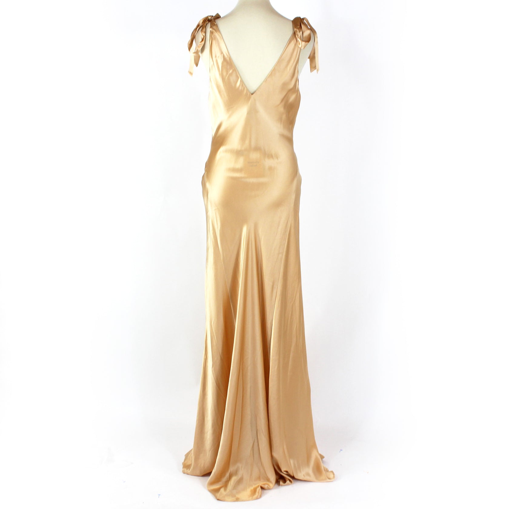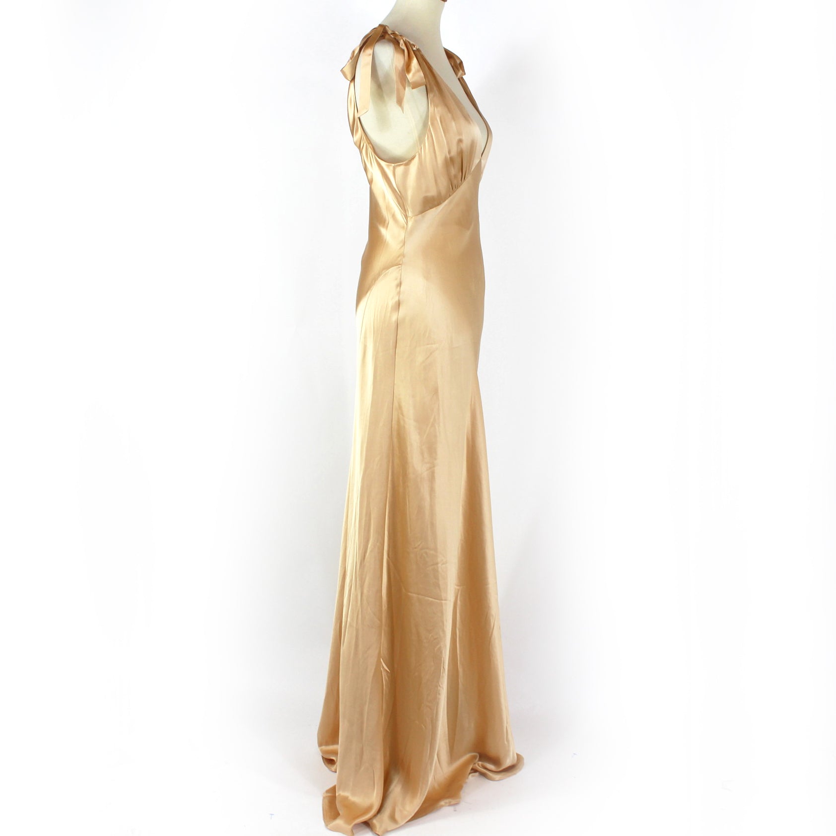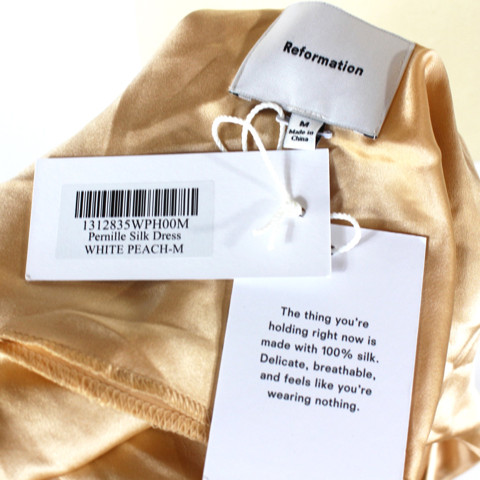 Reformation Pernille Silk White Peach Tie Shoulder V-Neck Maxi Gown Dress