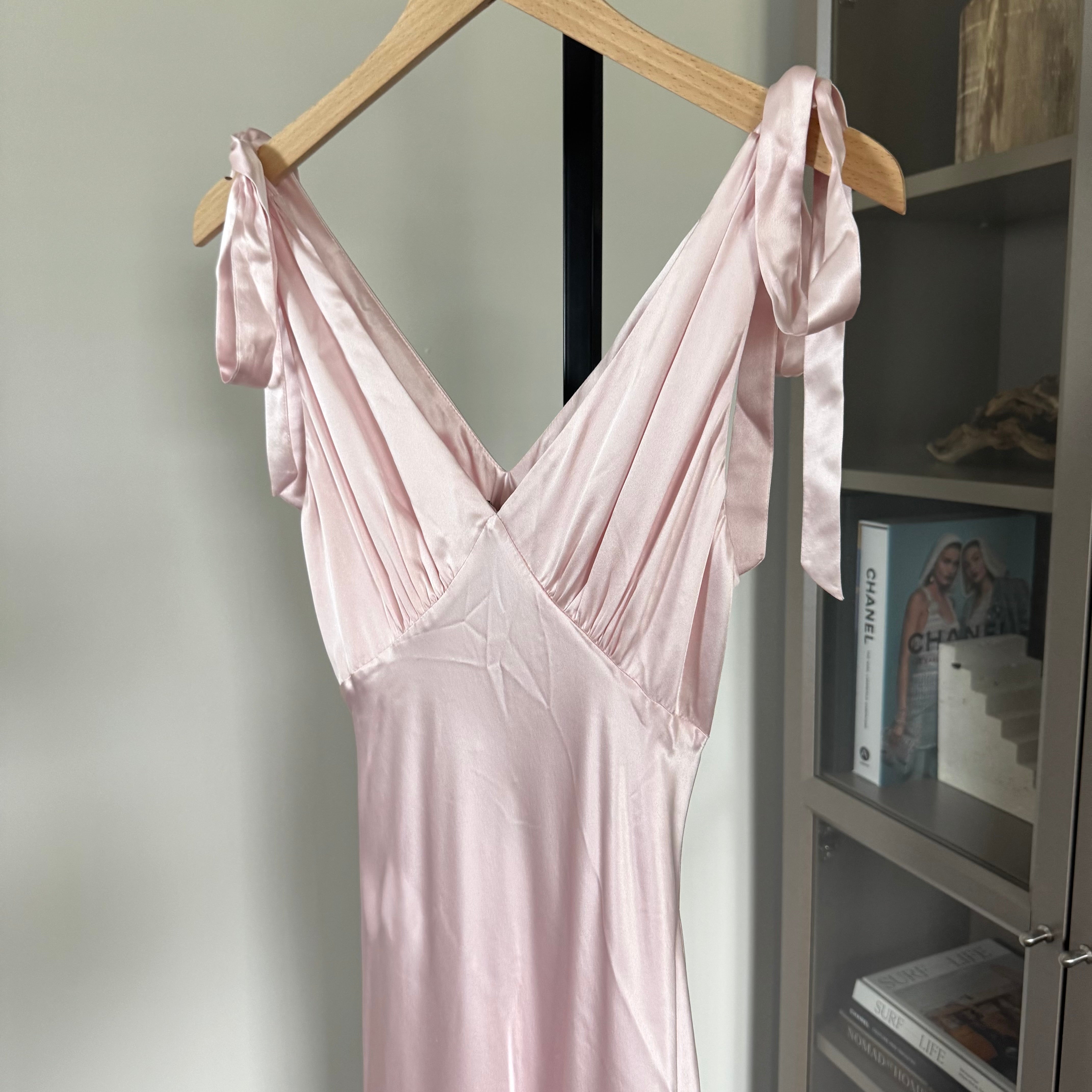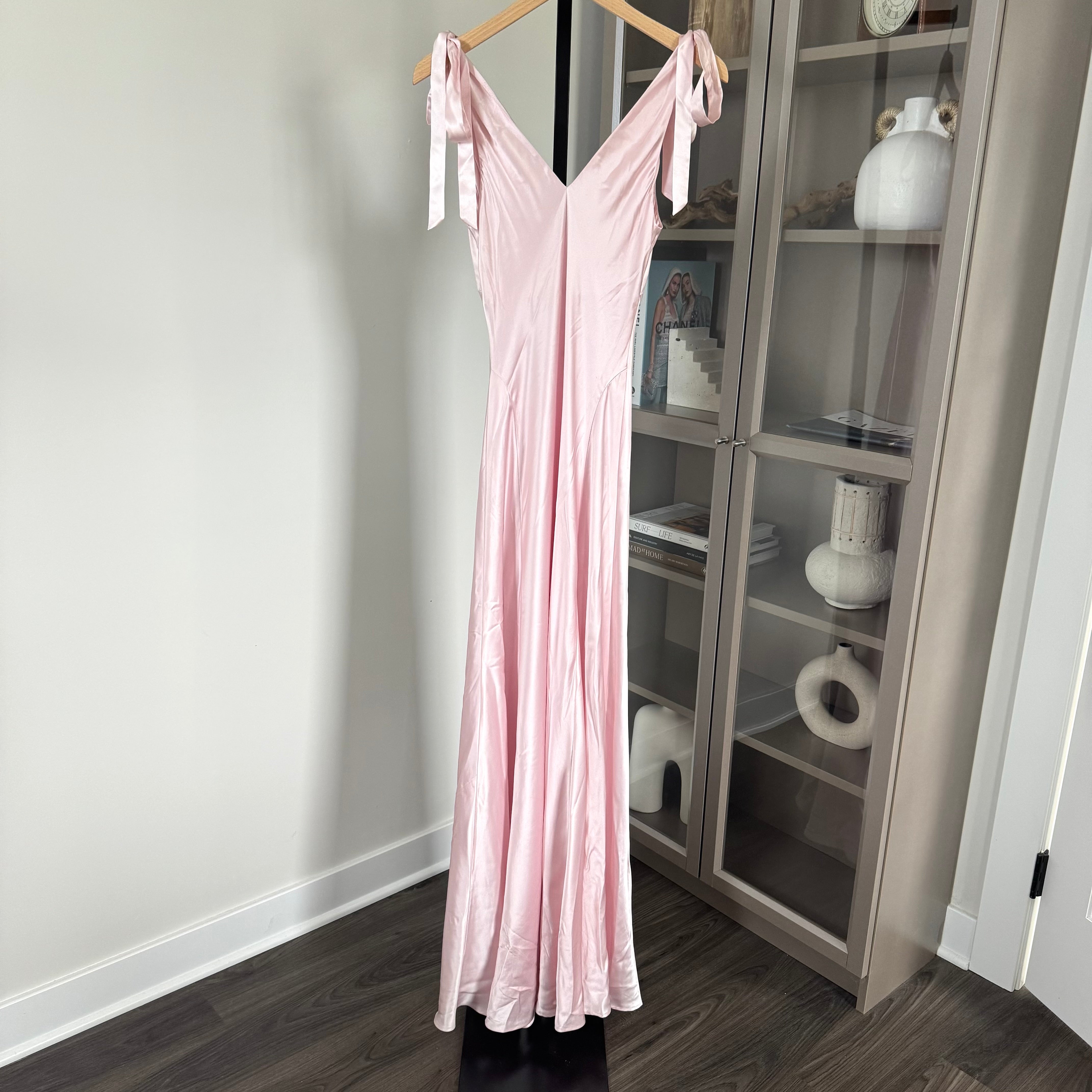 Reformation Pernille Silk Cherry Blossom Pink Tie Straps Maxi Dress