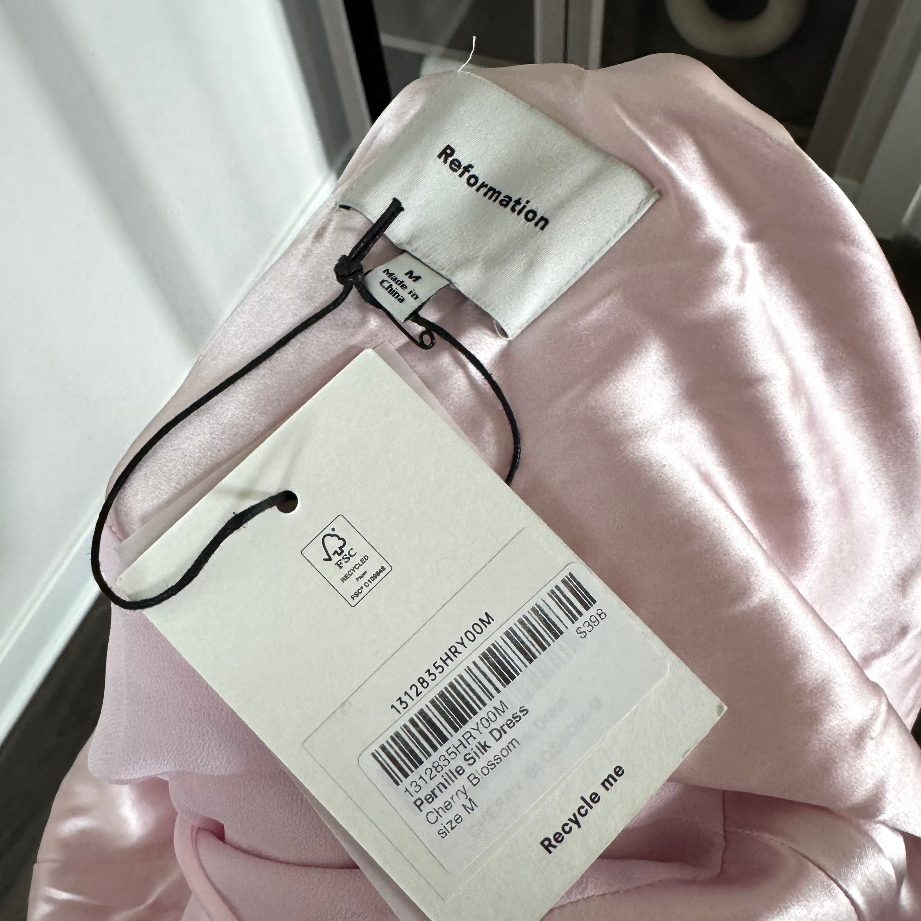 Reformation Pernille Silk Cherry Blossom Pink Tie Shoulder Maxi Dress