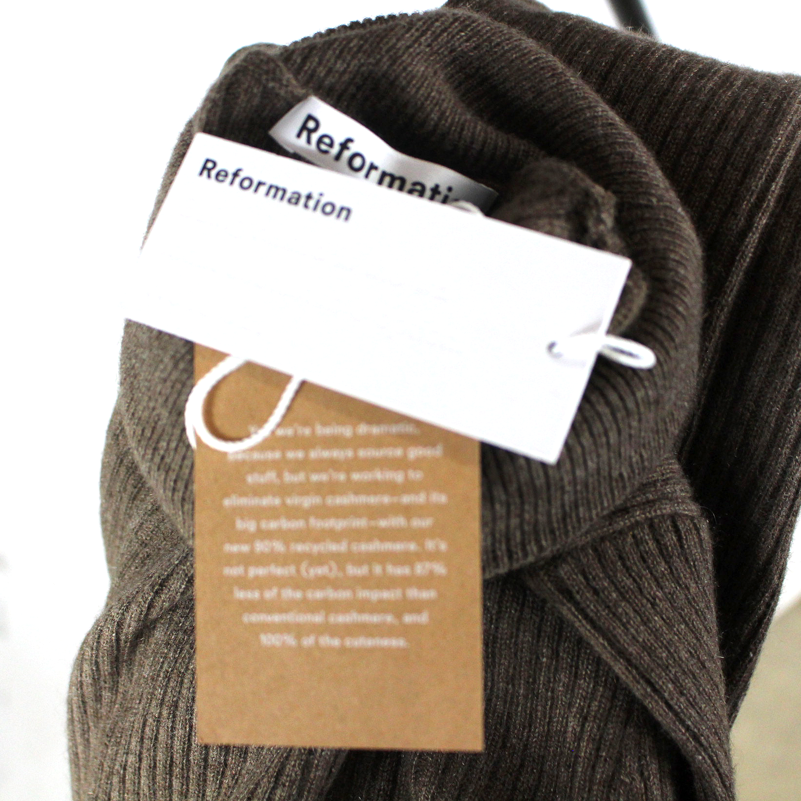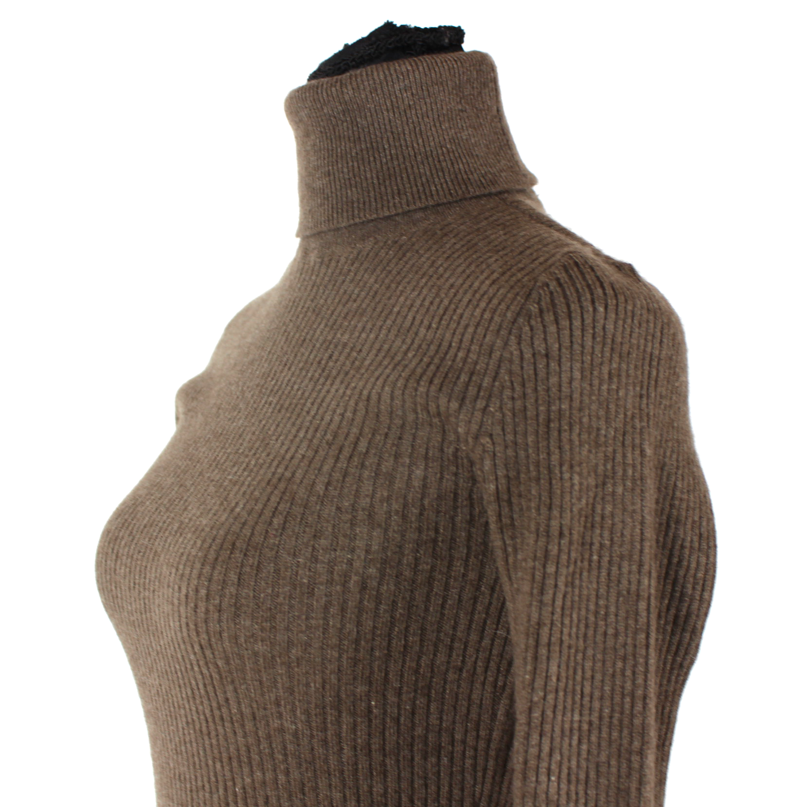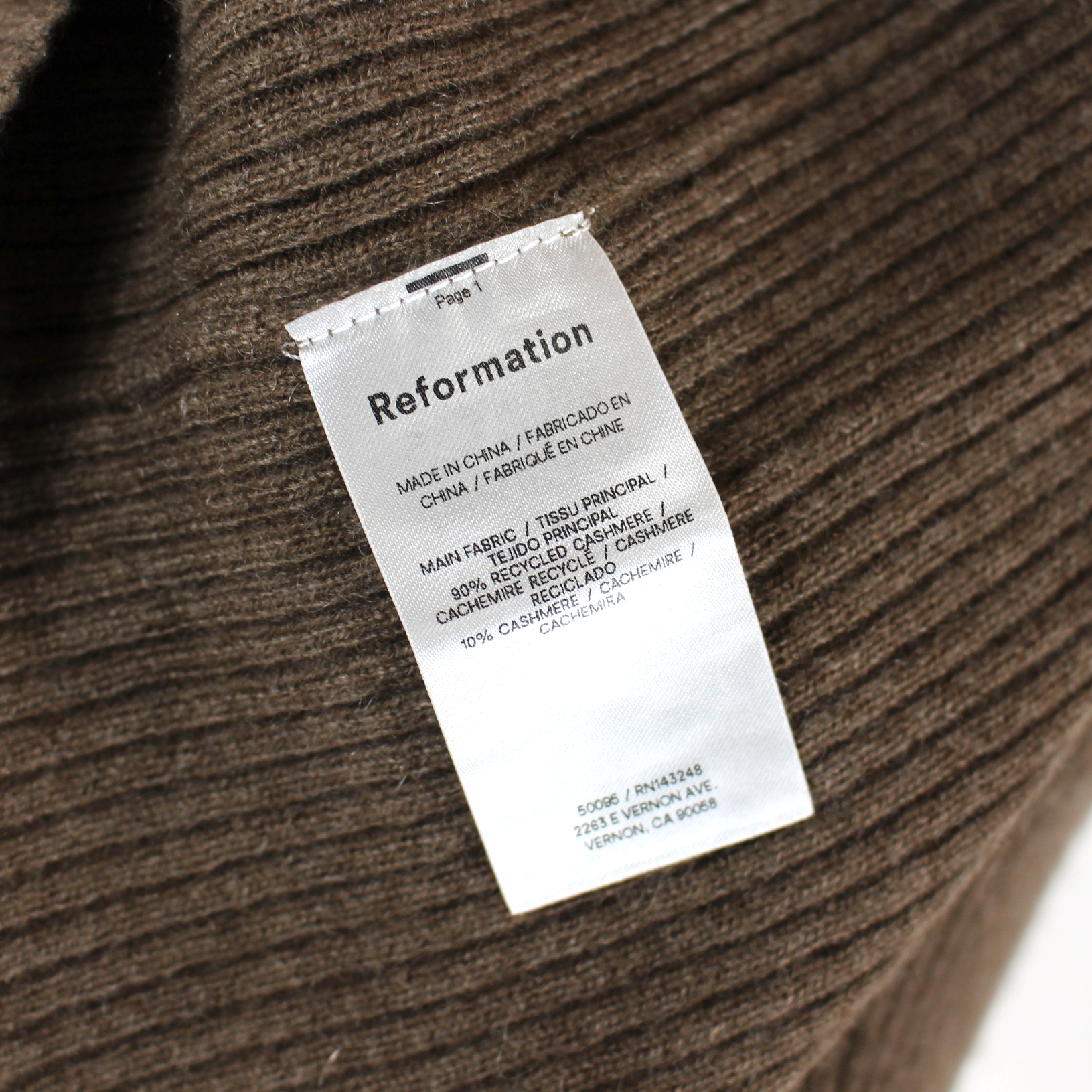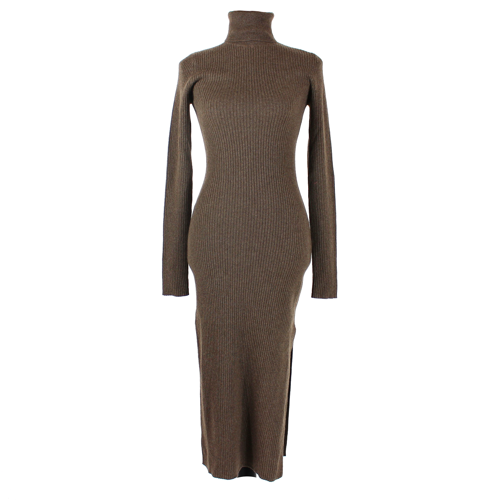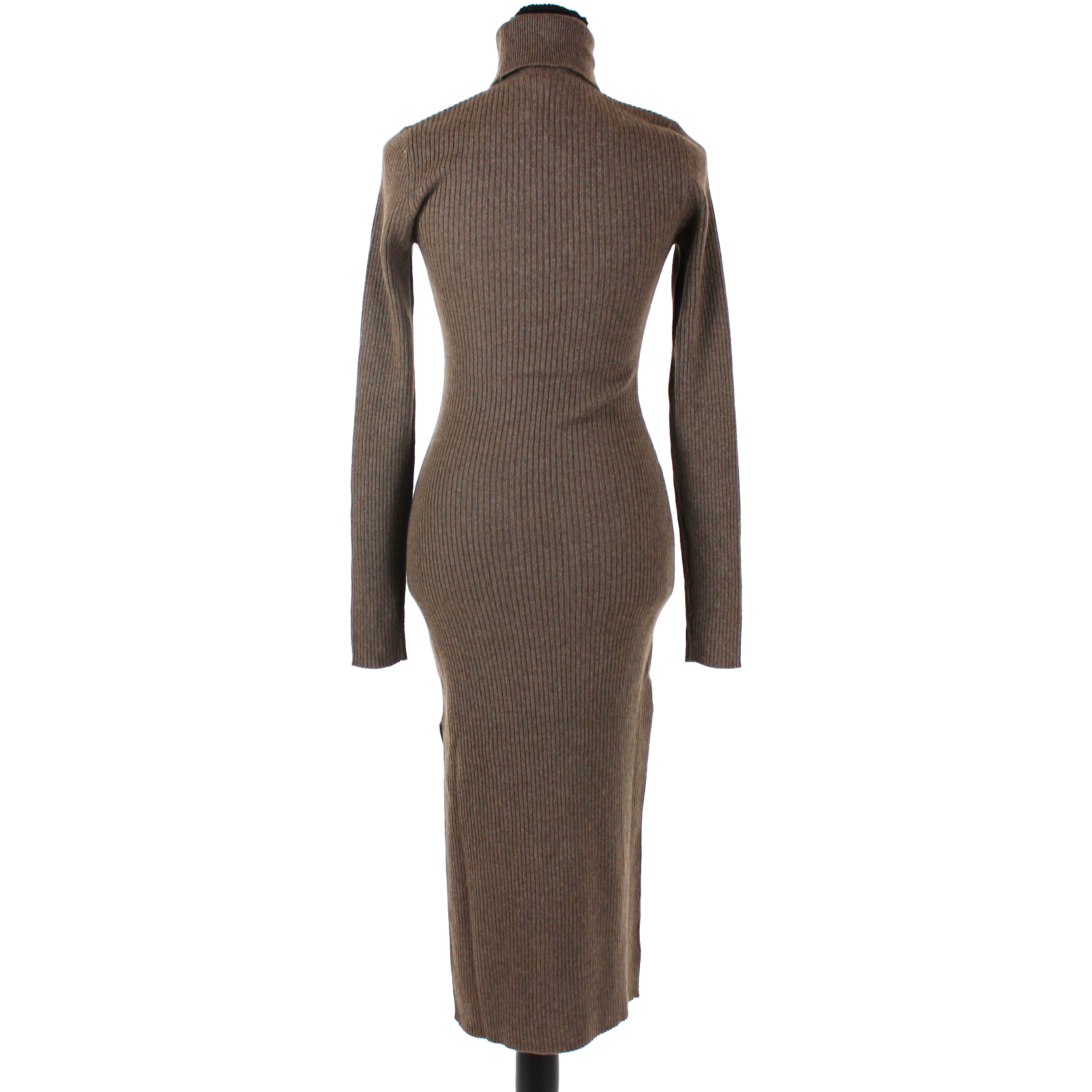 Reformation Robin Cashmere Dachshund Brown Ribbed Turtleneck Midi Dress