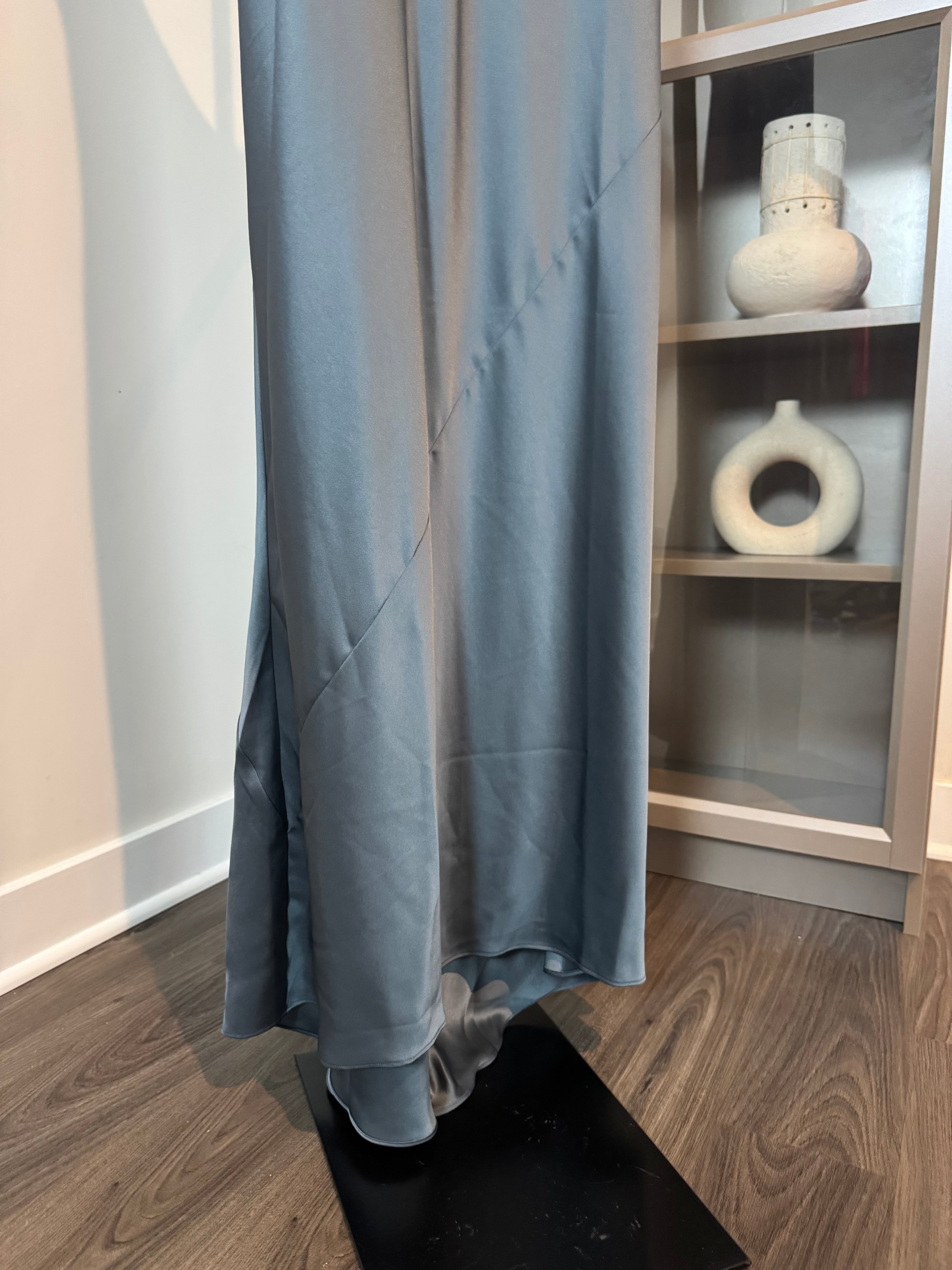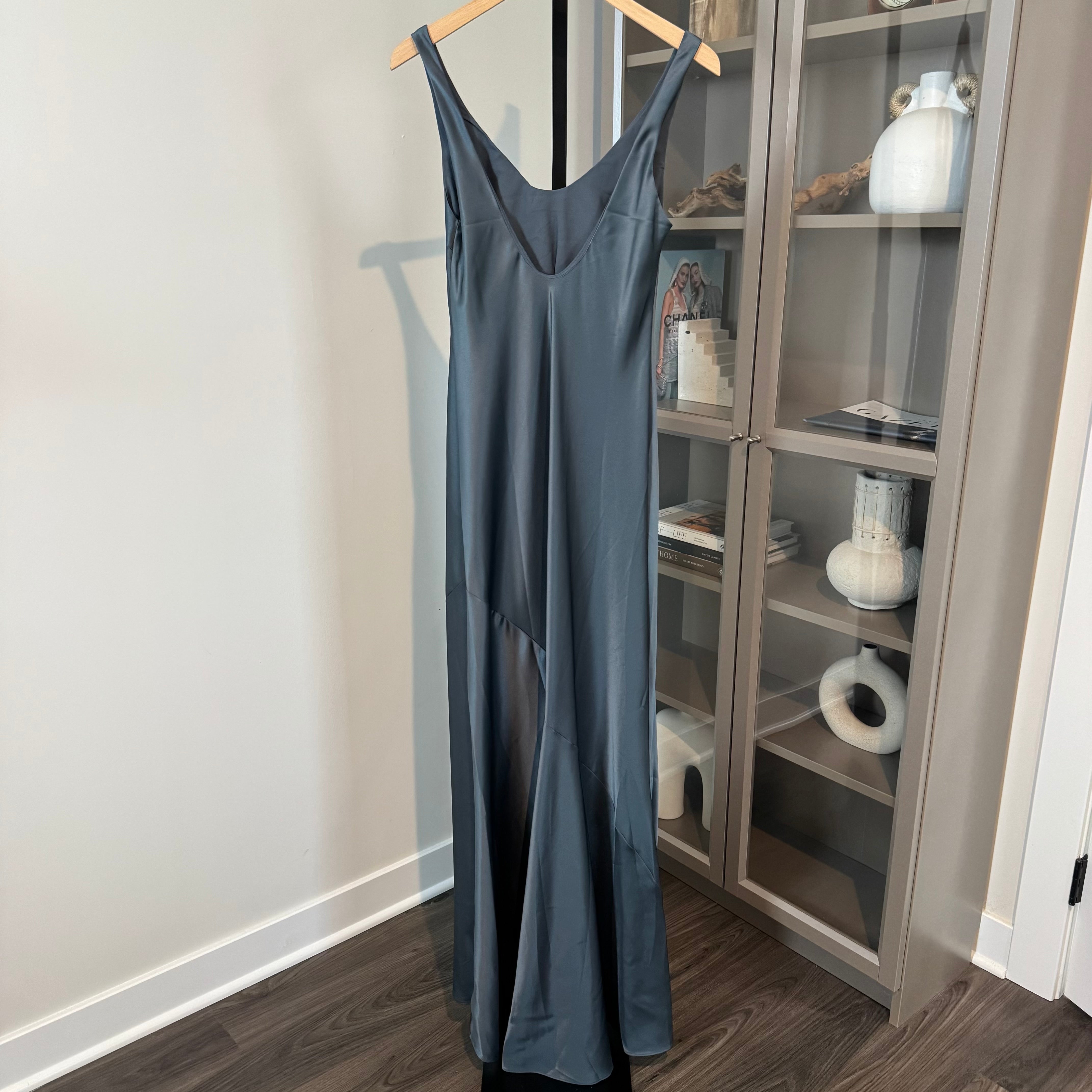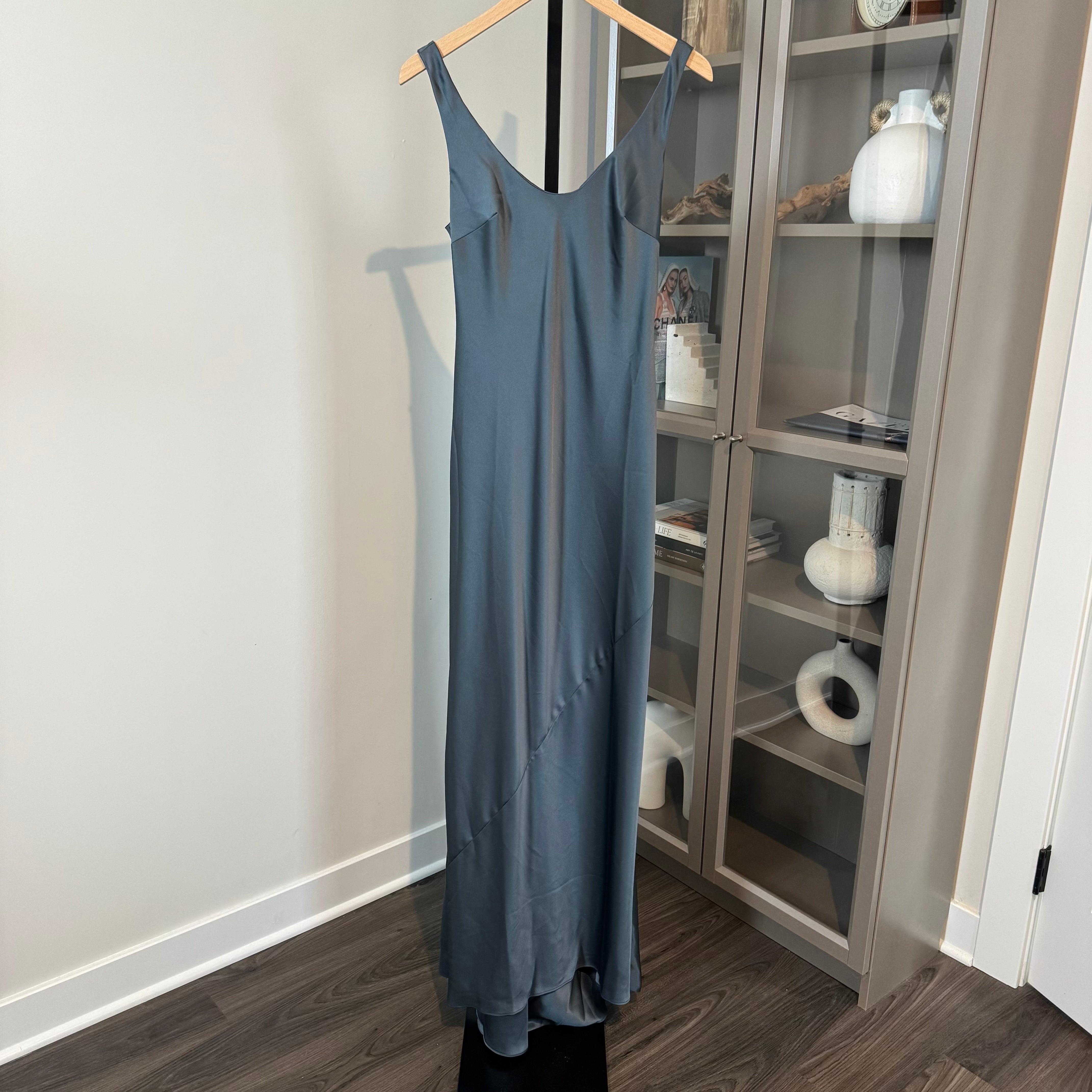 Reformation Sapphira Double Satin Slate Scoop Neck Sleeveless Maxi Dress