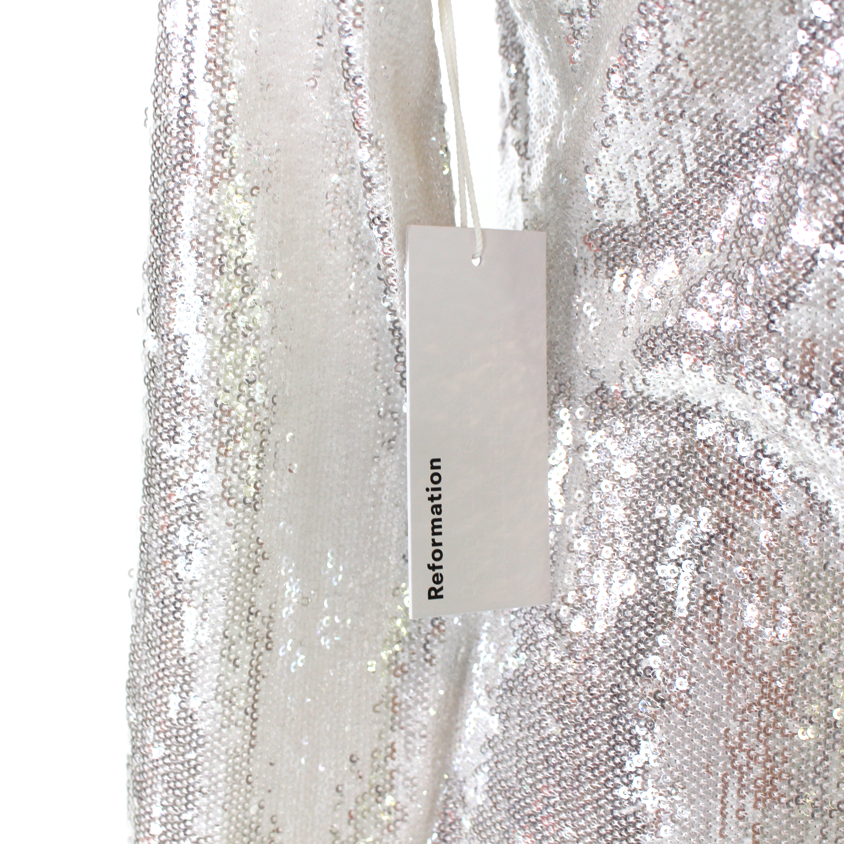 Reformation Talicia Silver Sparkle Sequin Long Sleeve Maxi Dress