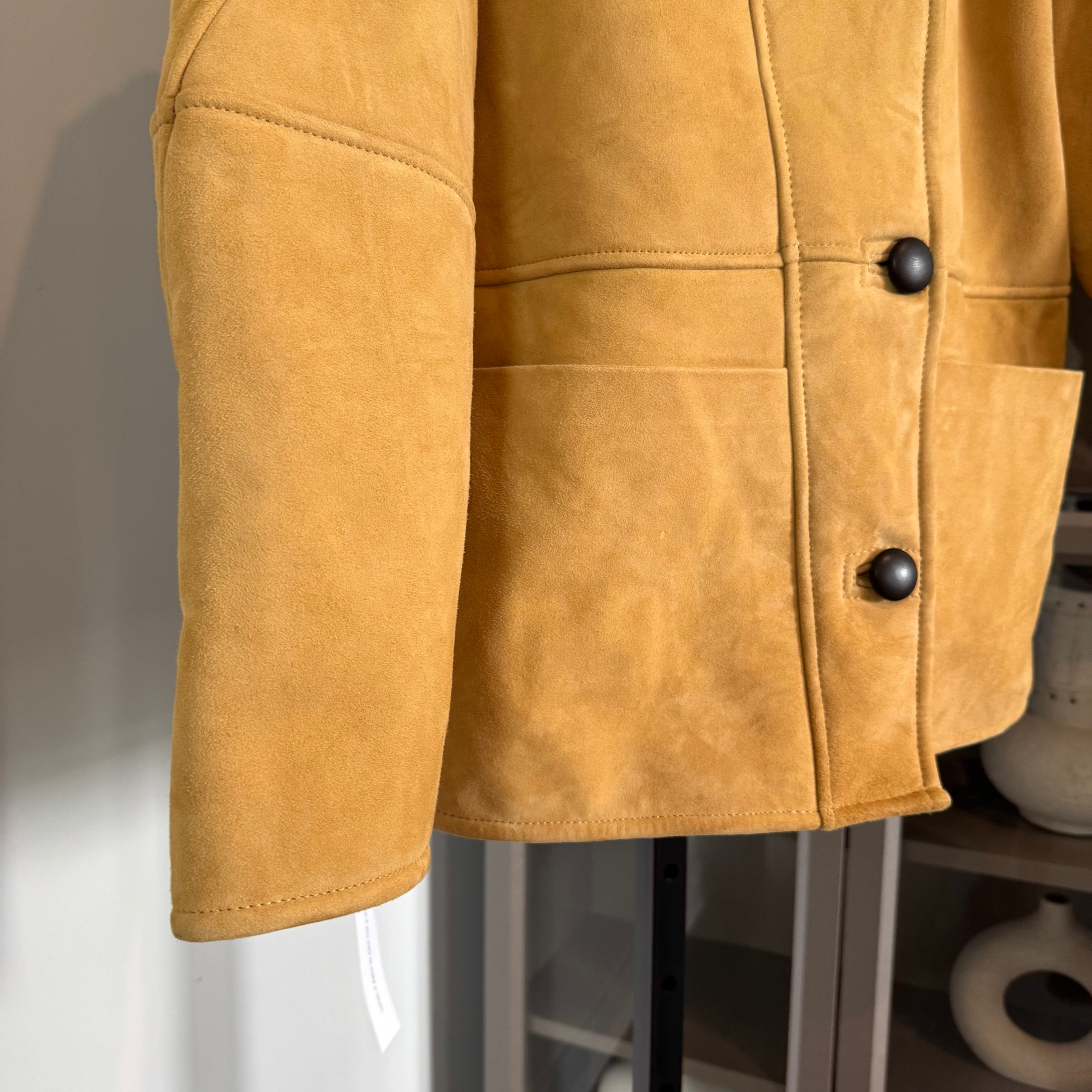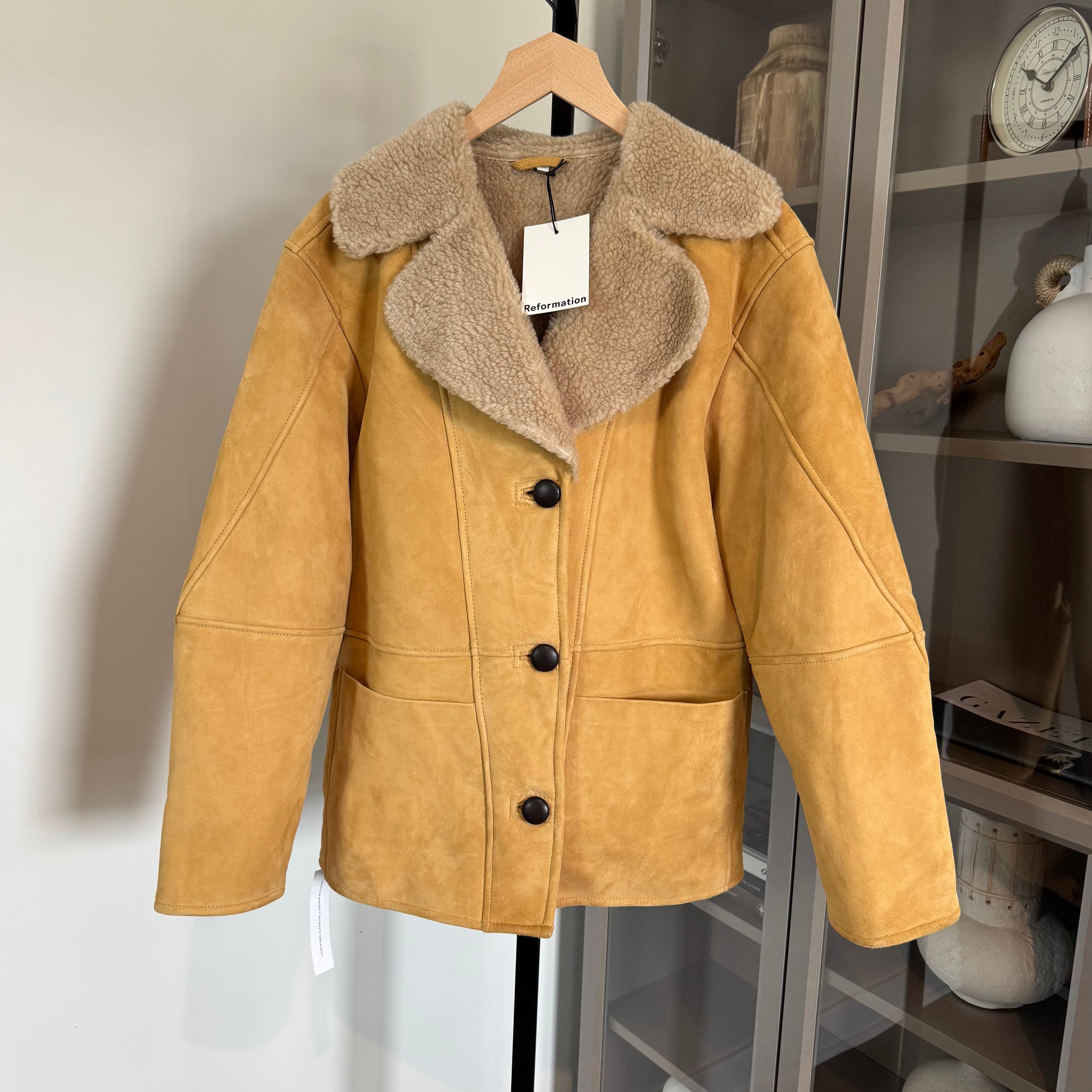 Reformation Veda Luca Suede Shearling Collar Parmesan Suede Coat