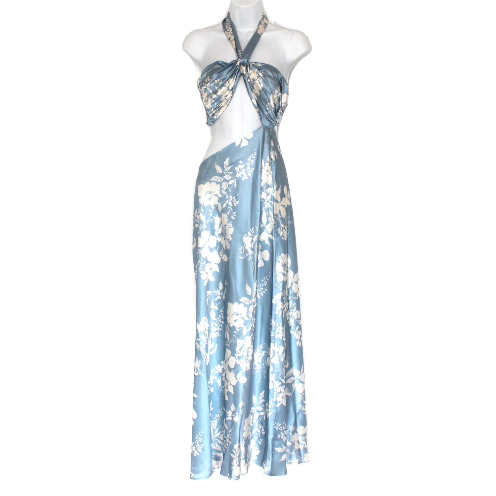 Reformation Vivi Silk Aliso Blue Floral Bandeau Halter Maxi Dress