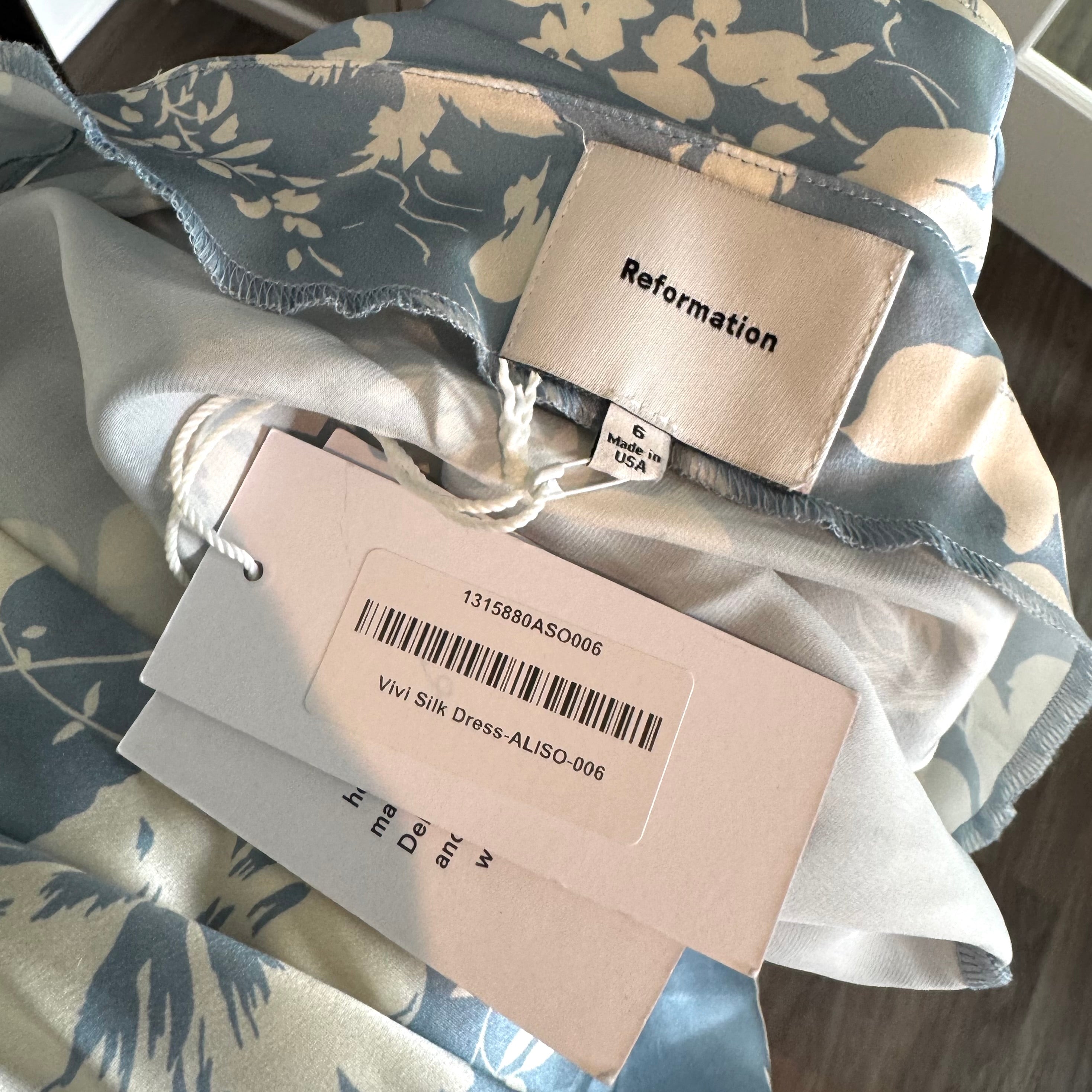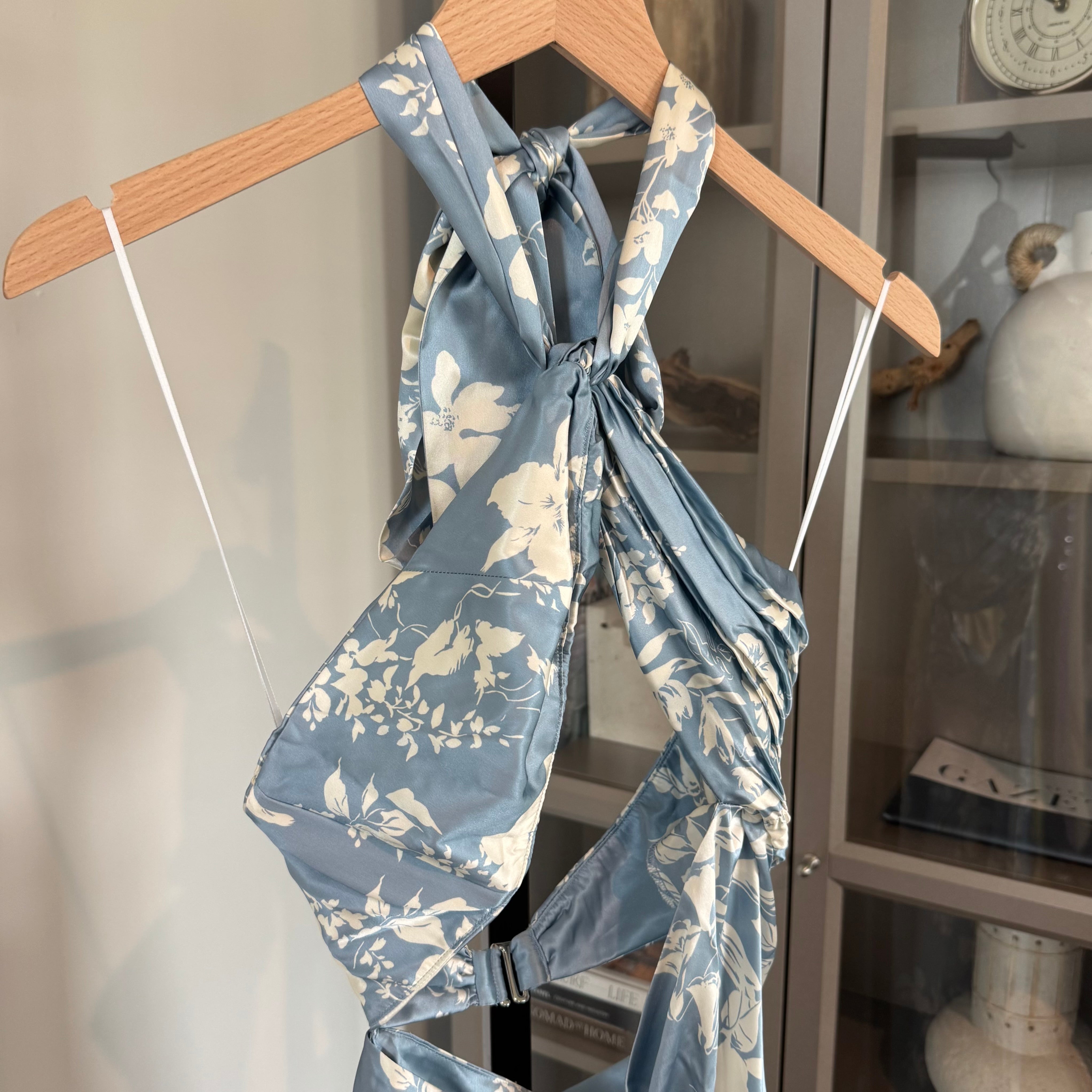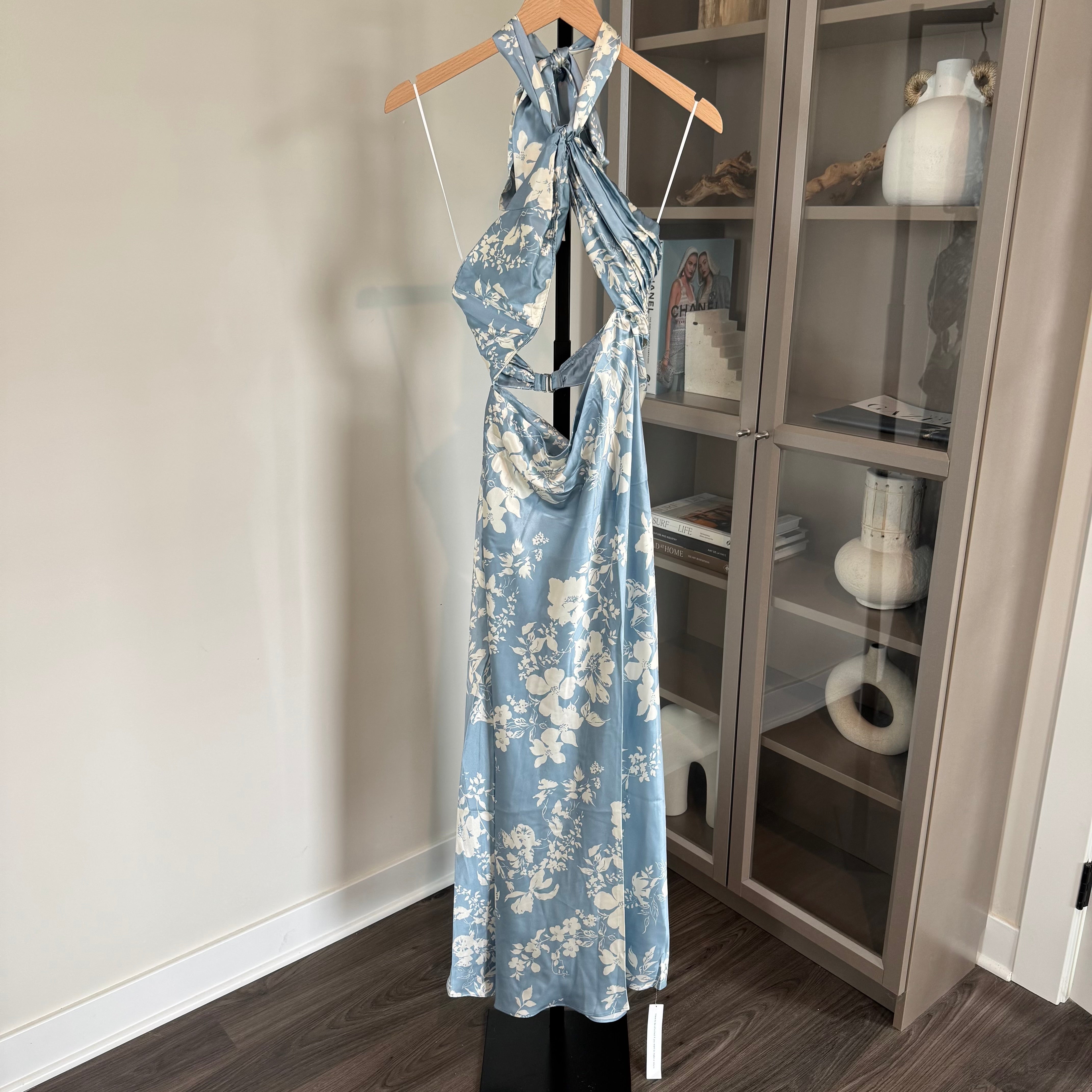 Reformation Vivi Silk Aliso Blue Floral Bandeau Halter Maxi Dress