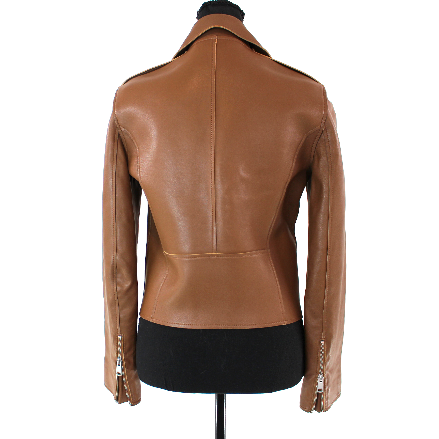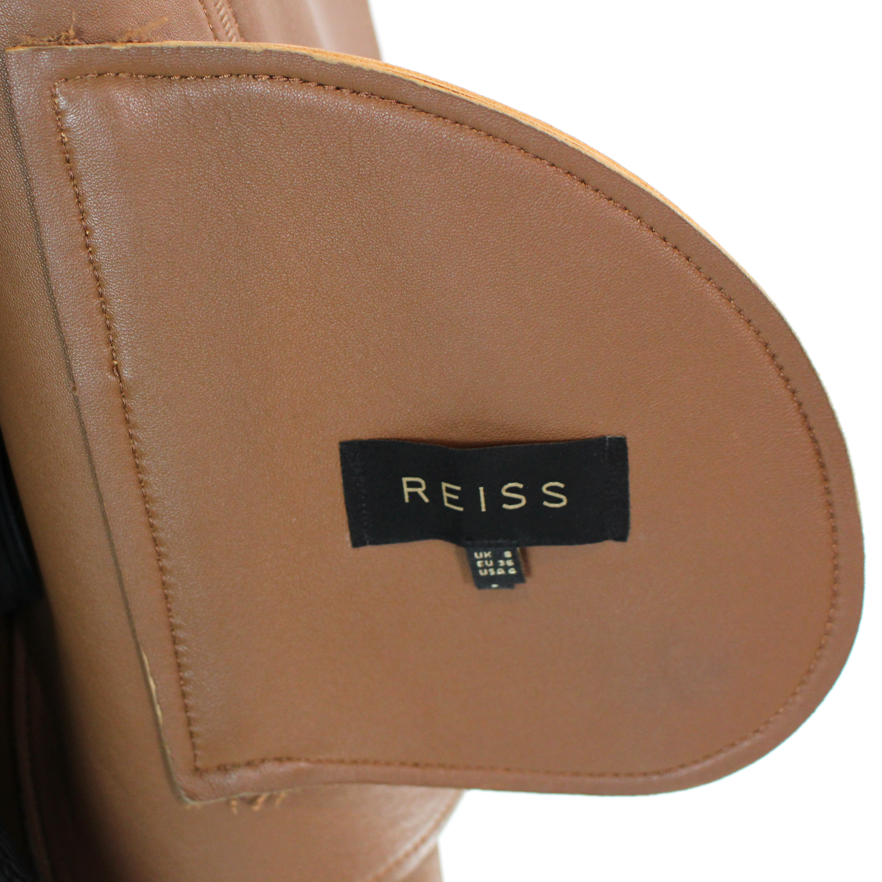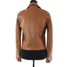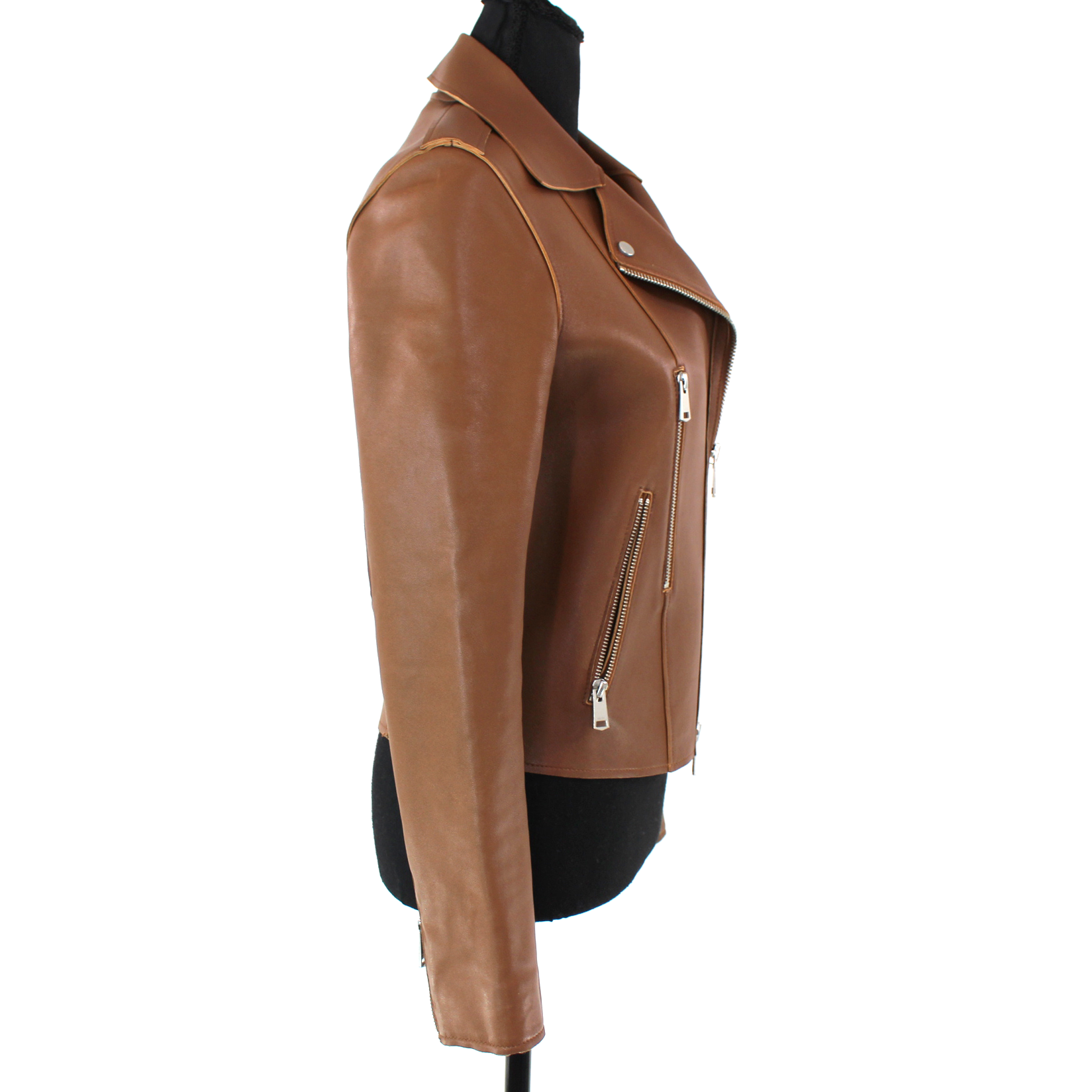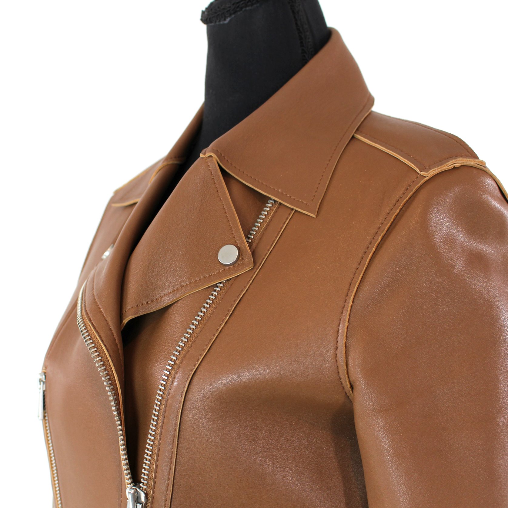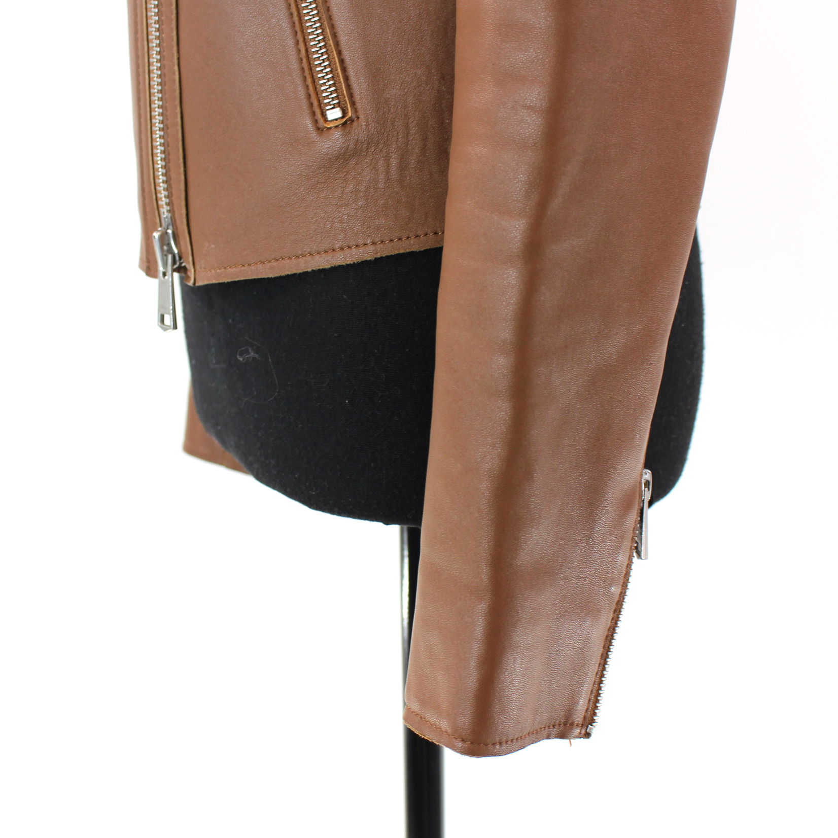 Reiss Camilla Carmel Brown Raw Lamb Leather Luxury Moto Jacket