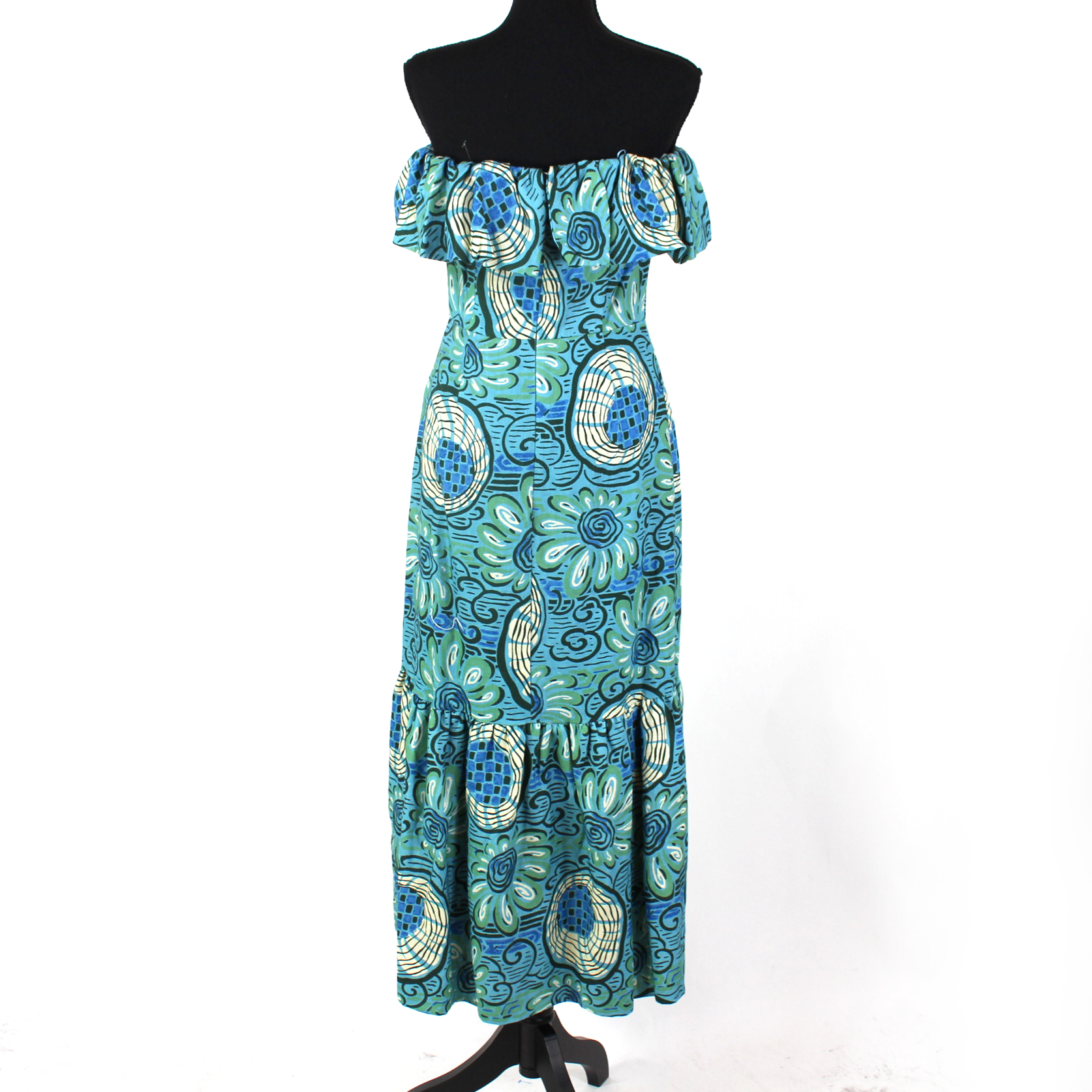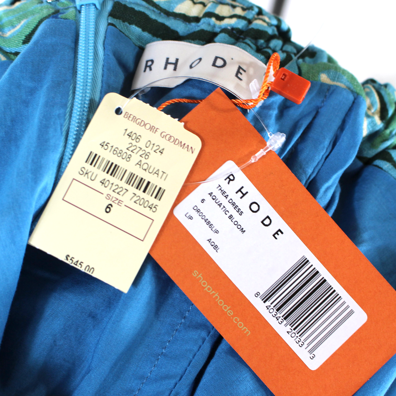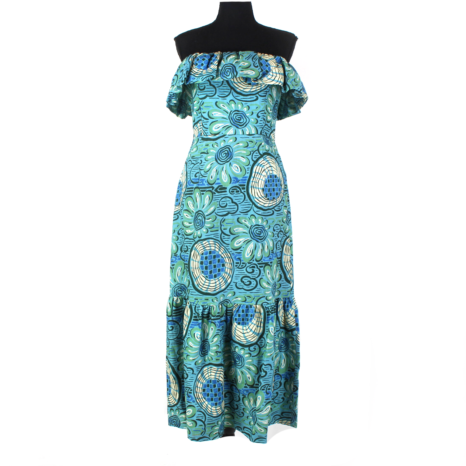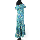 Rhode Thea Aquatic Bloom Linen Strapless Flounce Hem Midi Dress