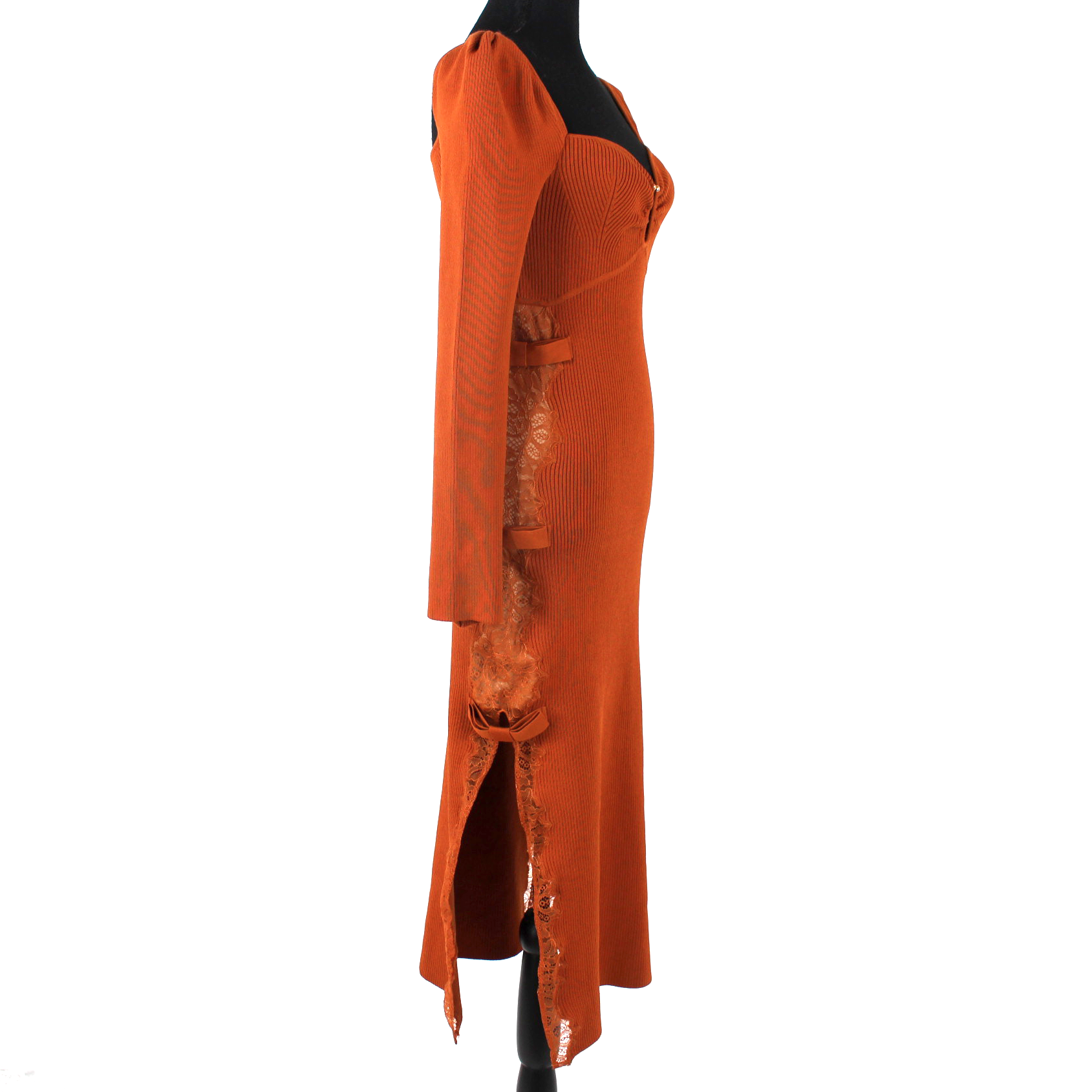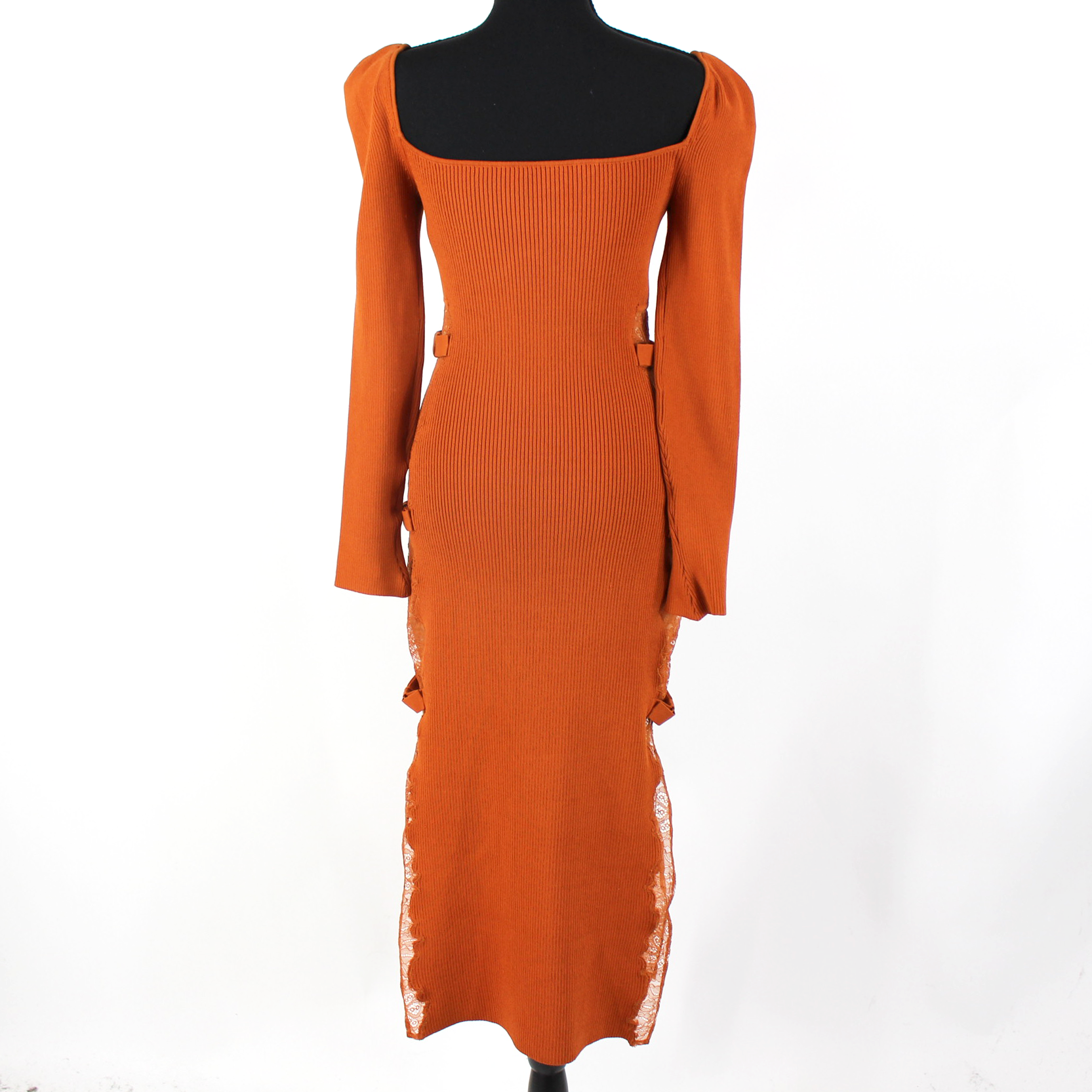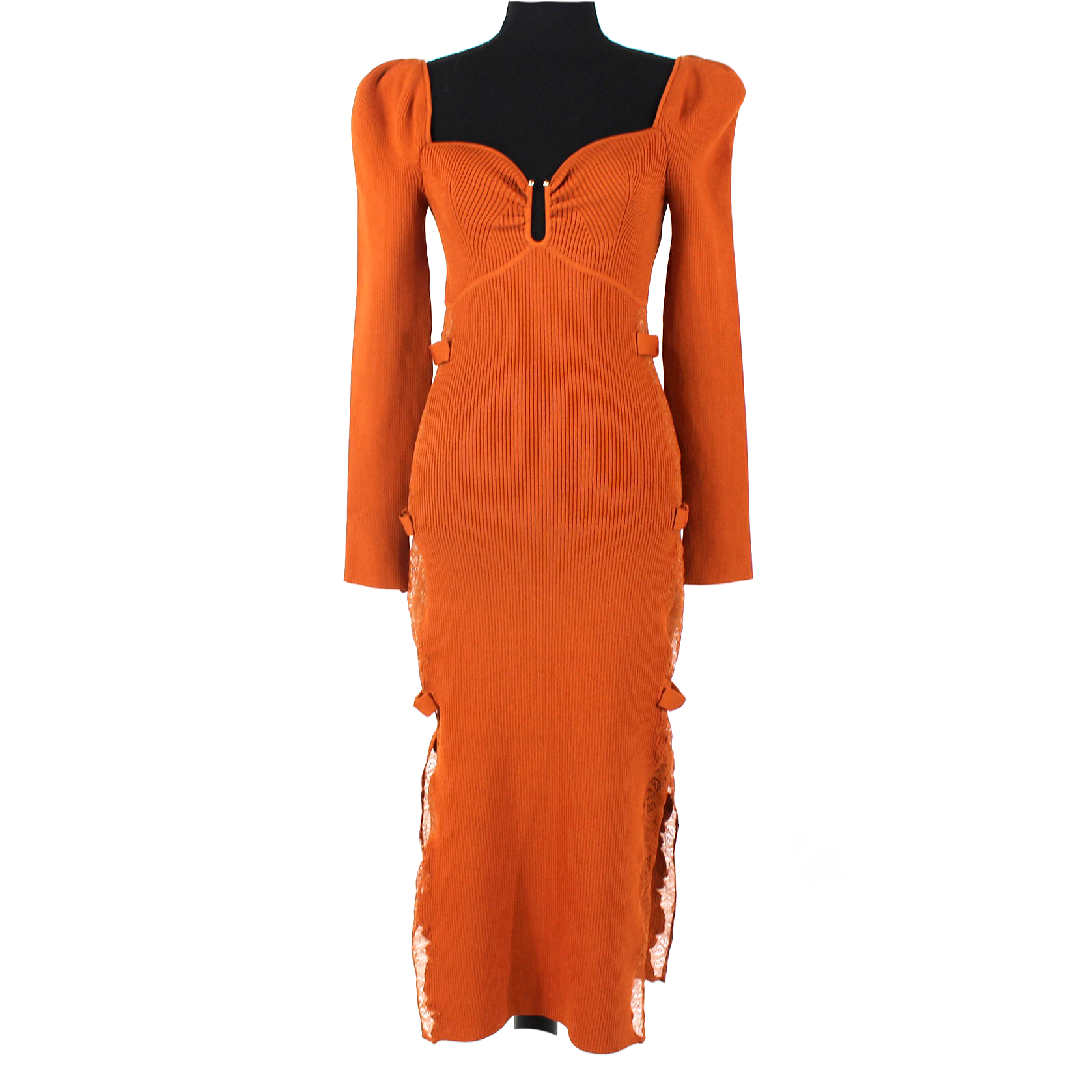 Self-Portrait Cinnamon Lace Ribbed Knit Long Sleeve Midi Dress