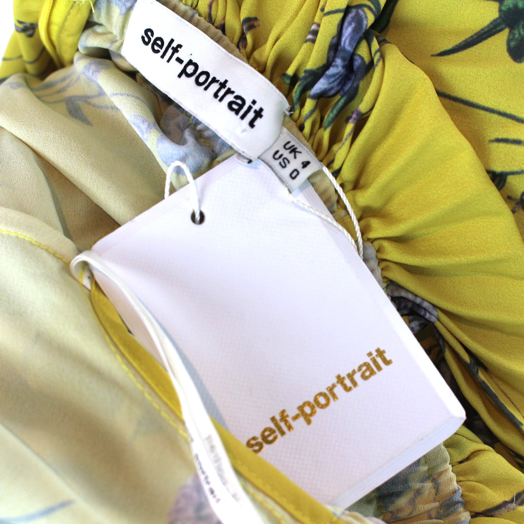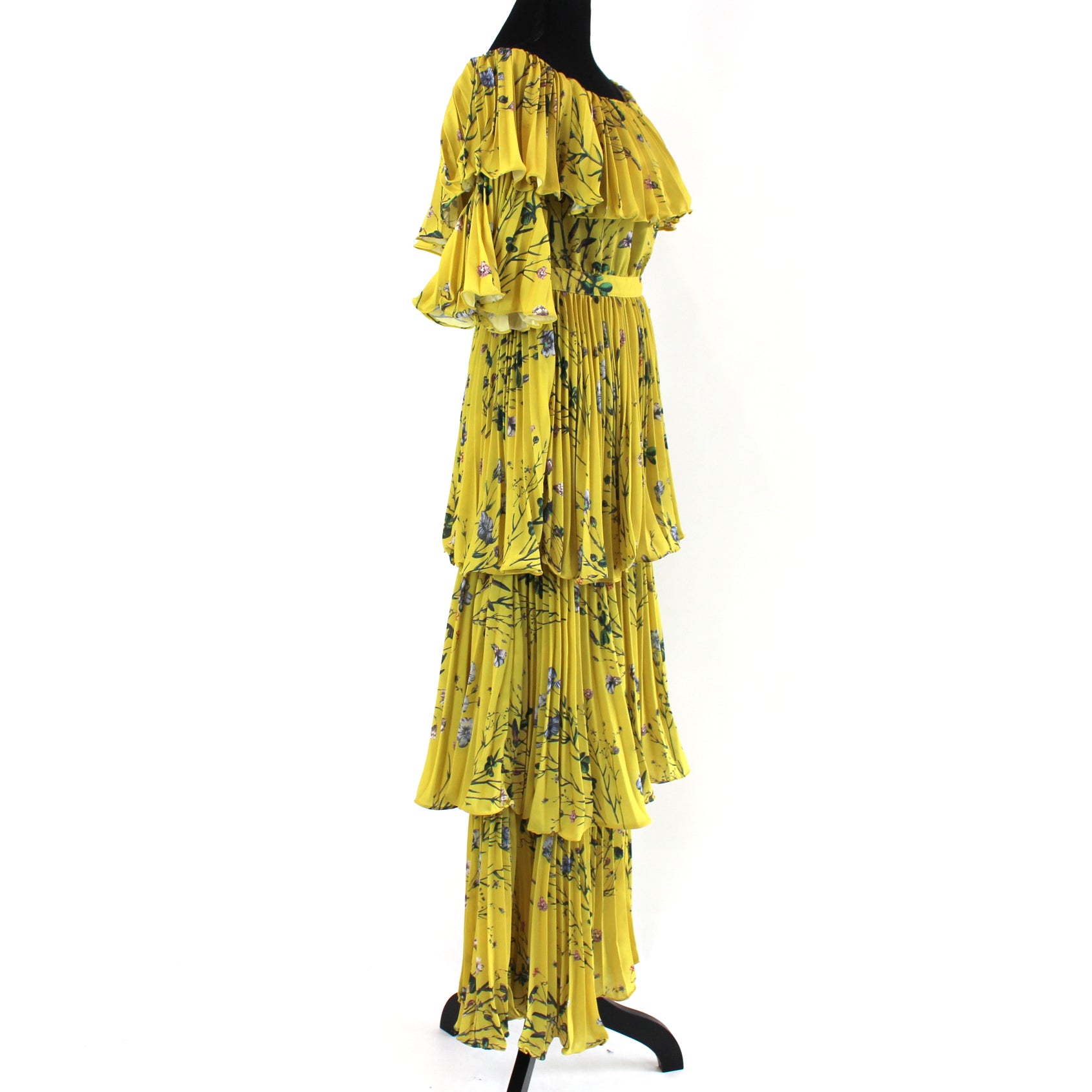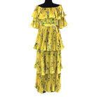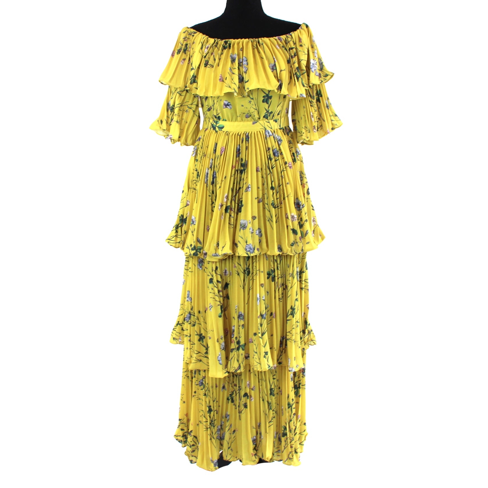 Self-Portrait Yellow Floral Pleated Tiered Ruffle Off The Shoulder Maxi Dress