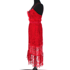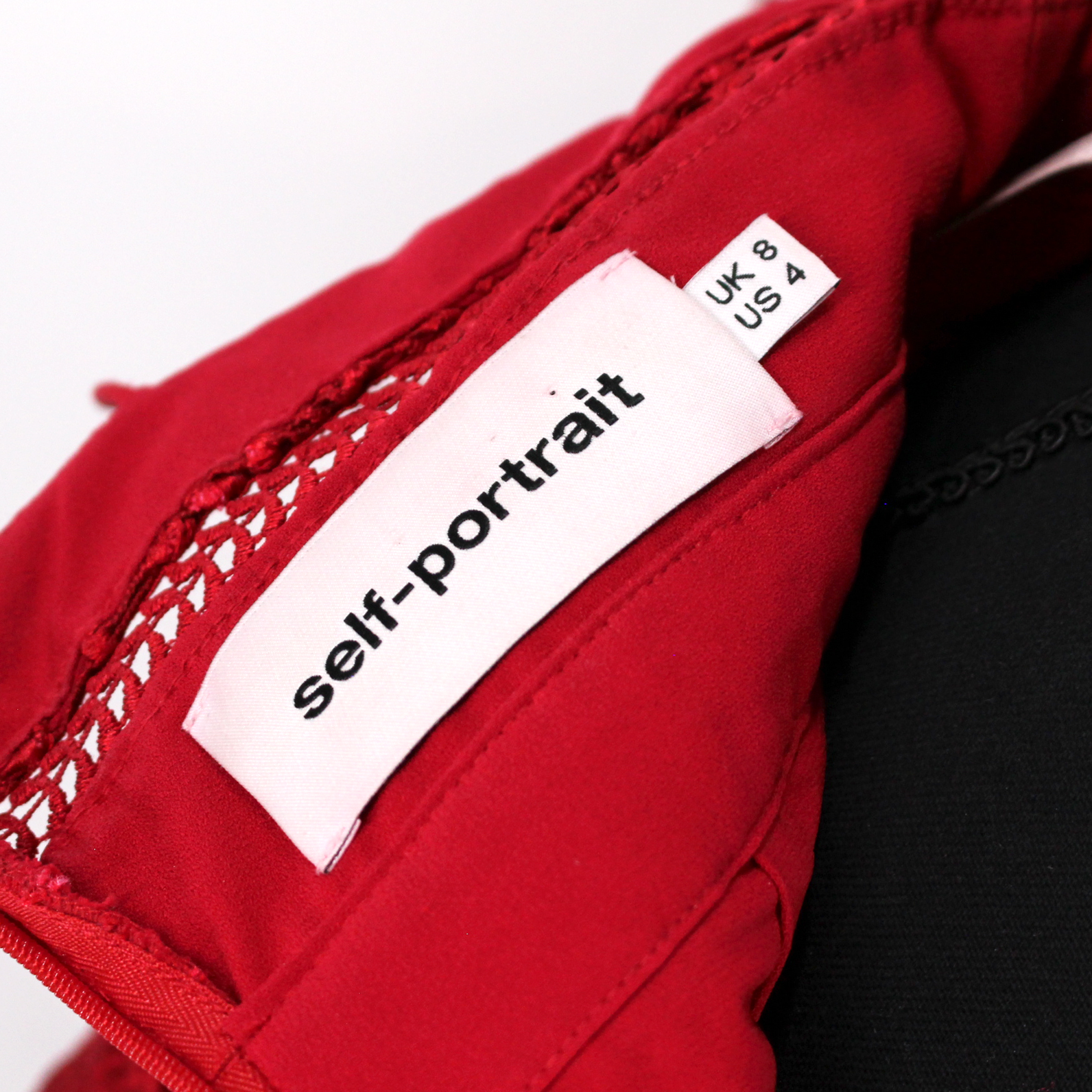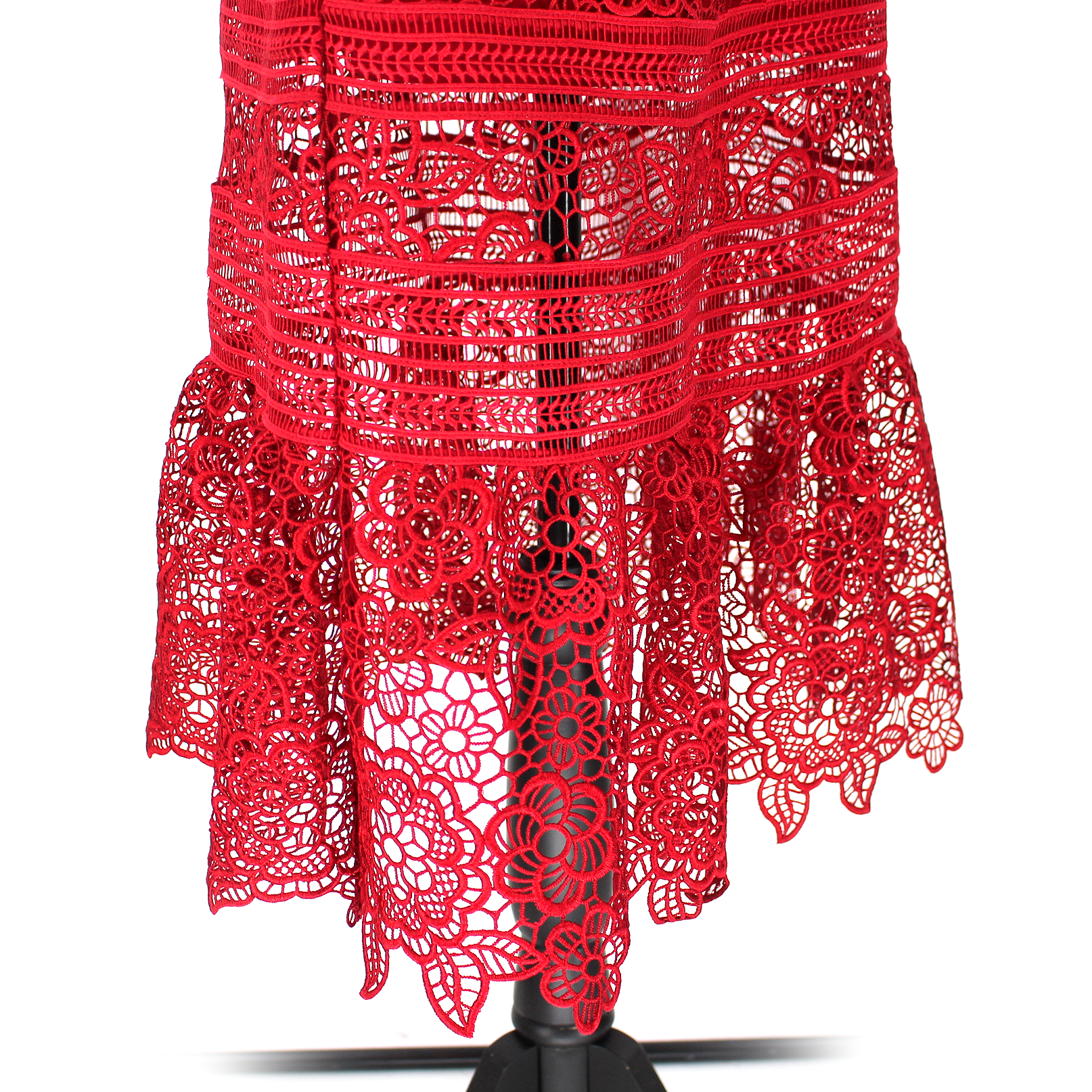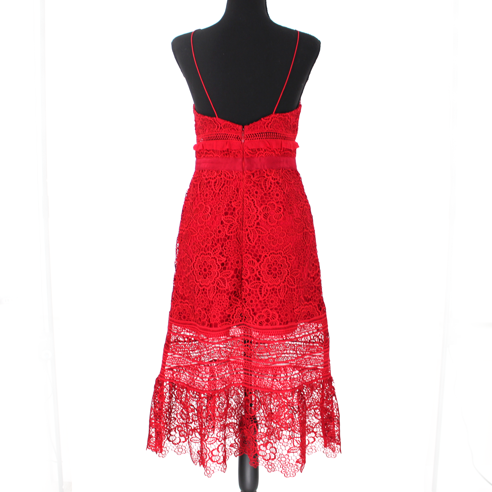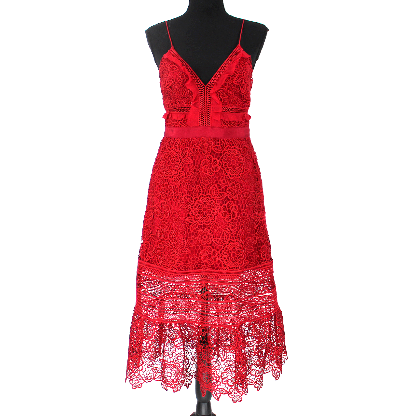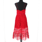 Self-Portrait Blush Red Floral Lace Ruffle Trim Sleeveless Midi Dress