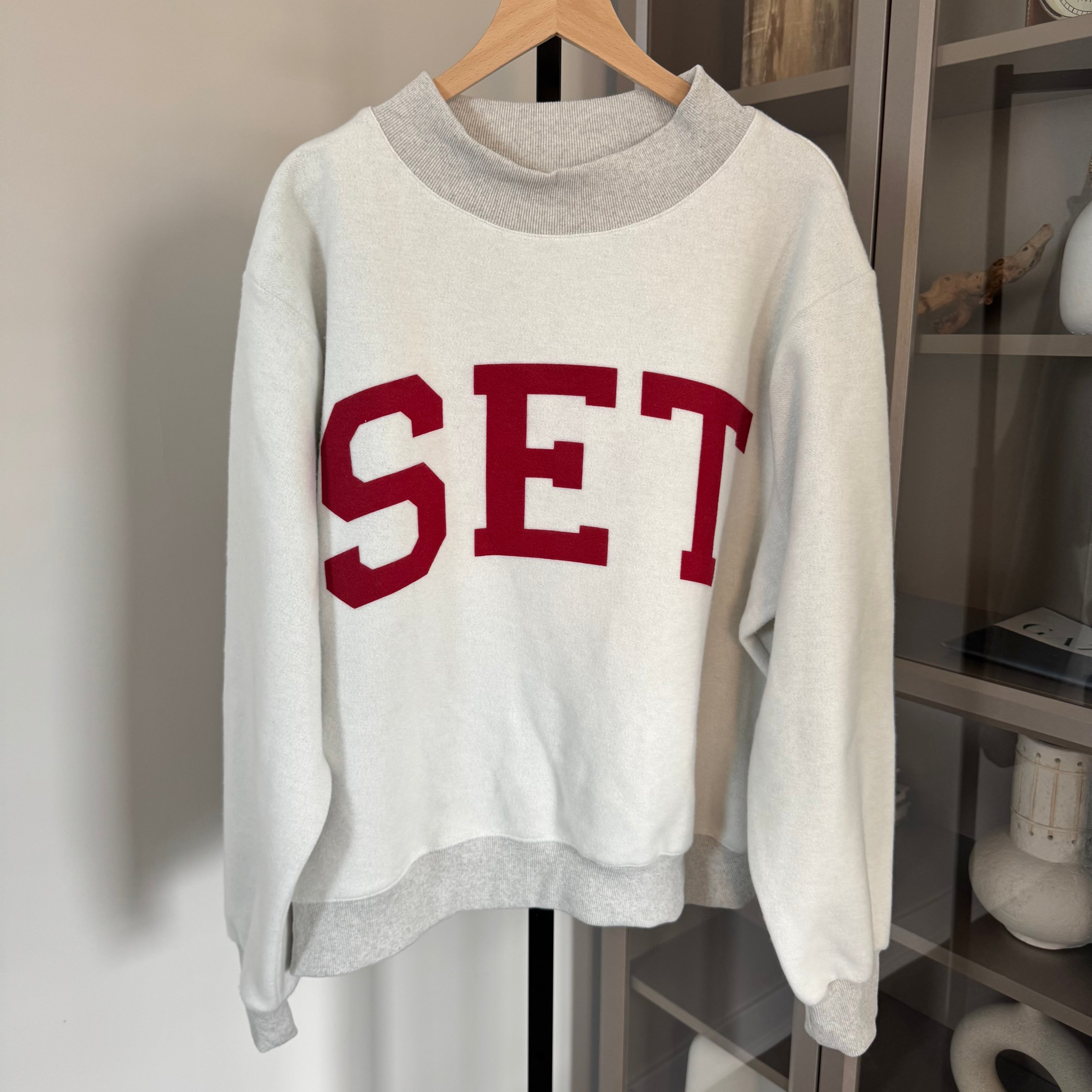Set x Parke Reversible Varsity White Grey Mock Neck Sweatshirt
