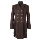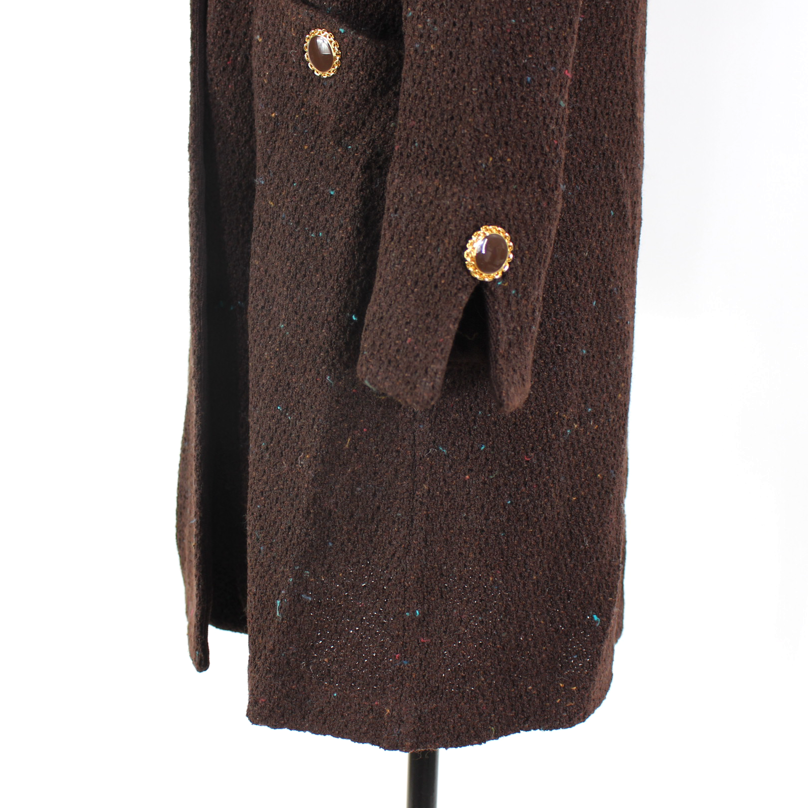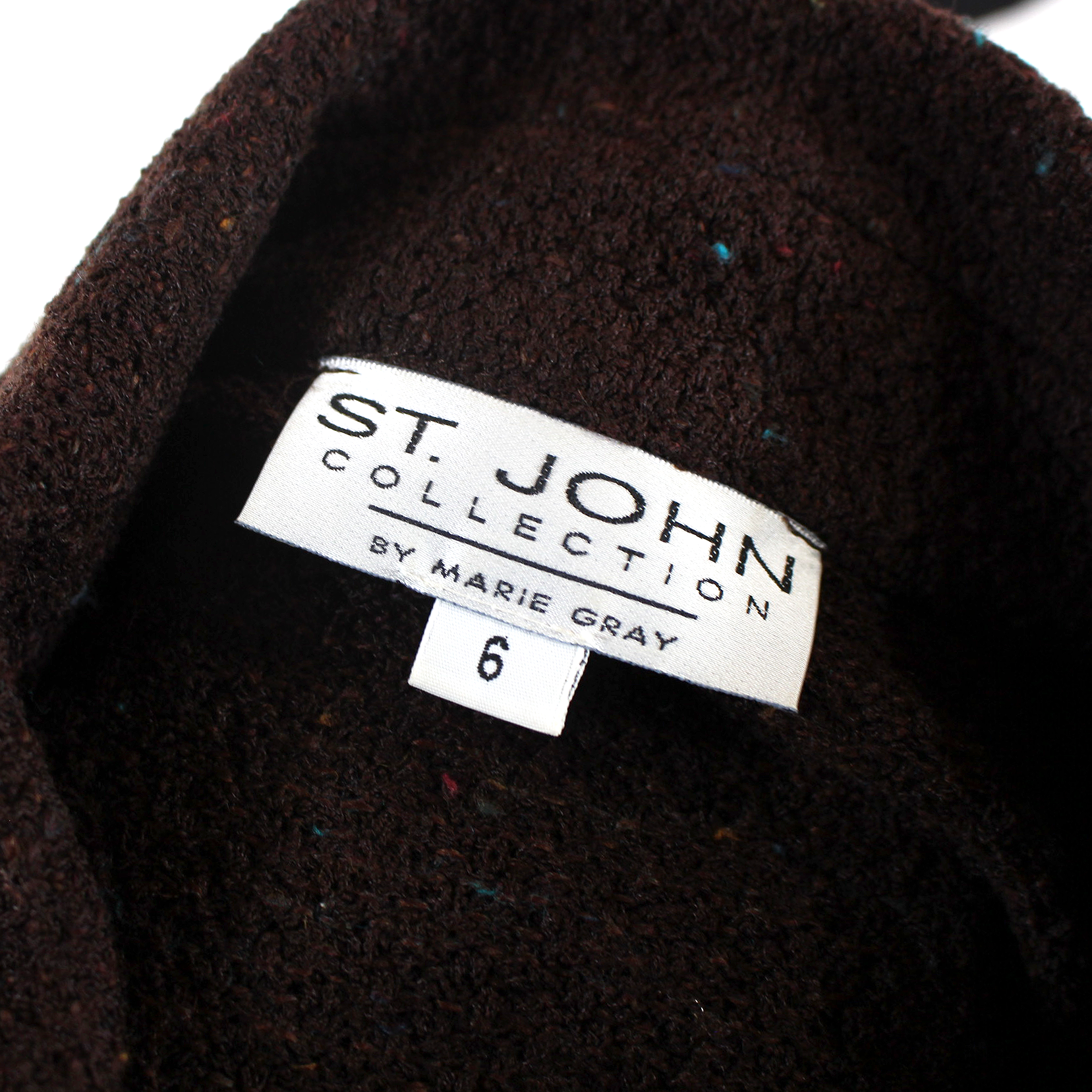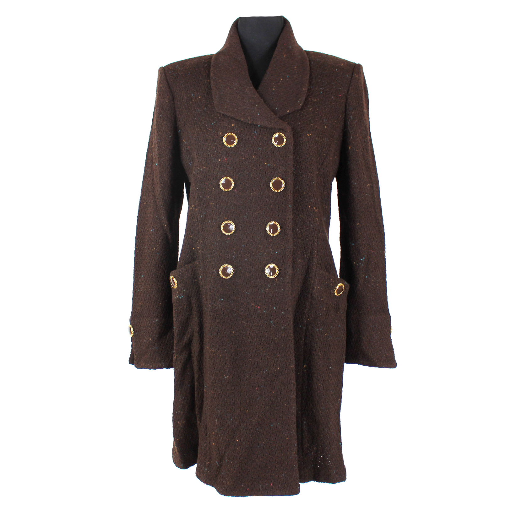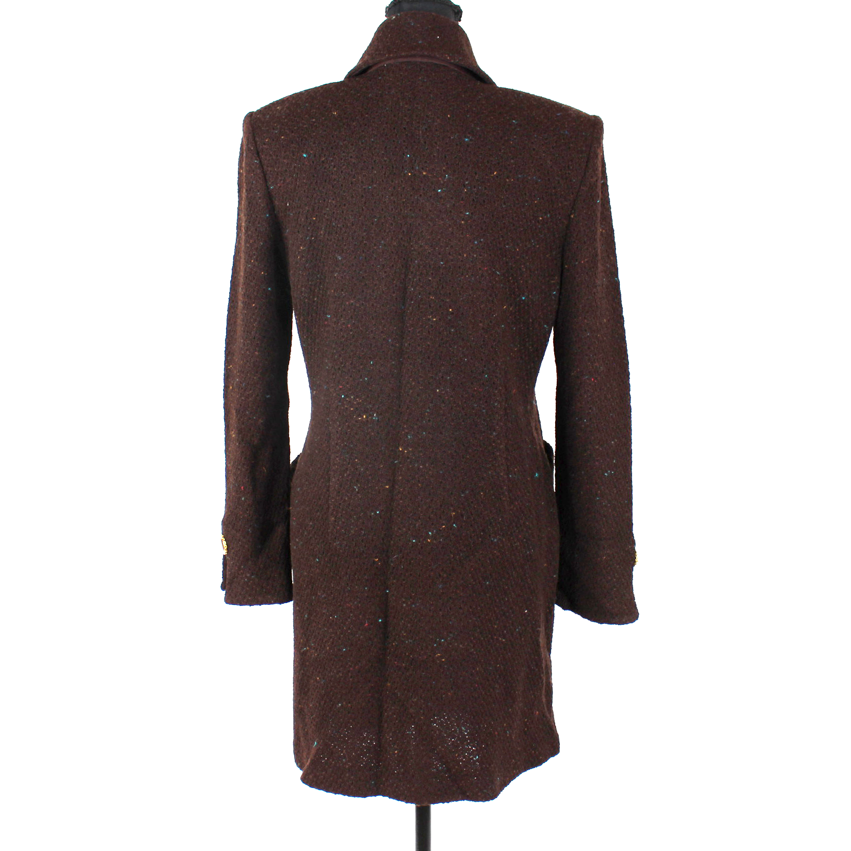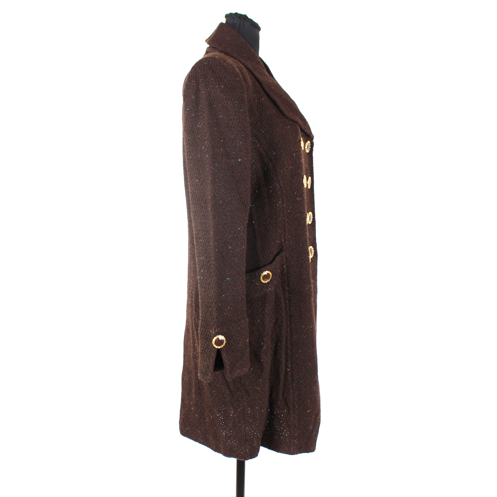 St. John Collection Brown Knit Speckle Tweed Double Breasted Pea Coat