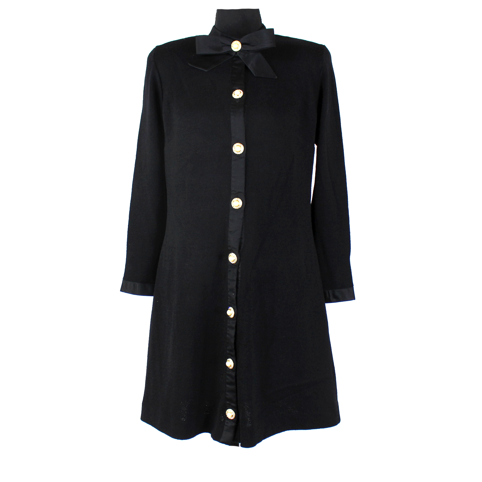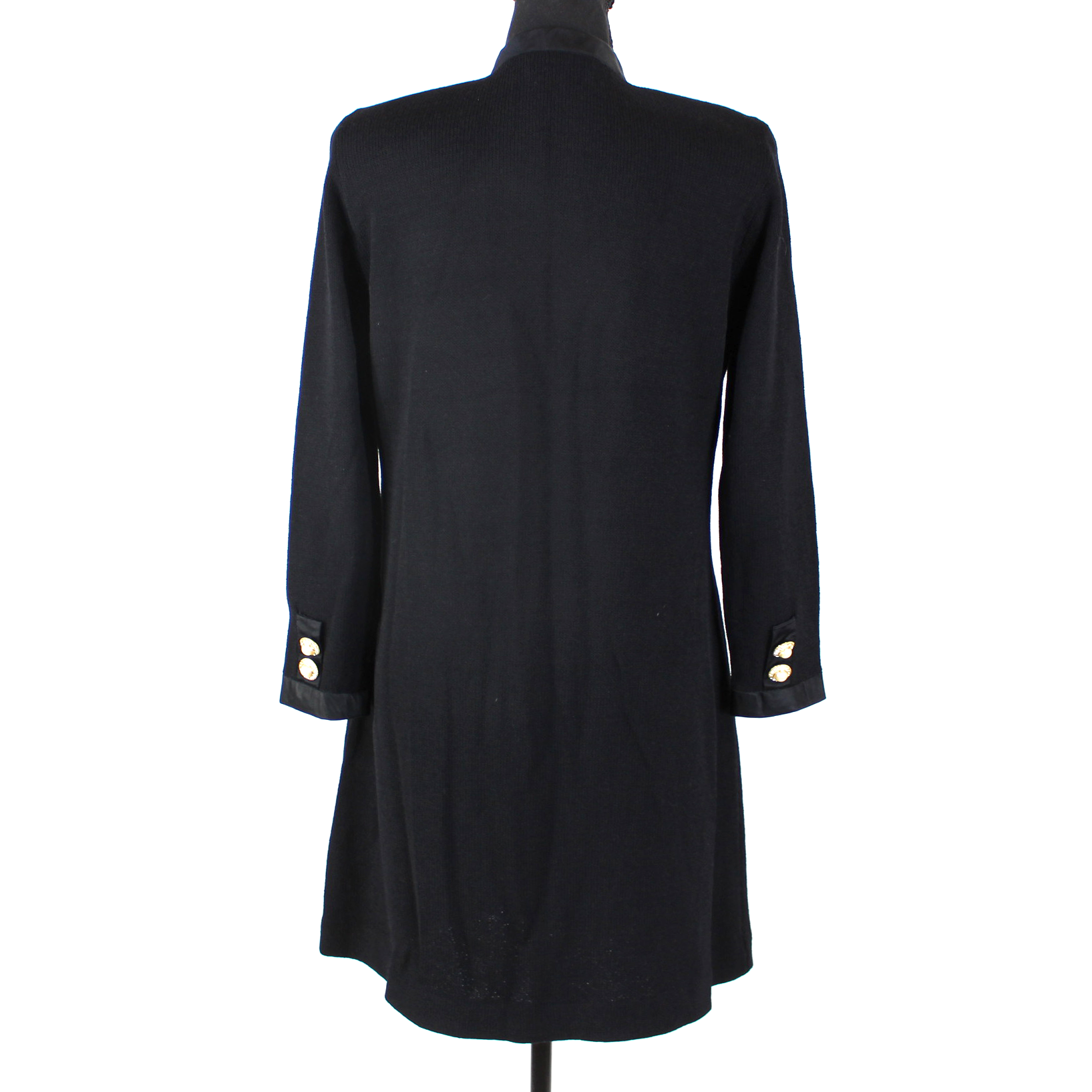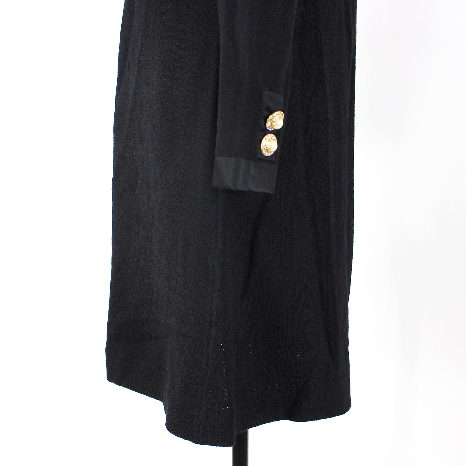 St. John Evening Black Santana Knit Satin Trim Embellished Button Dress