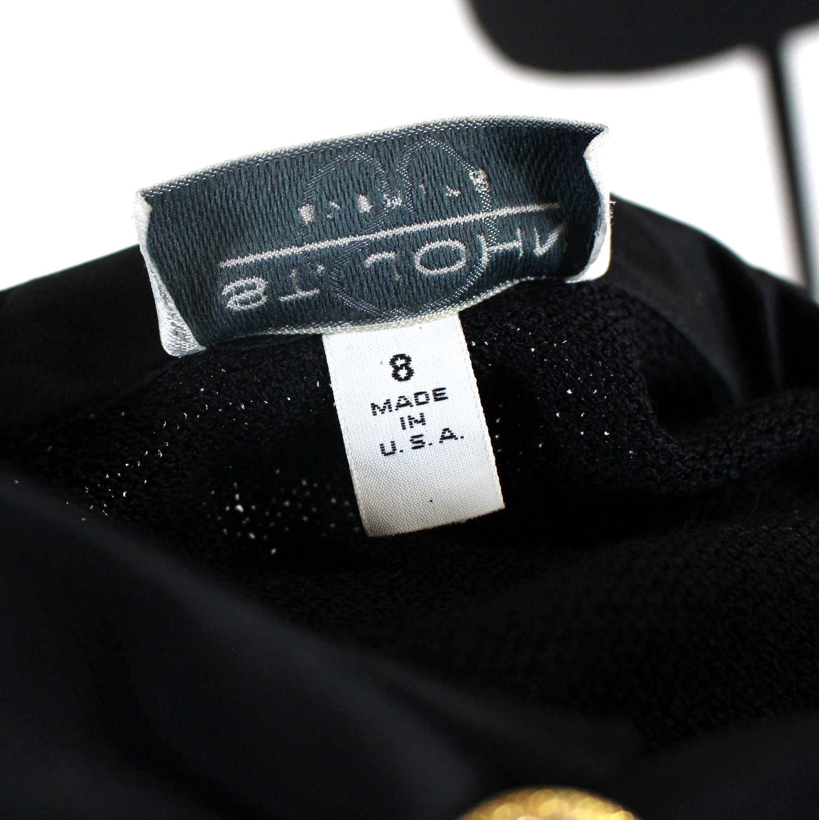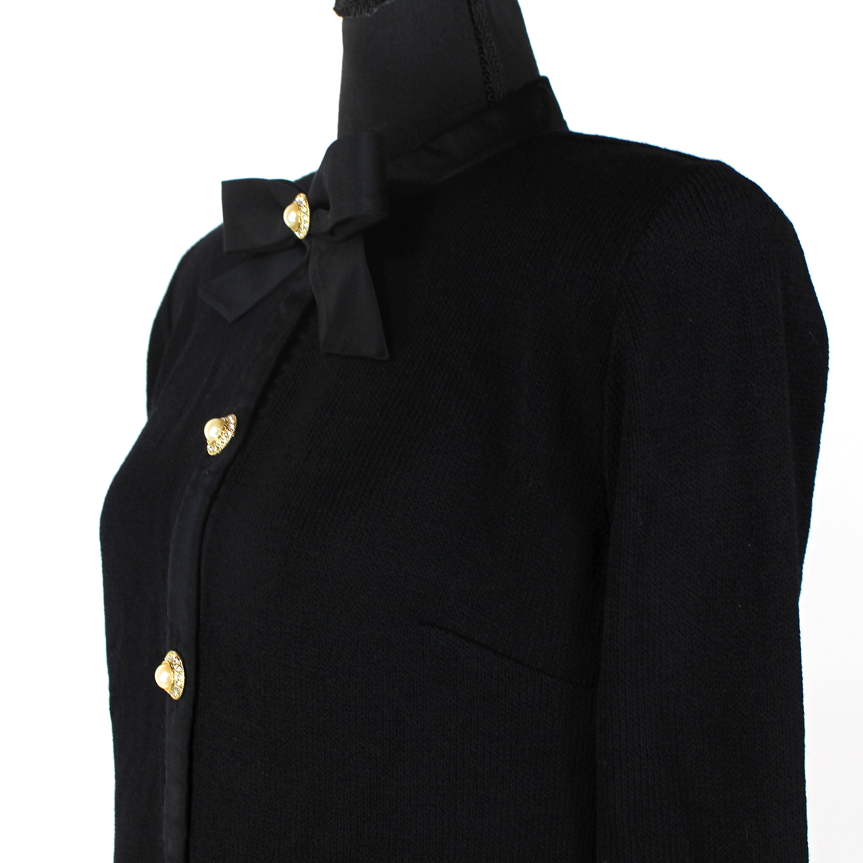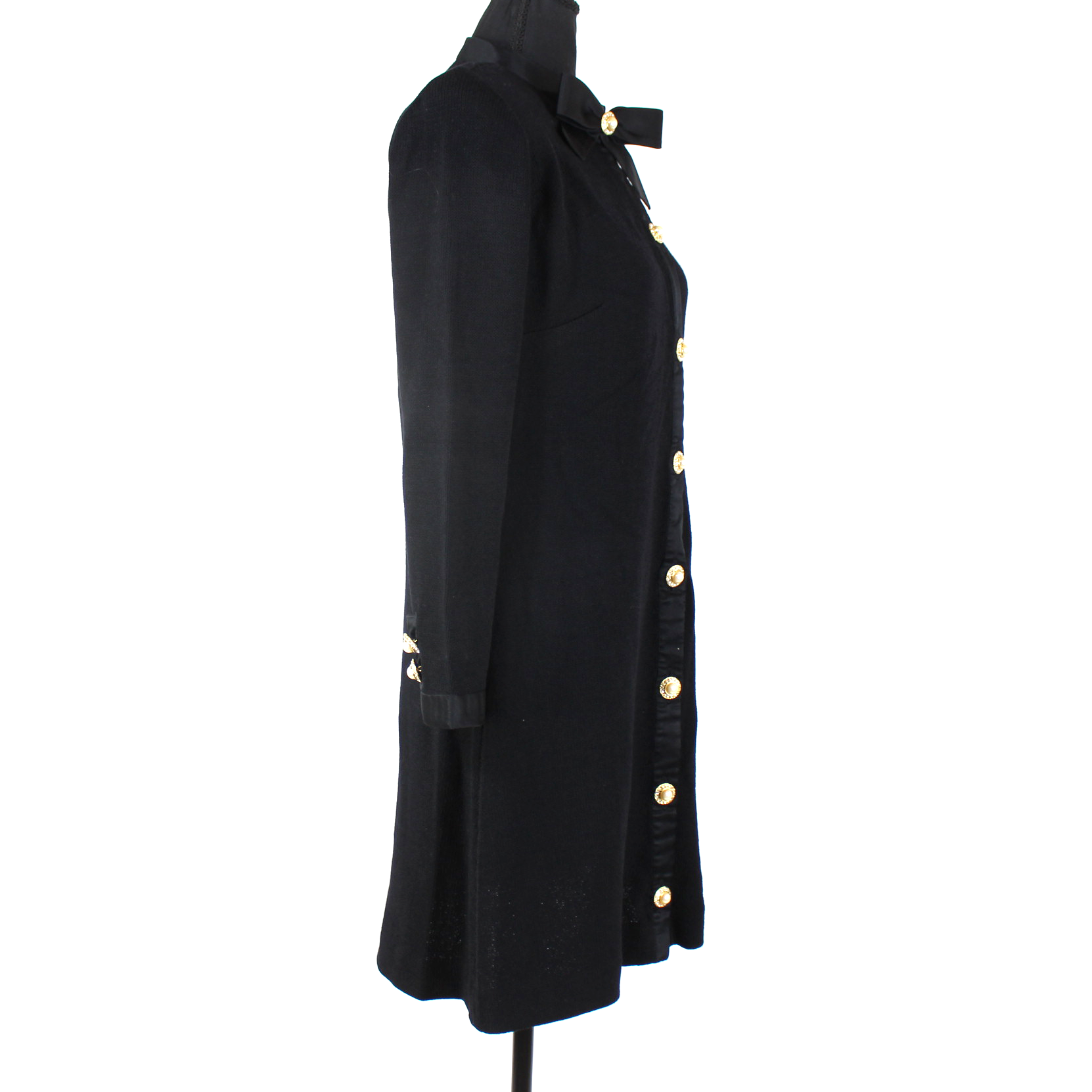 St. John Evening Black Santana Knit Satin Trim Embellished Button Dress