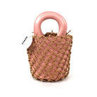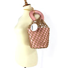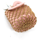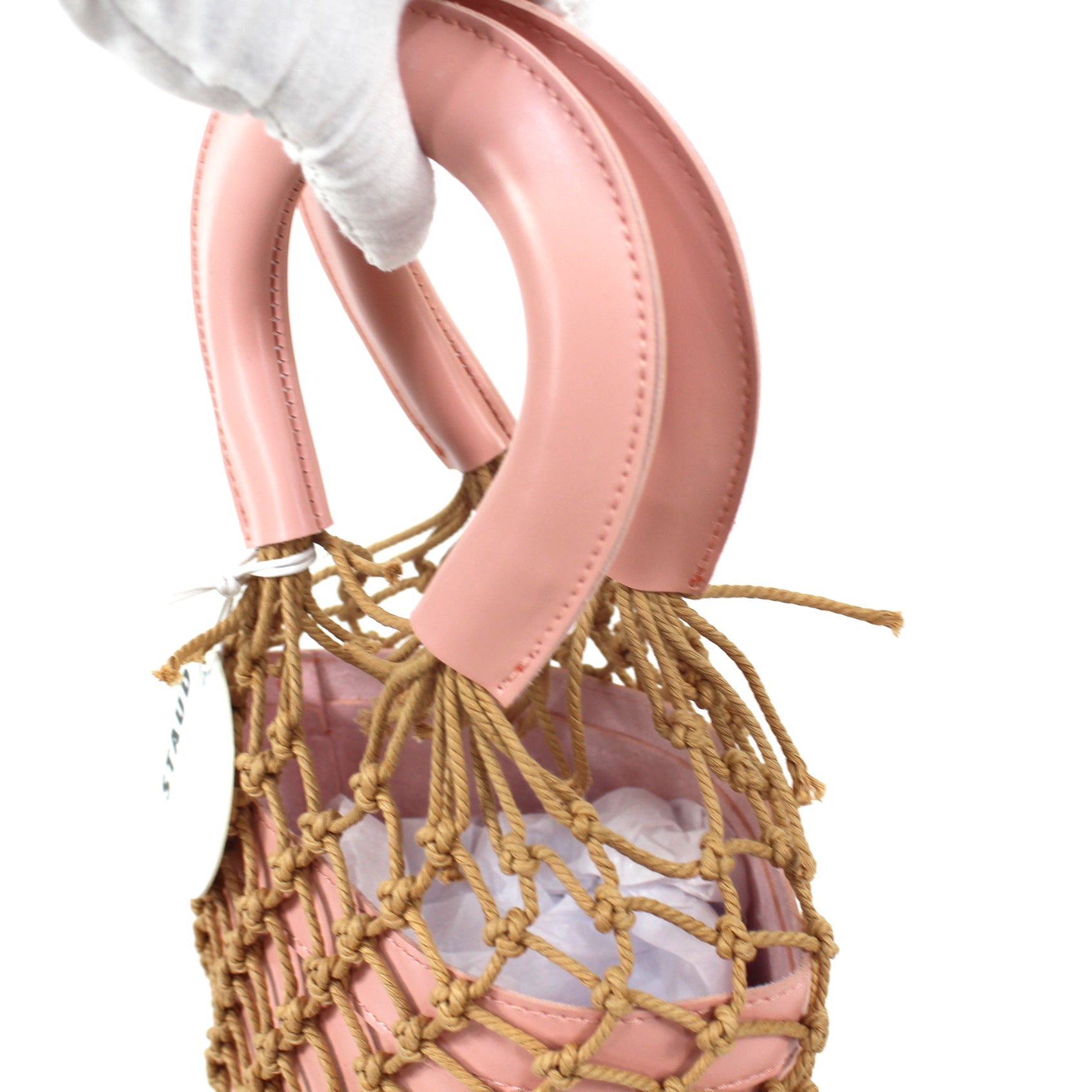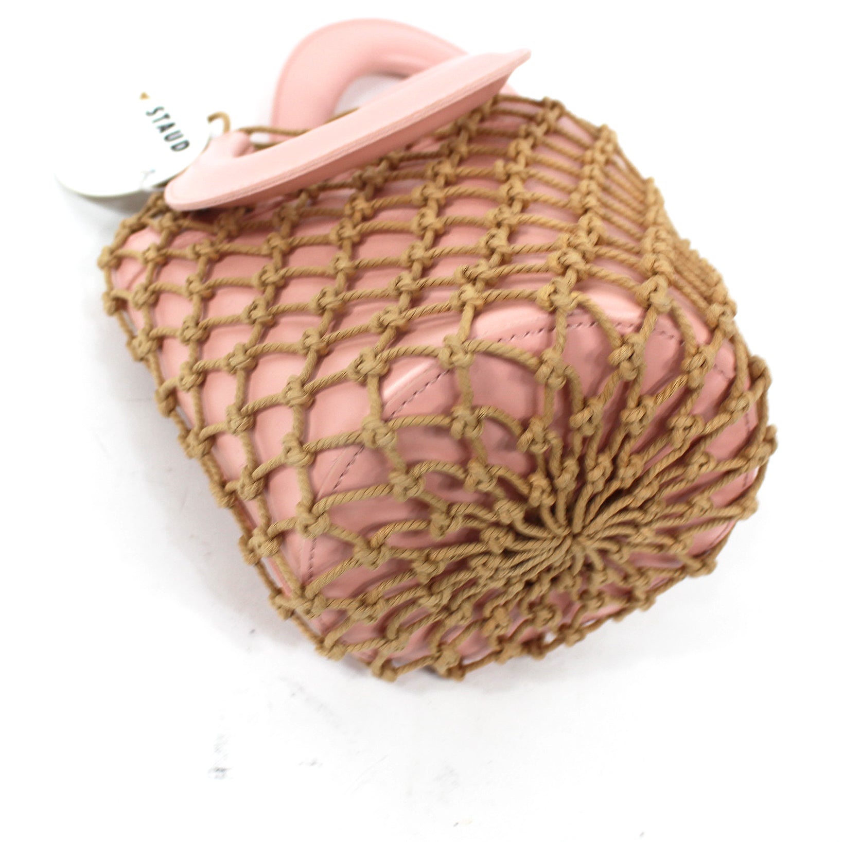 STAUD Moreau Tan Macrame Net Pink Leather Bucket Bag