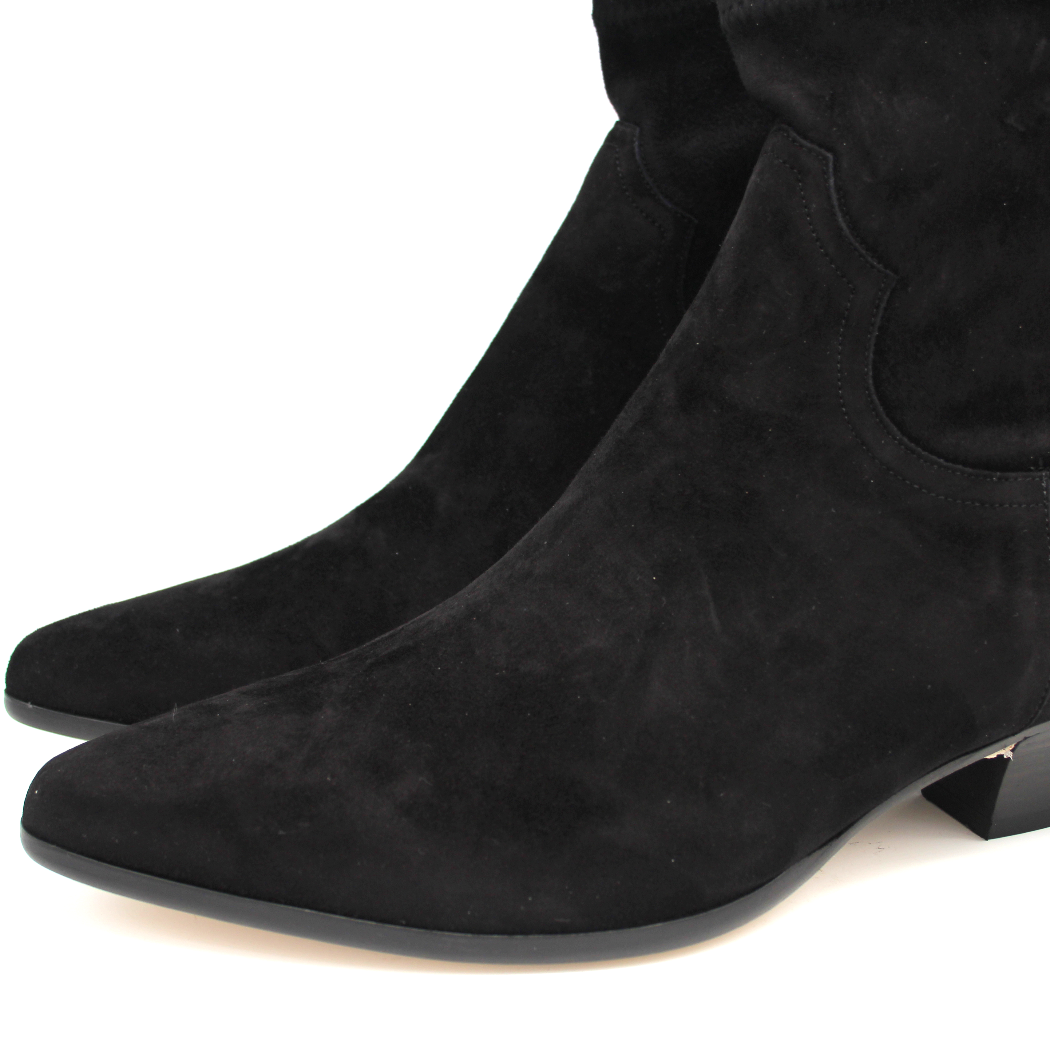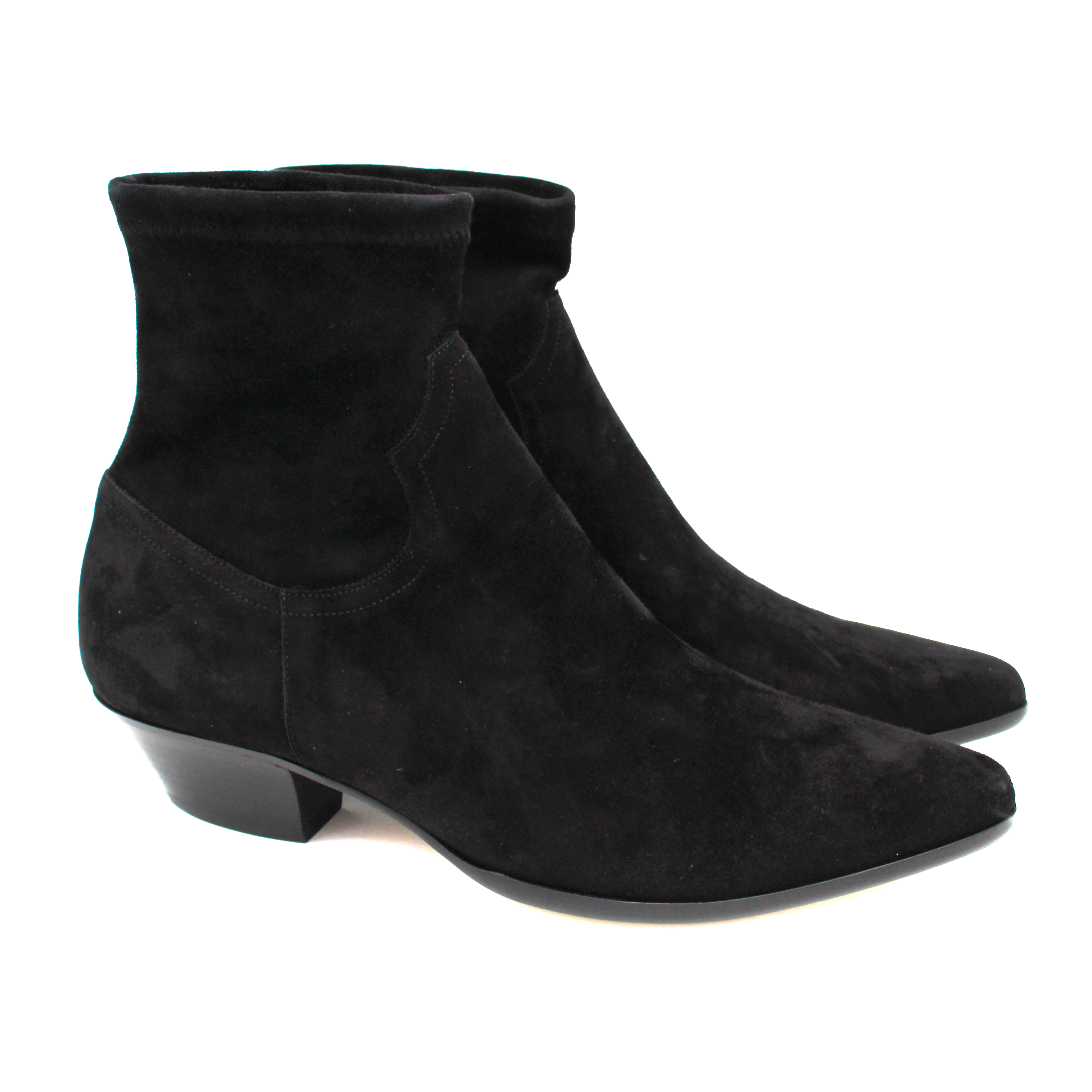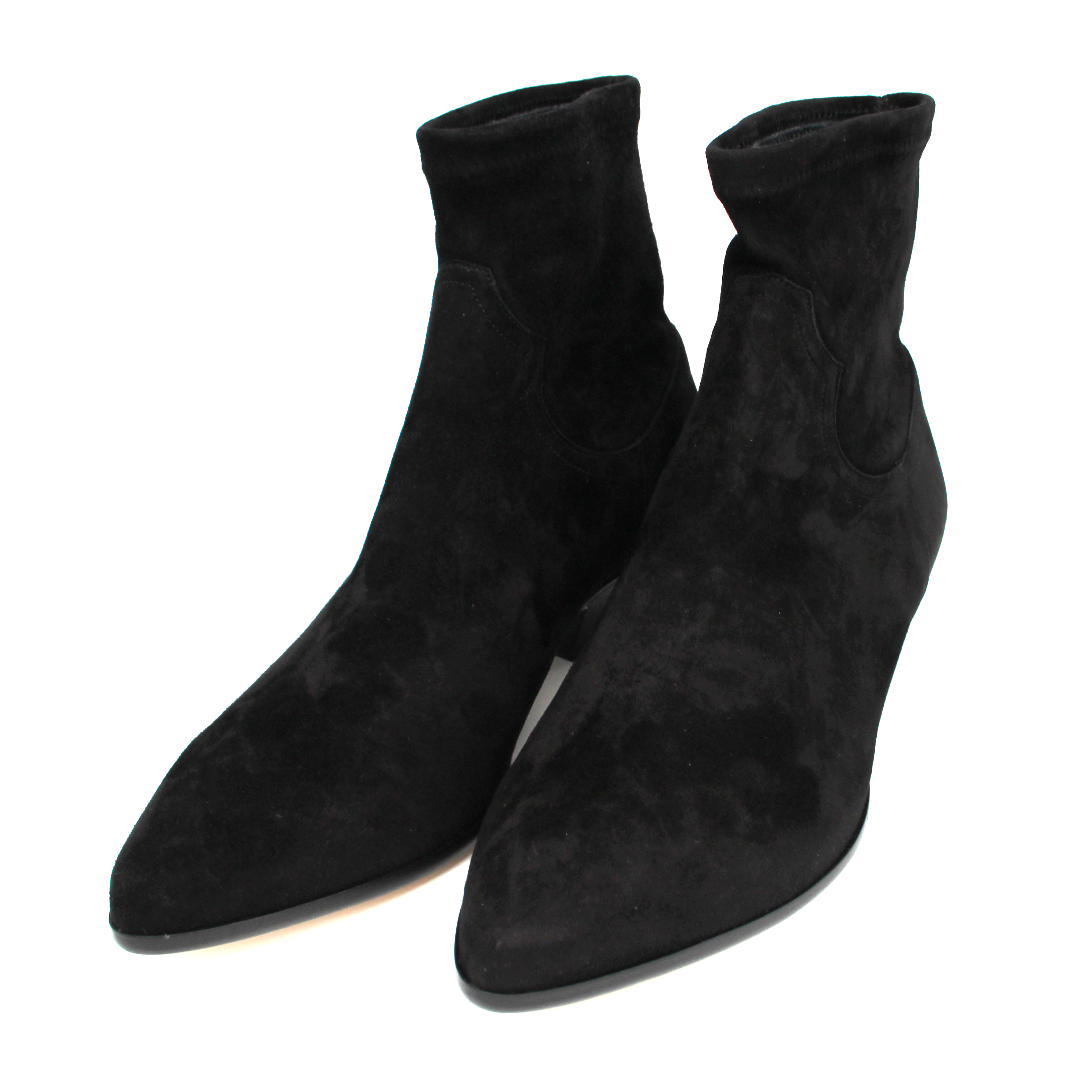 Tamara Mellon Go West 35 Black Stretch Suede Ankle Bootie Boots.
