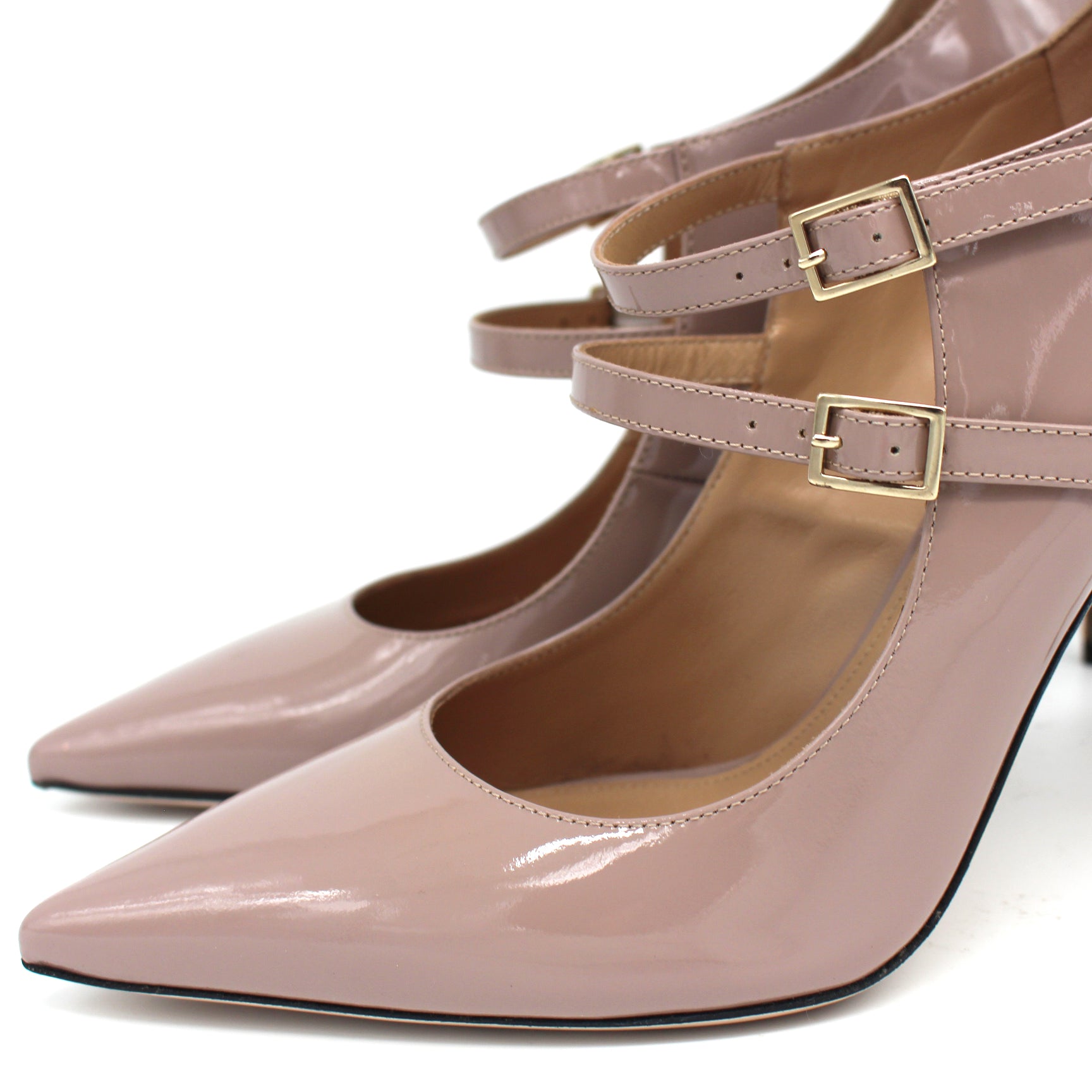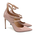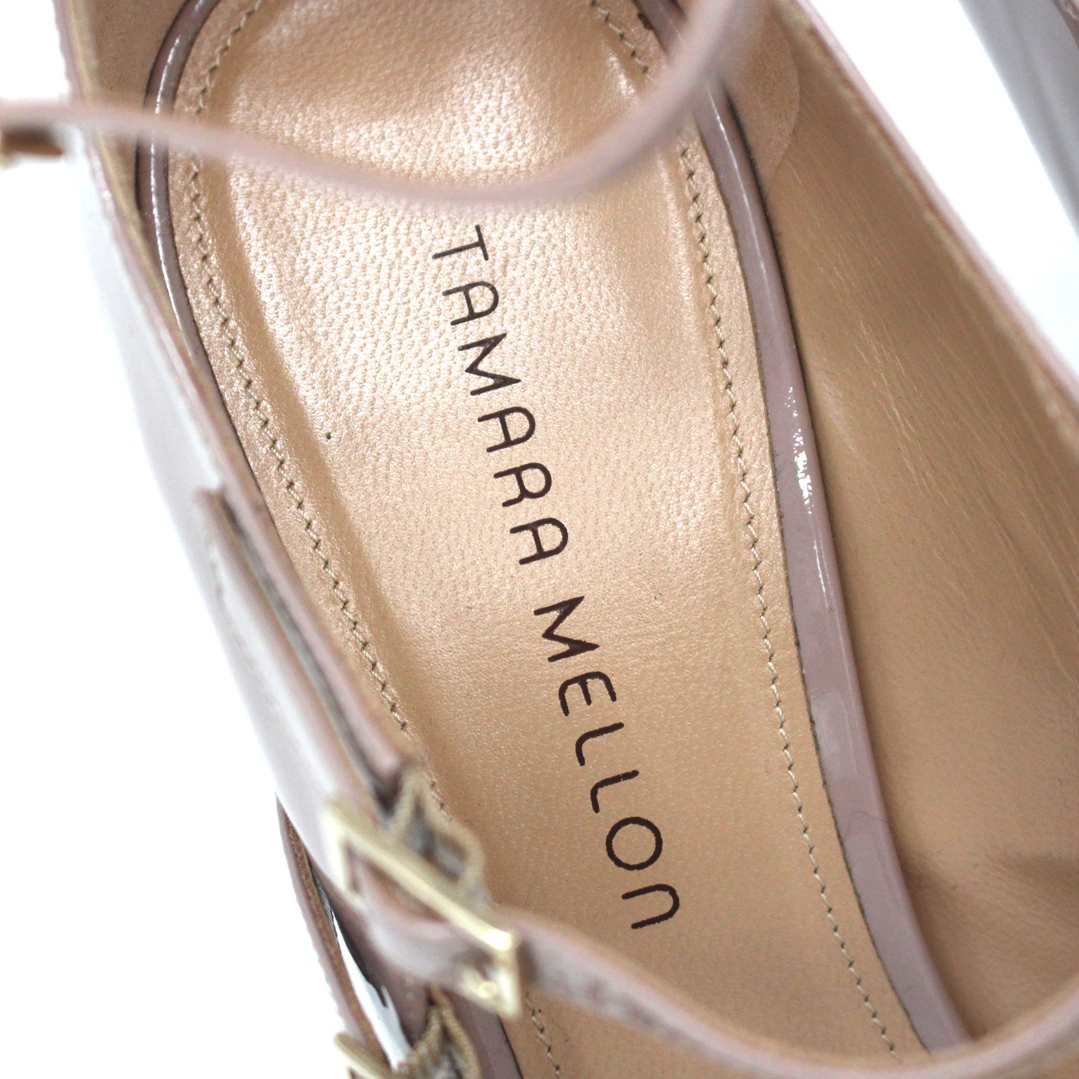 Tamara Mellon Pistol Taupe Patent Leather Pointed Toe Stiletto Heels.