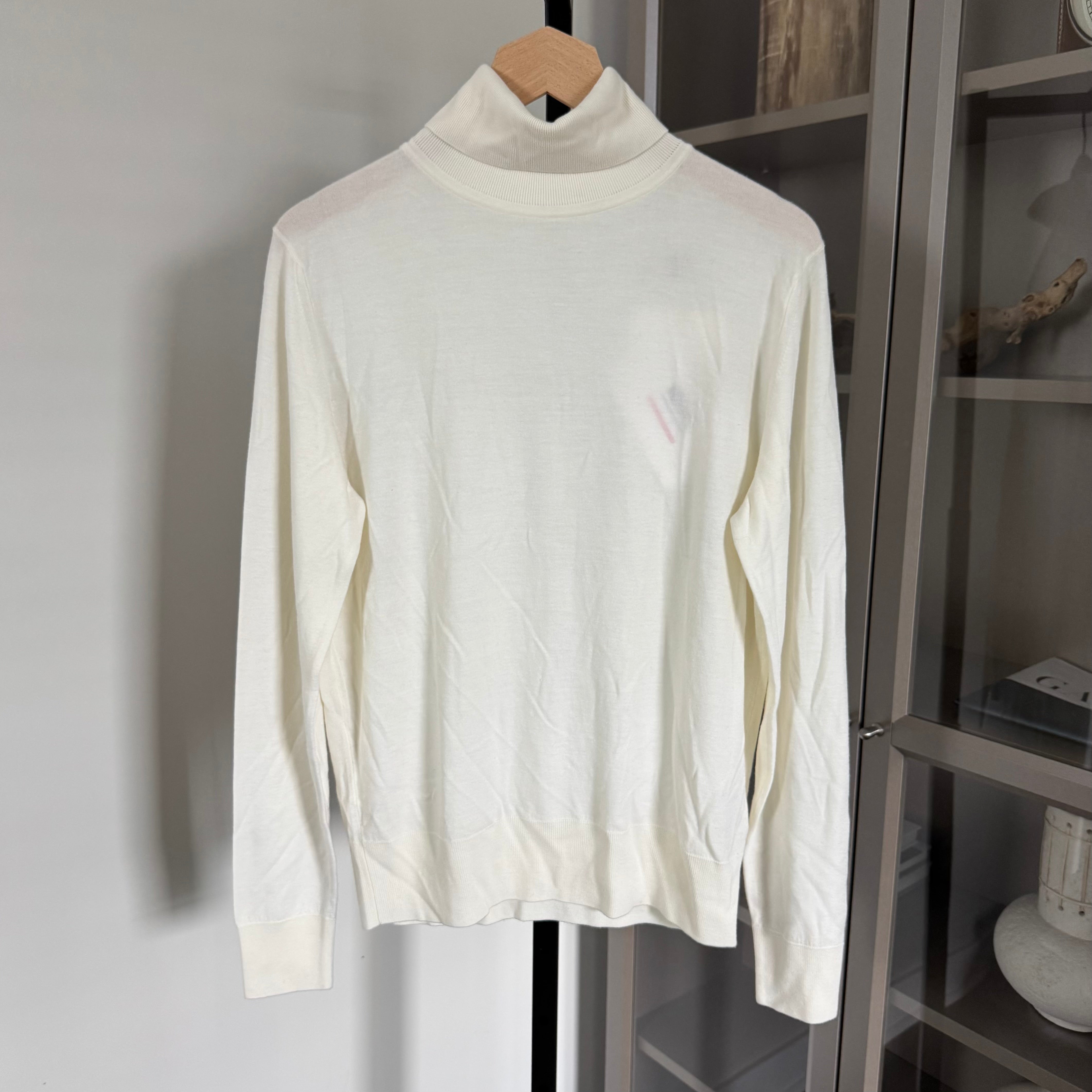 The Row Seiler Ivory Merino Wool Cashmere Knit Turtleneck Sweater
