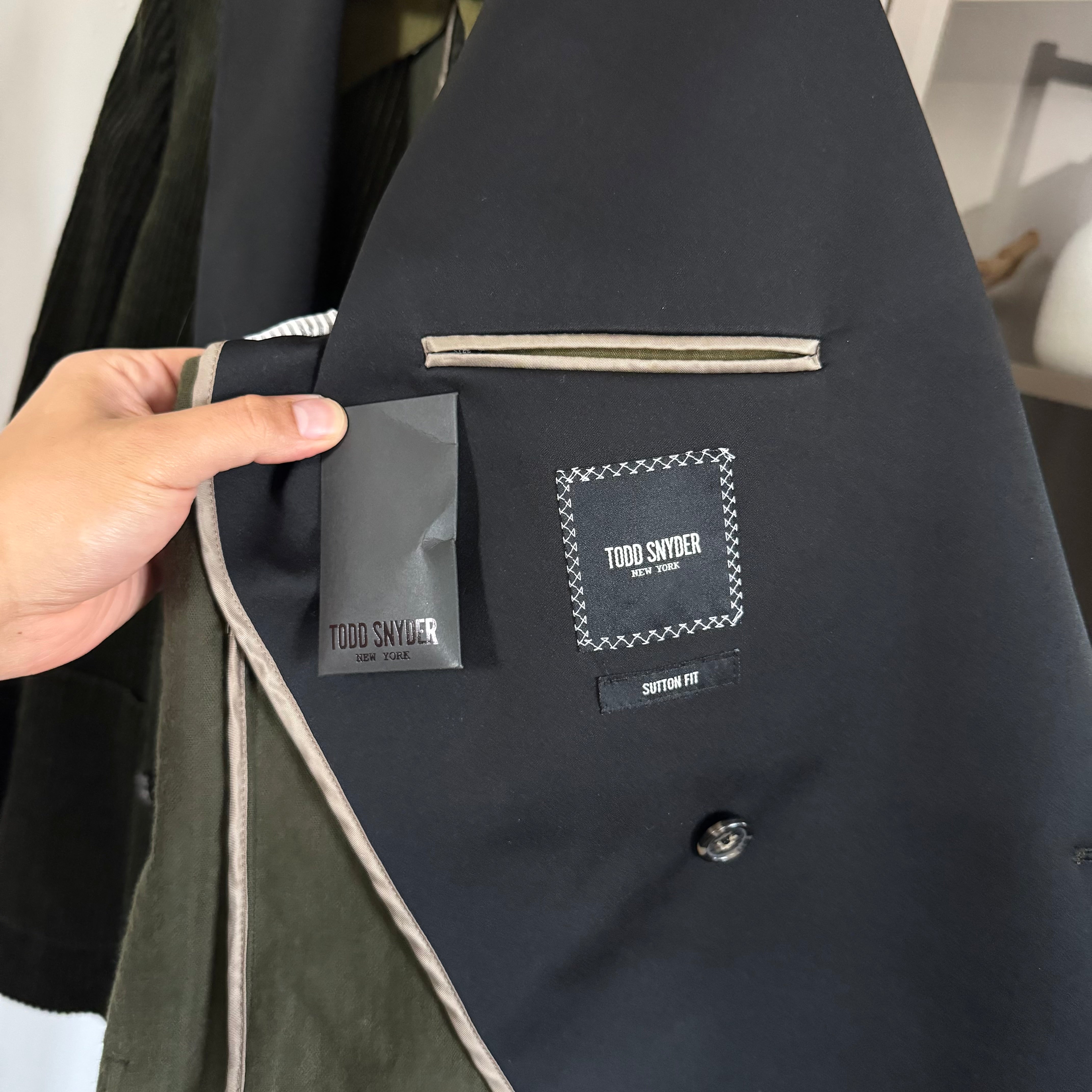 Men’s Todd Snyder Sutton Fit Green Corduroy Black Contrast Double Breasted Blazer