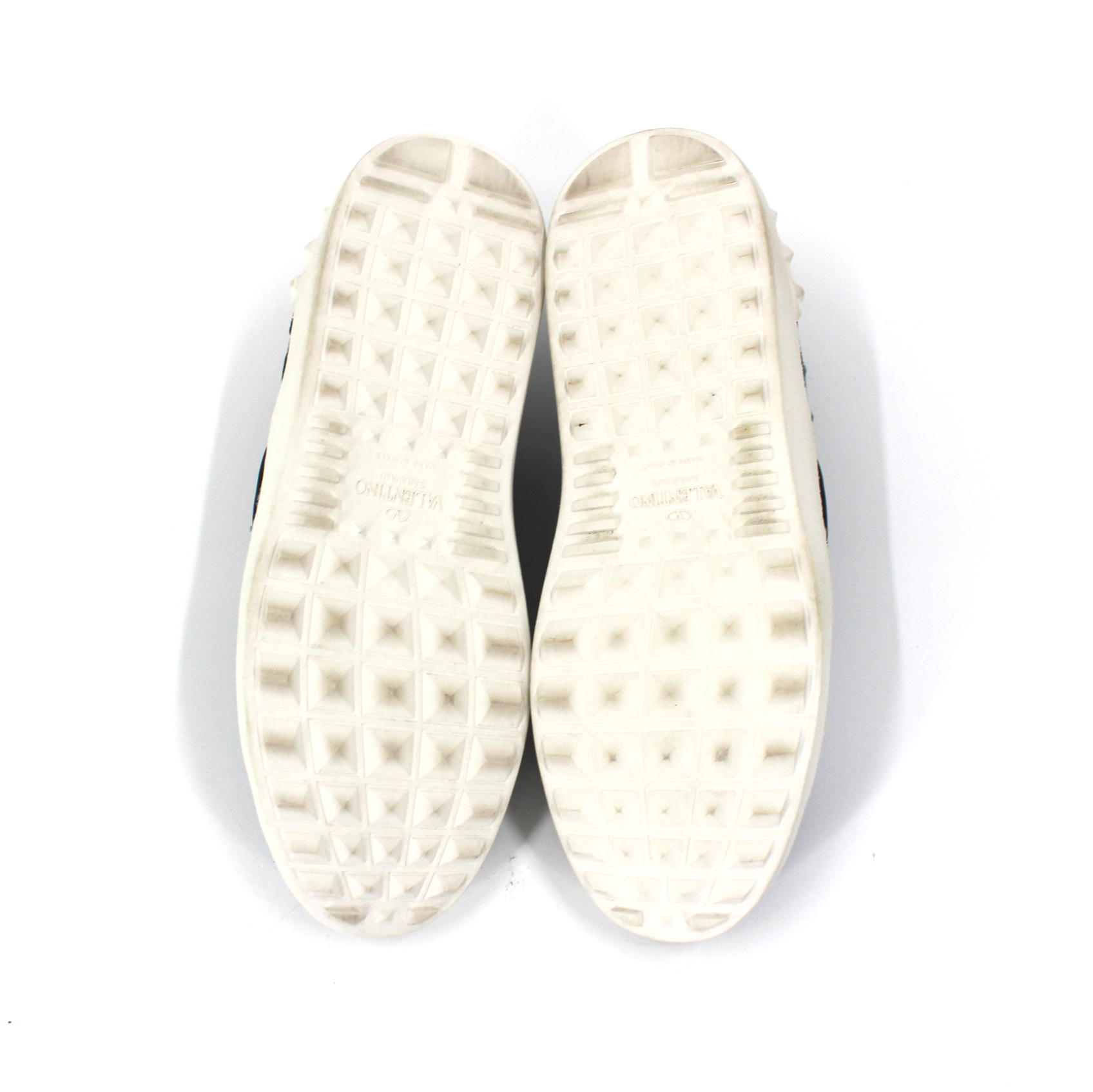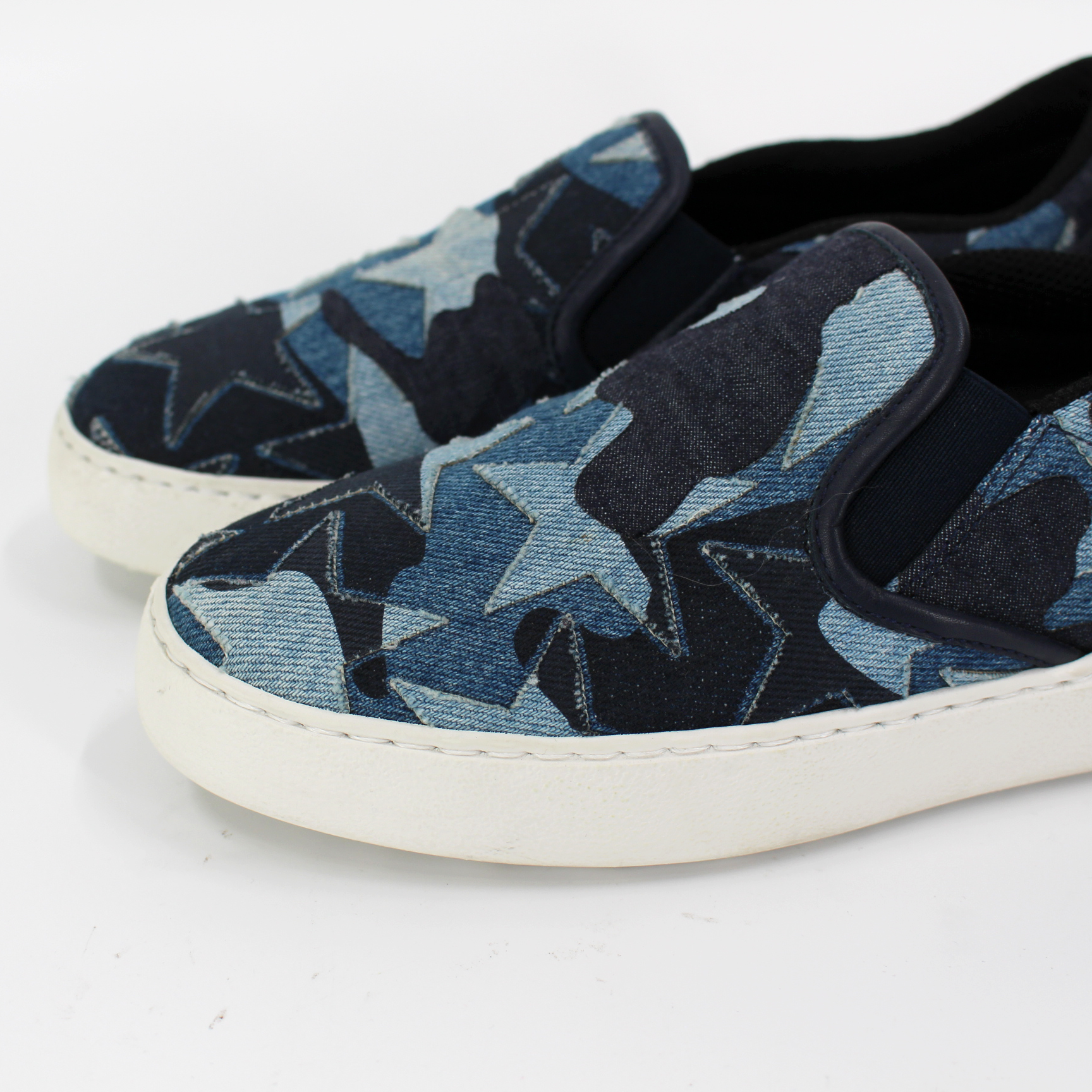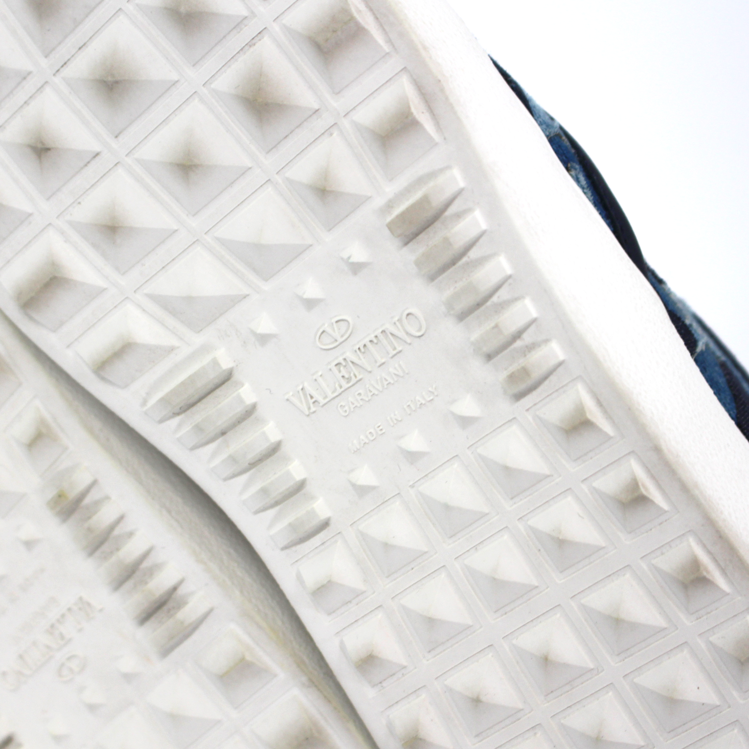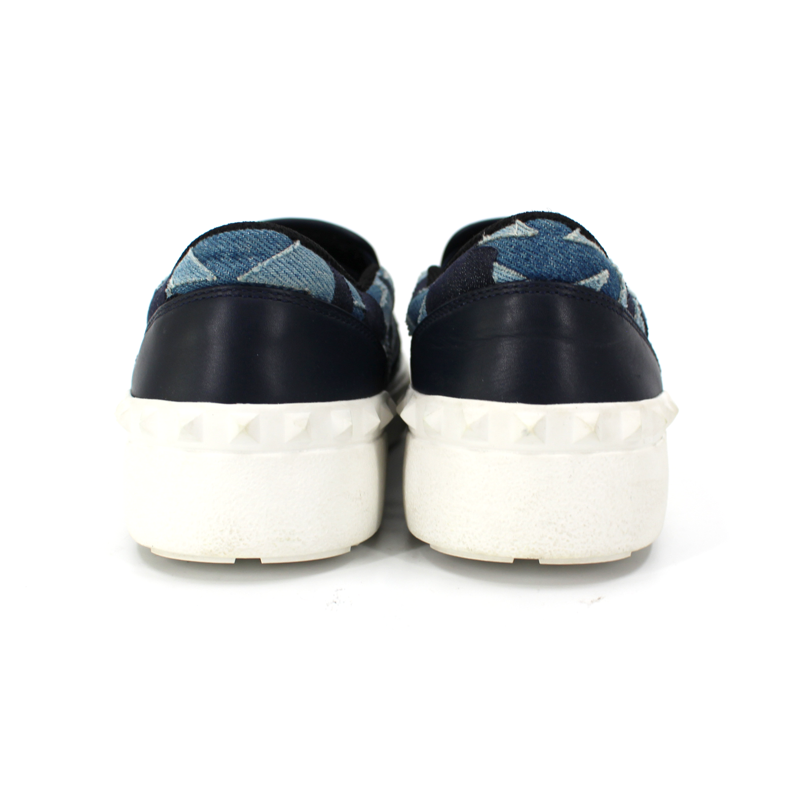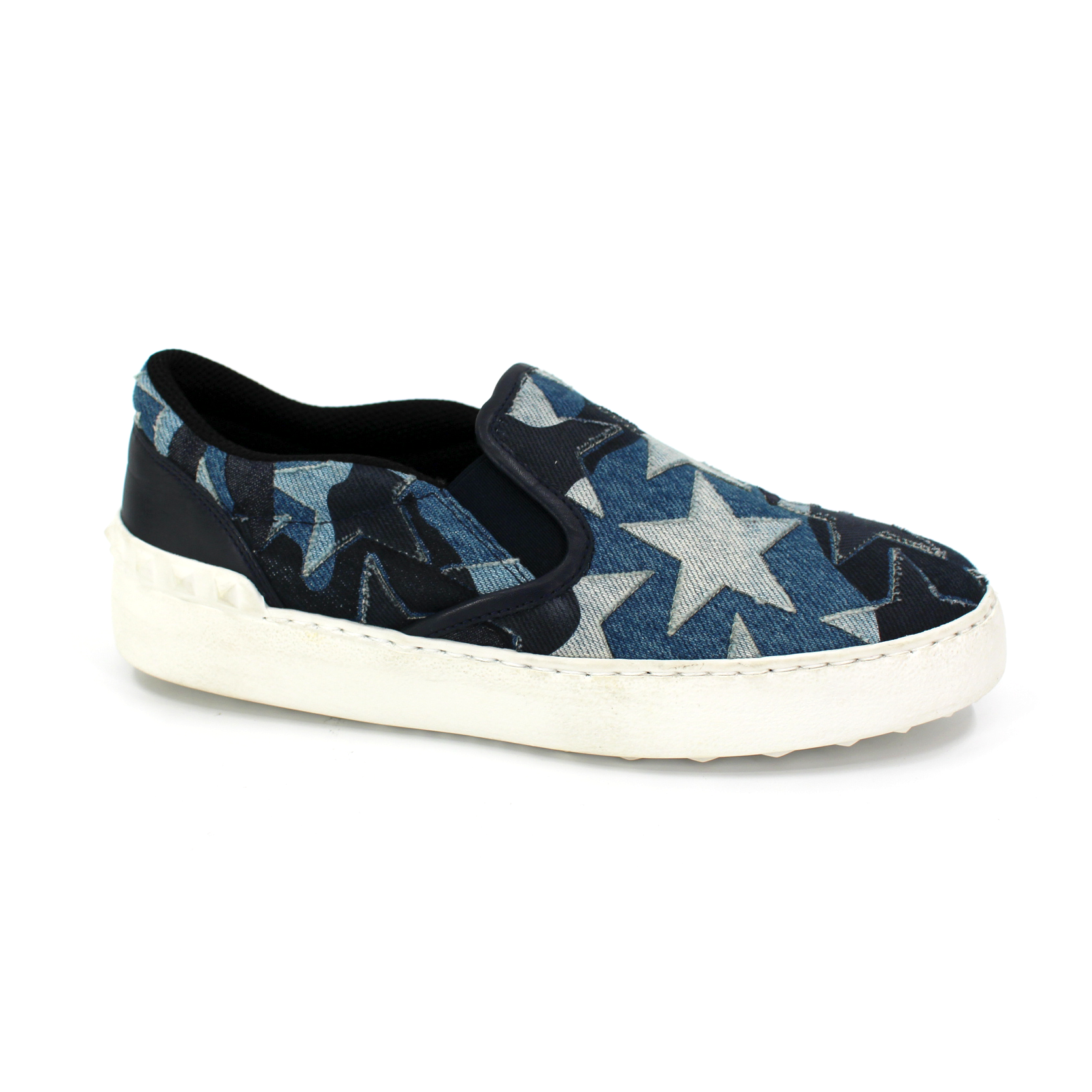 Valentino Garavani Blue Denim Star Print Patchwork Leather Skate Sneakers