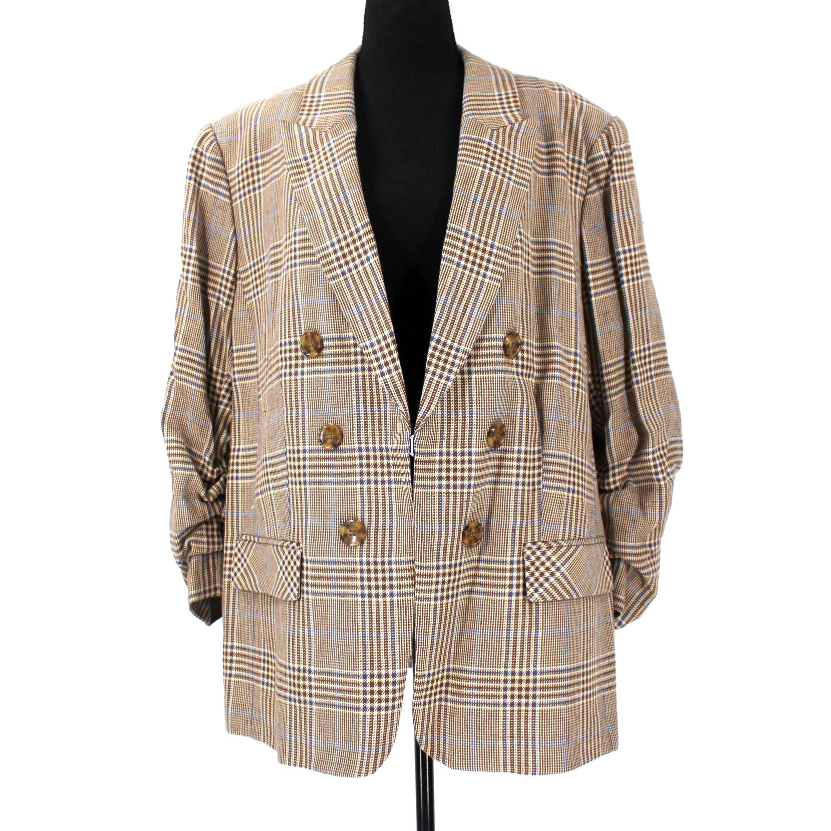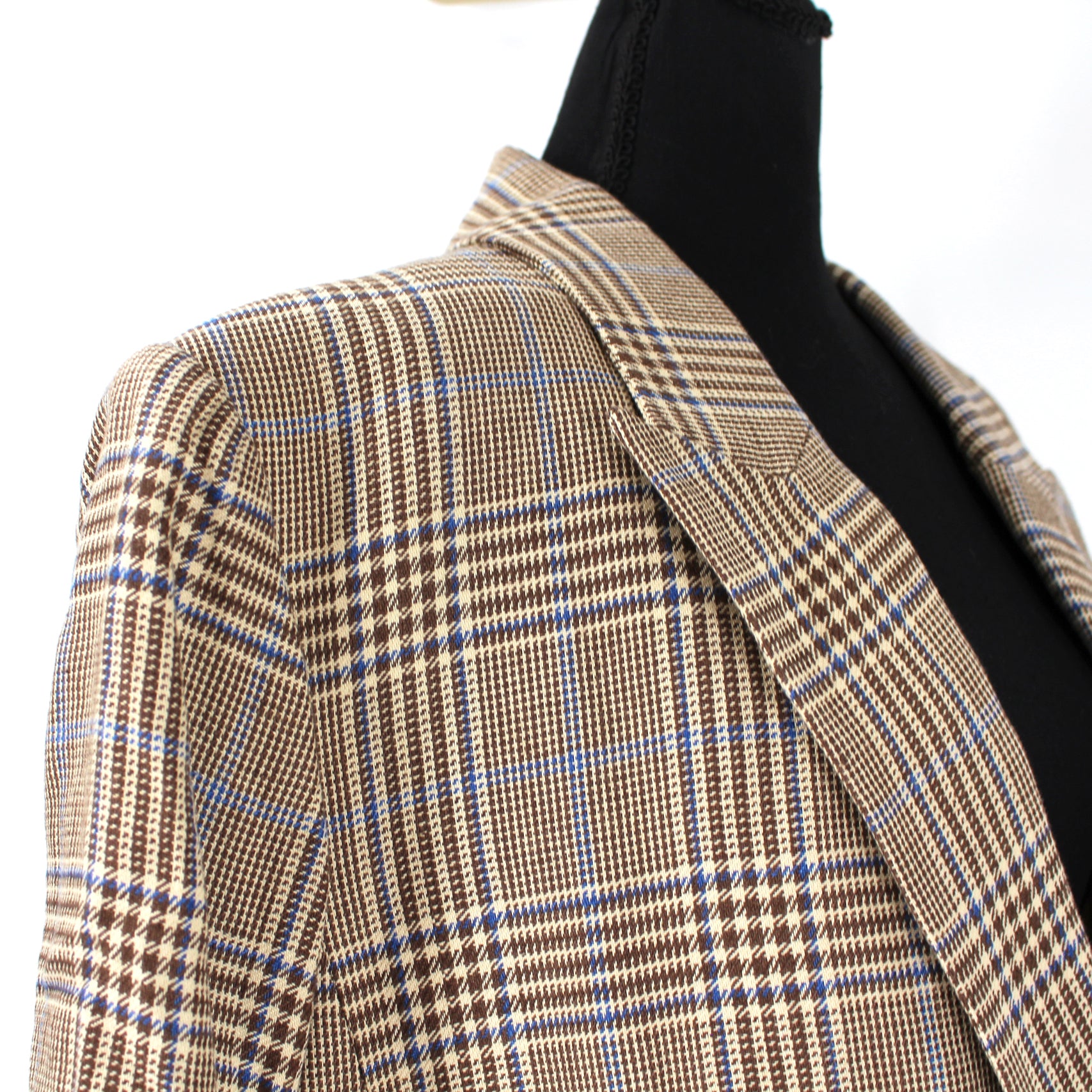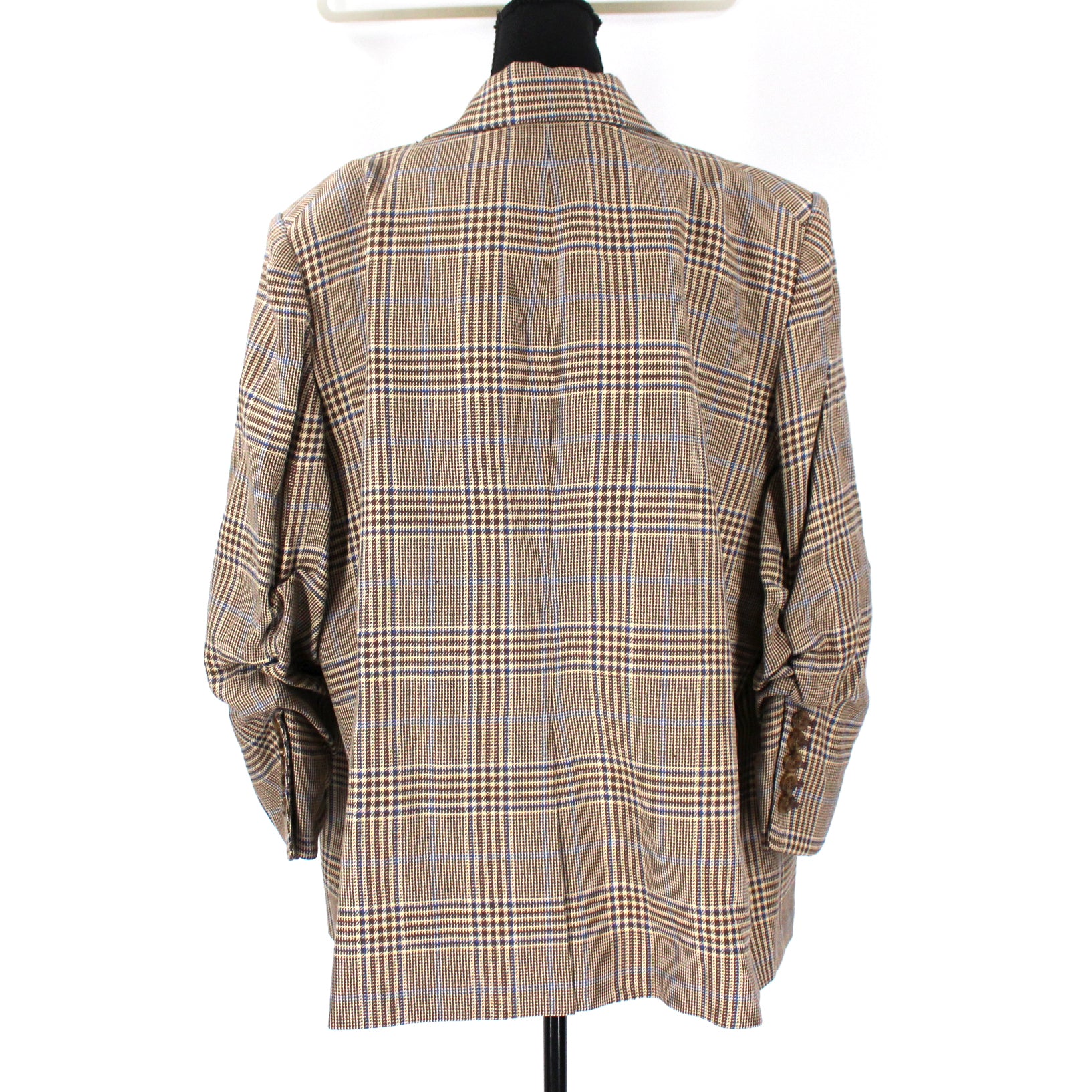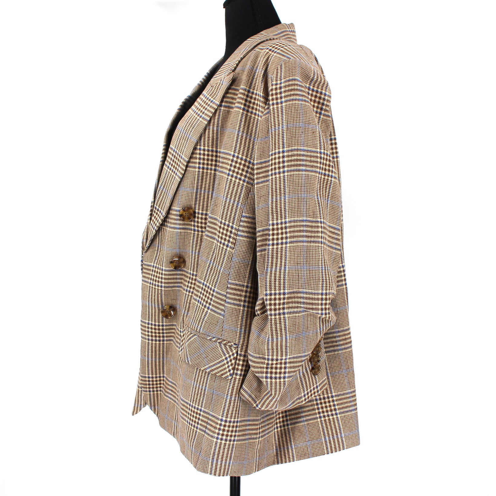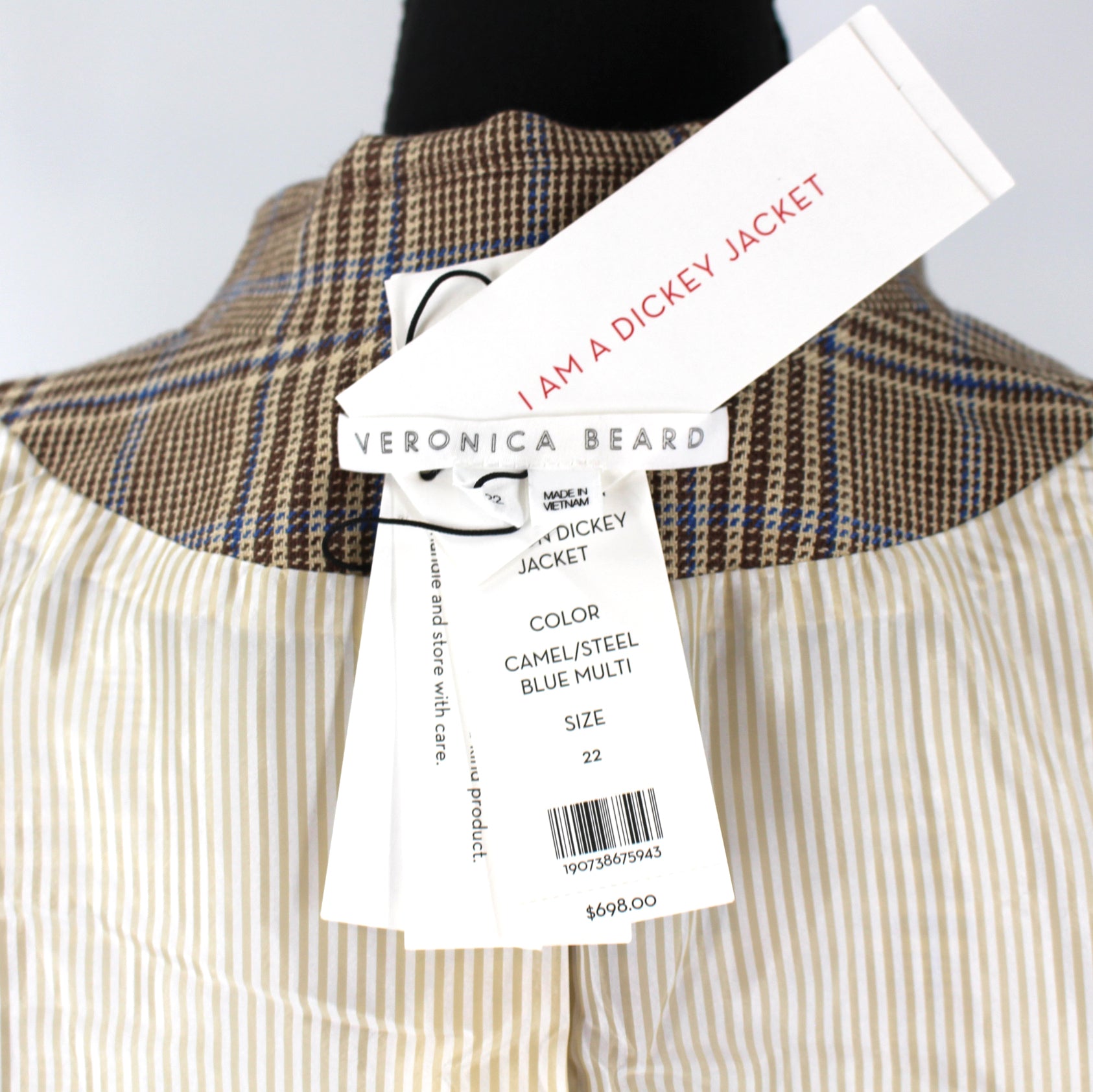 Veronica Beard Beacon Dickey Linen Blend Tan Plaid Blazer Jacket