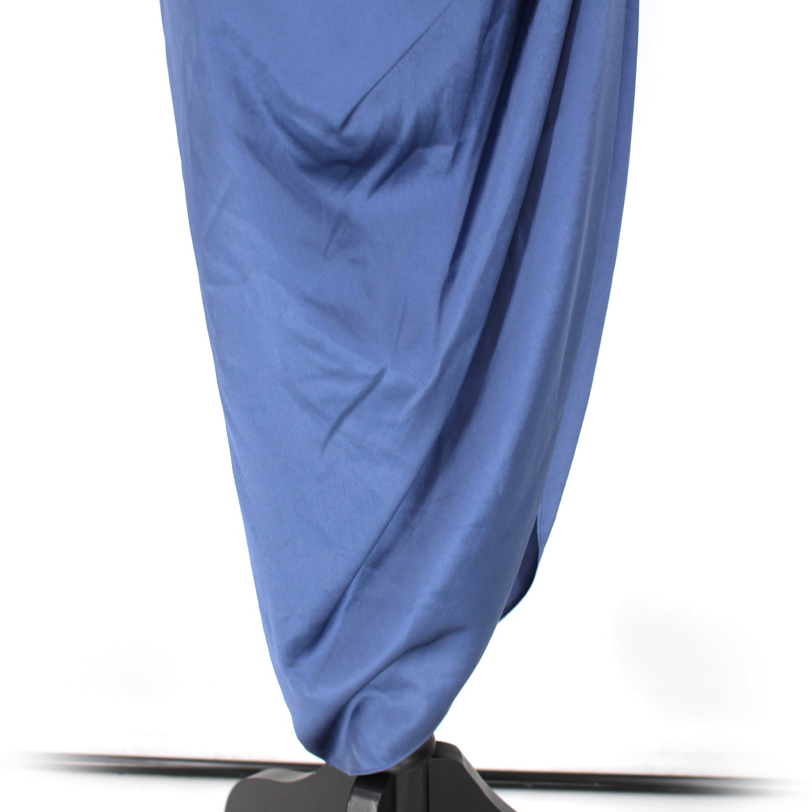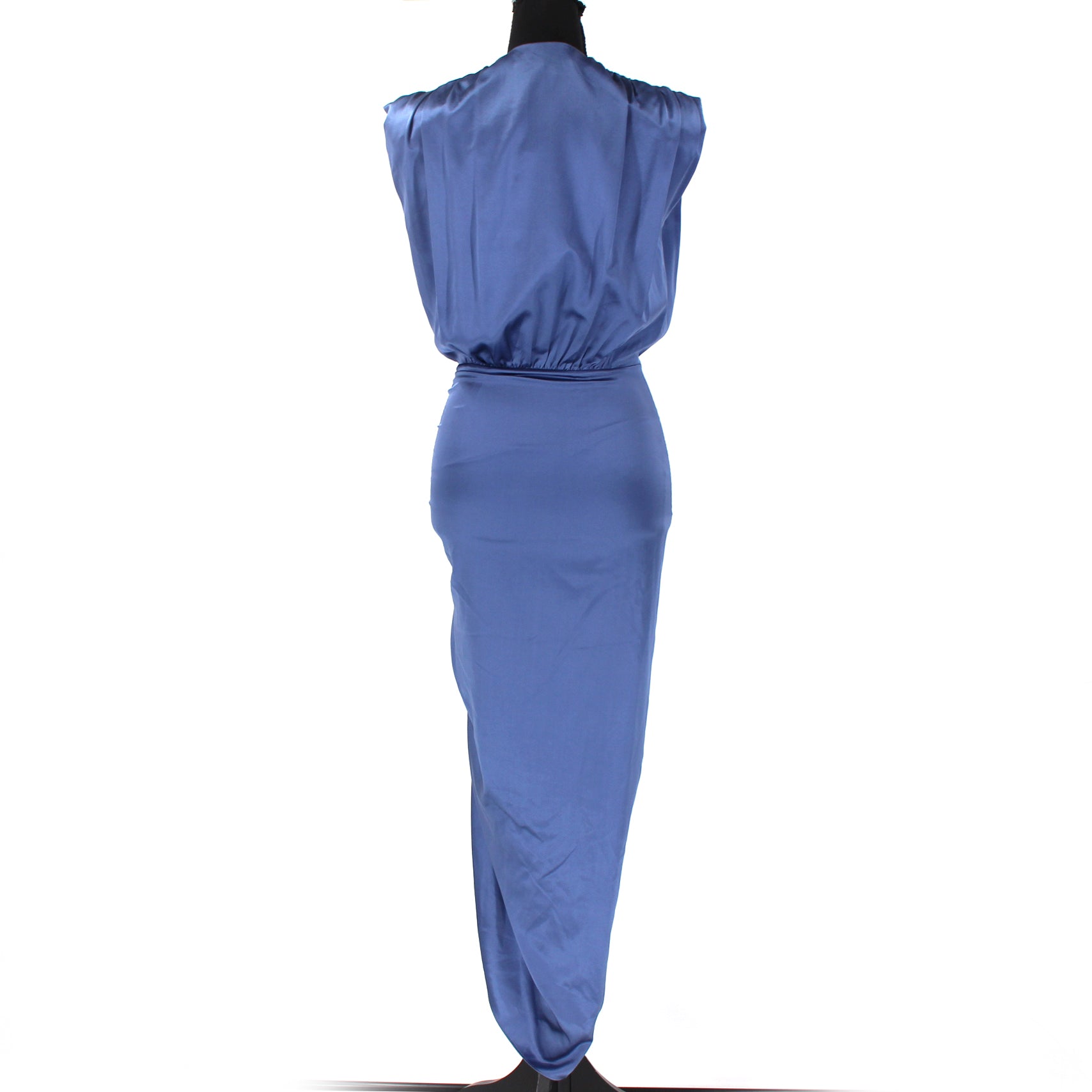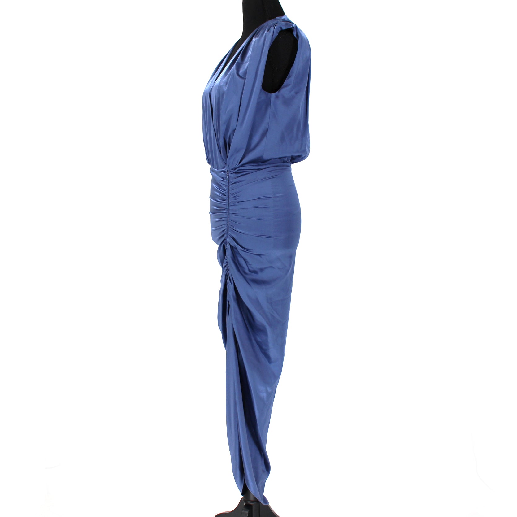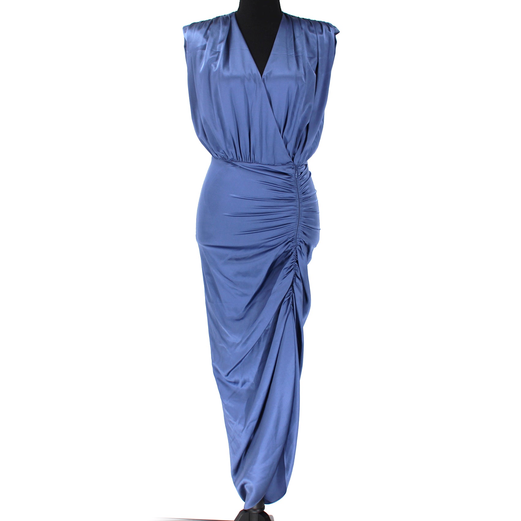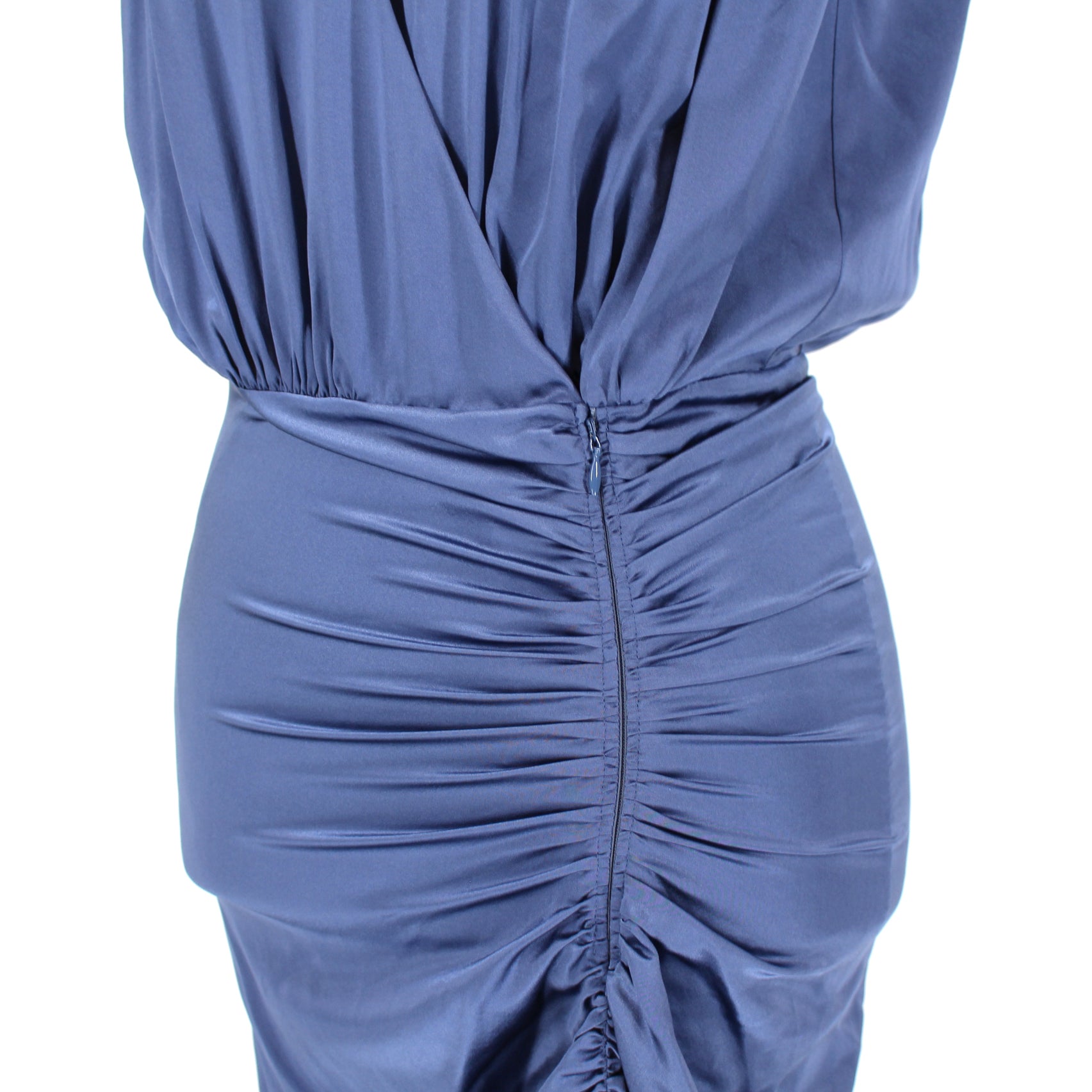 Veronica Beard Casela Steel Blue Silk Ruched Sleeveless V-Neck Midi Dress