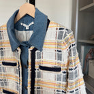 Veronica Beard Santiago Off White Plaid Frayed Detail Denim Trim Jacket