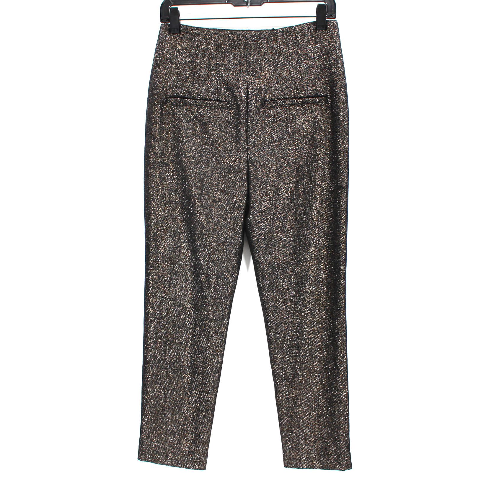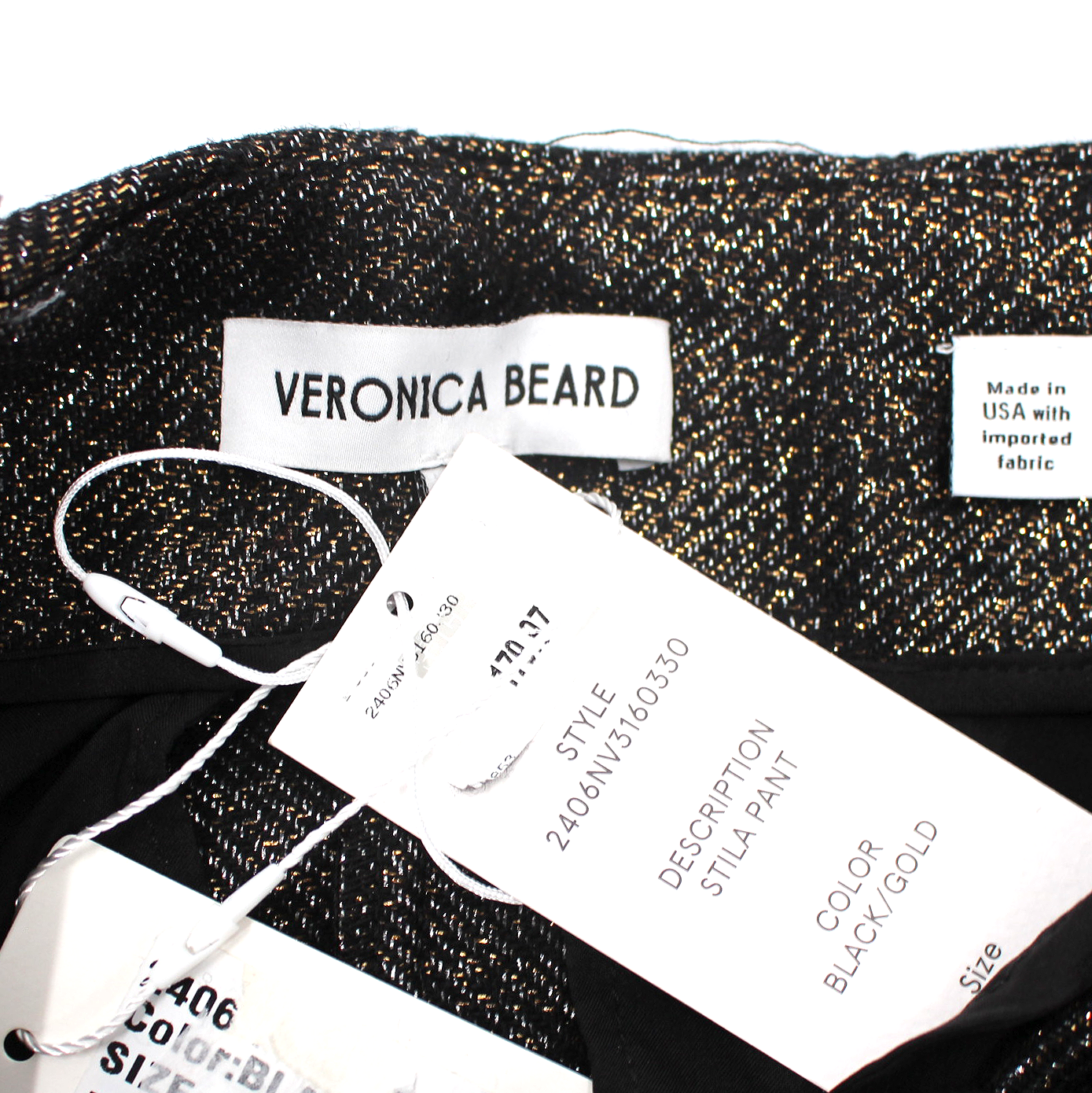 Veronica Beard Stila Metallic Gold Black Trouser Pants Cropped Straight Leg.