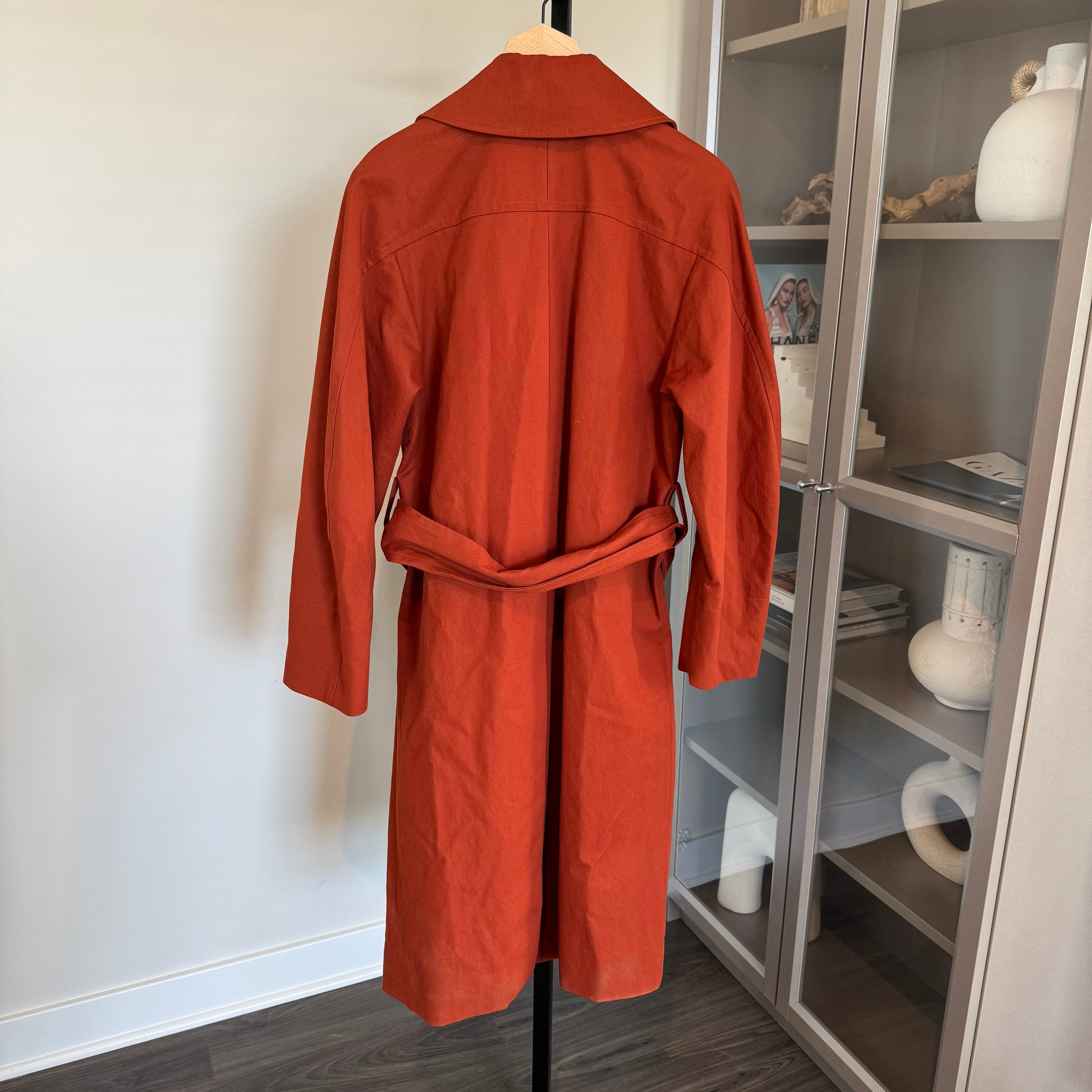 VINCE. Rust Amber Long Belted Cotton Nylon Trench Coat