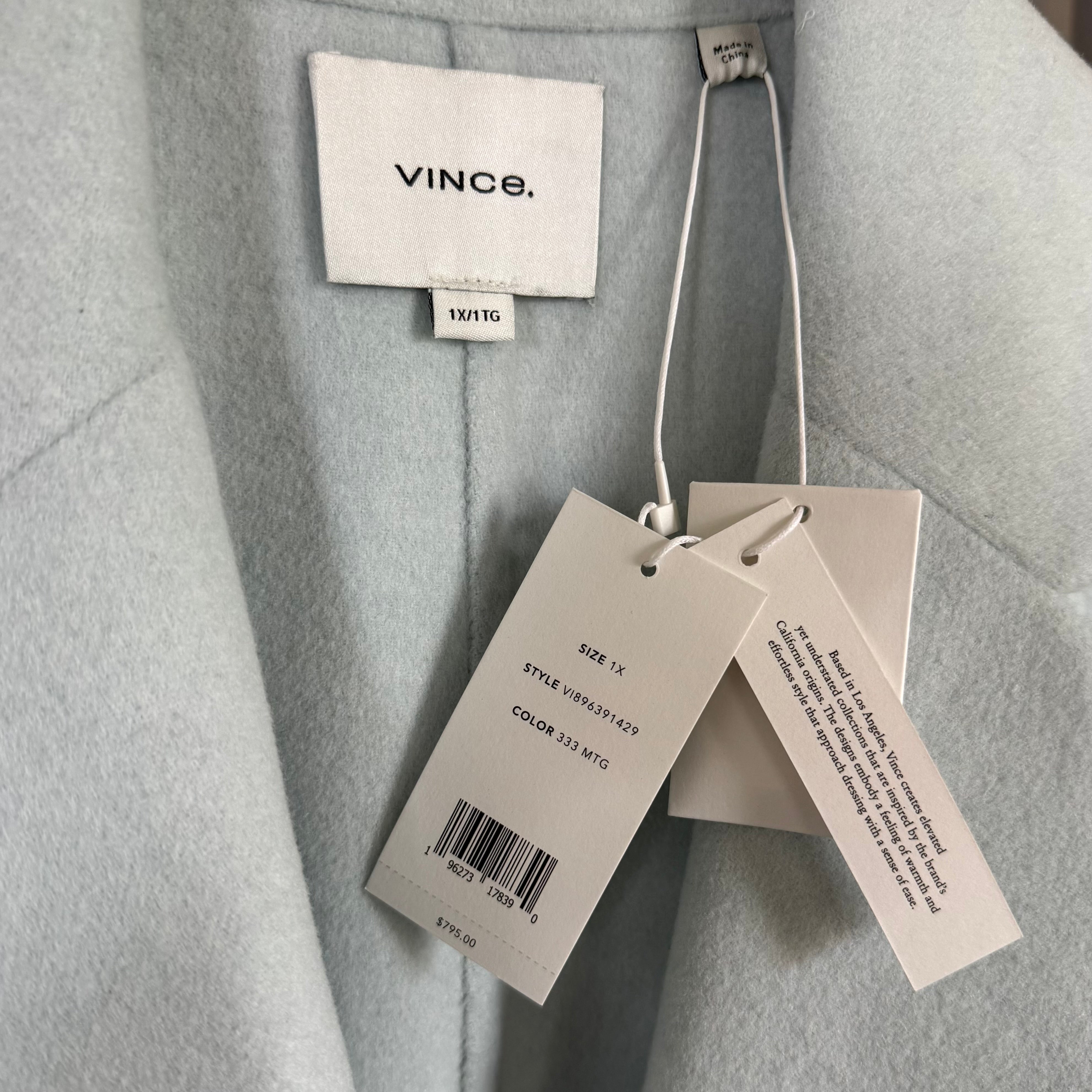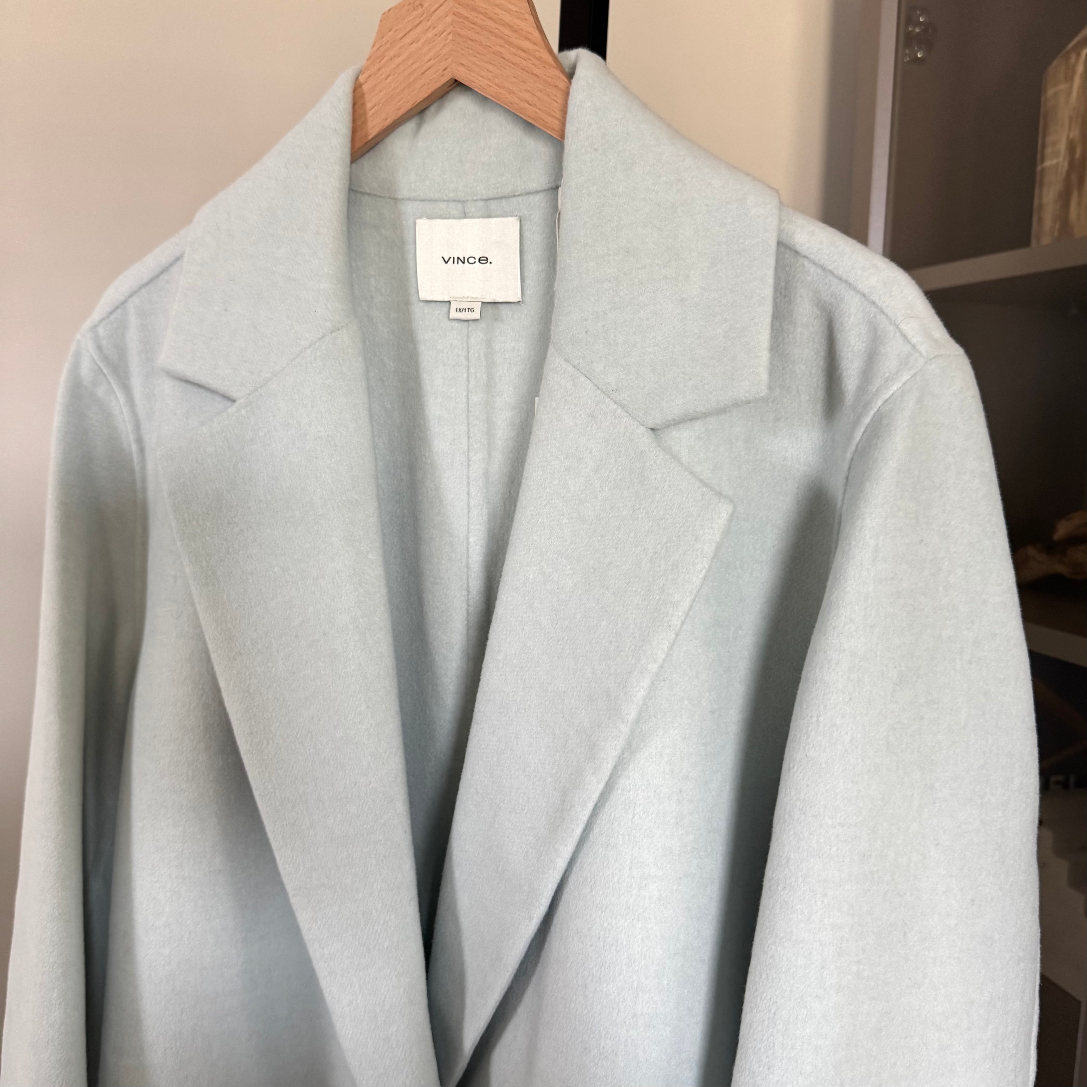 Vince Brushed Wool Long Mint Glass Blue One Button Long Overcoat