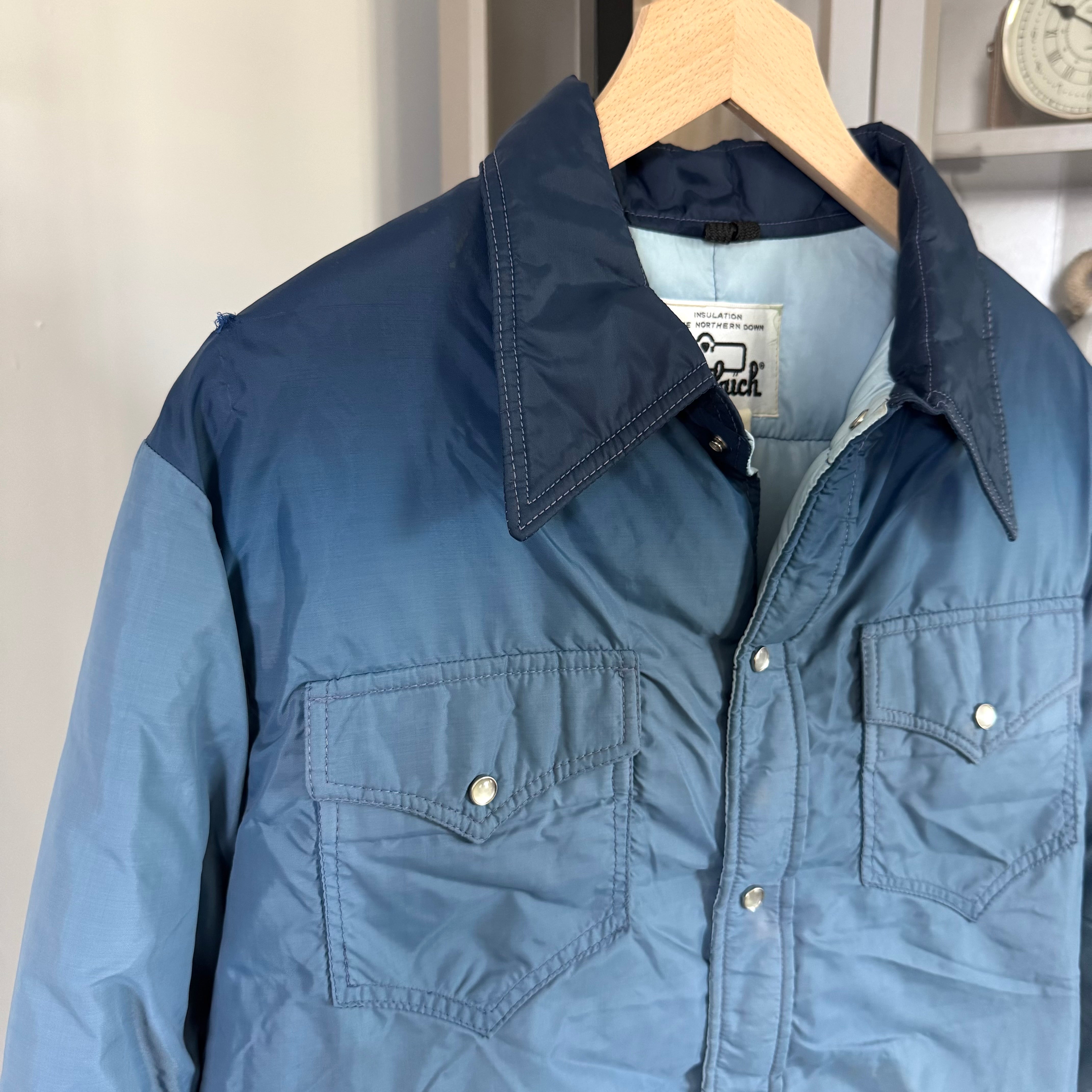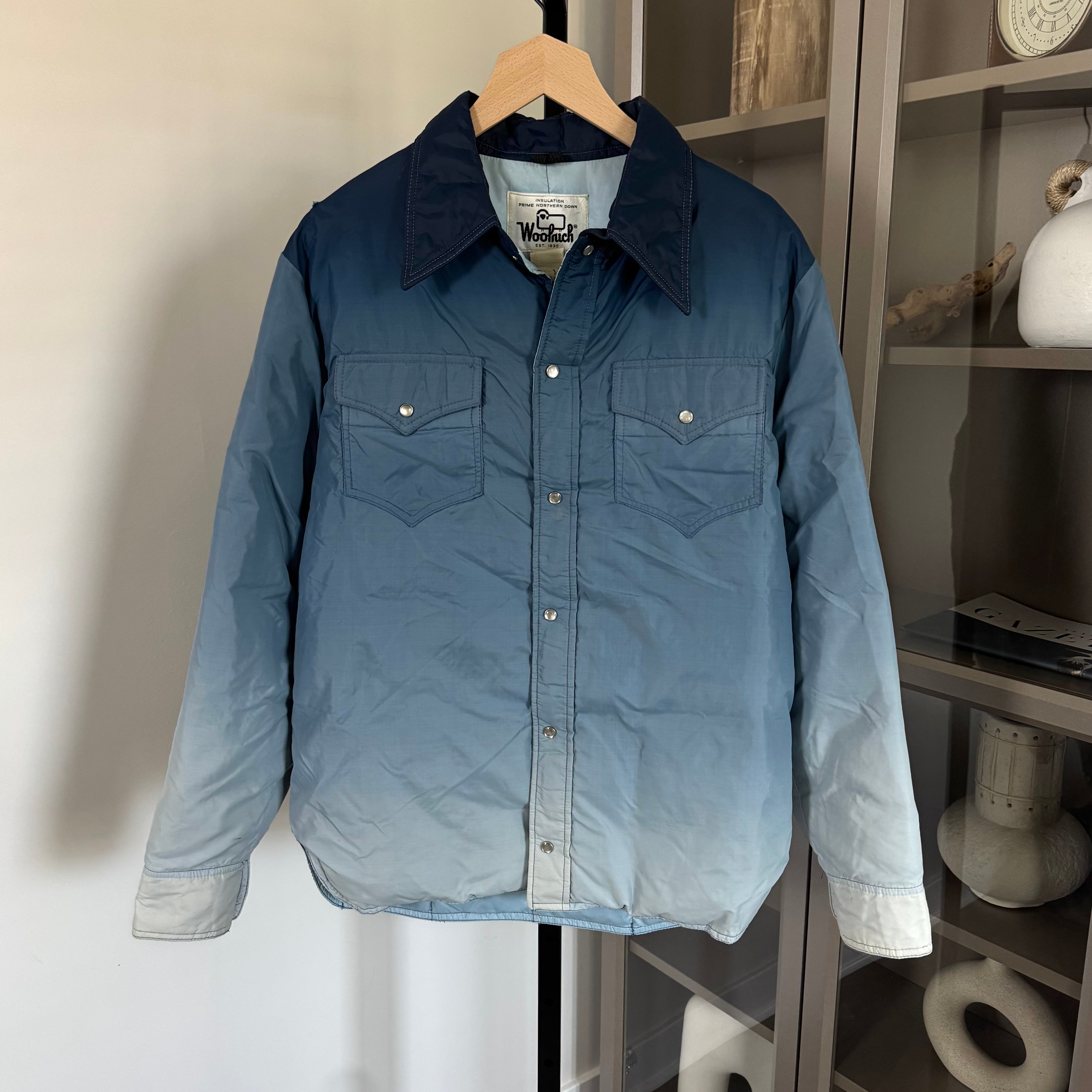 Men’s Woolrich Nylon Down Filled Blue Ombre Pearl Snap Shacket