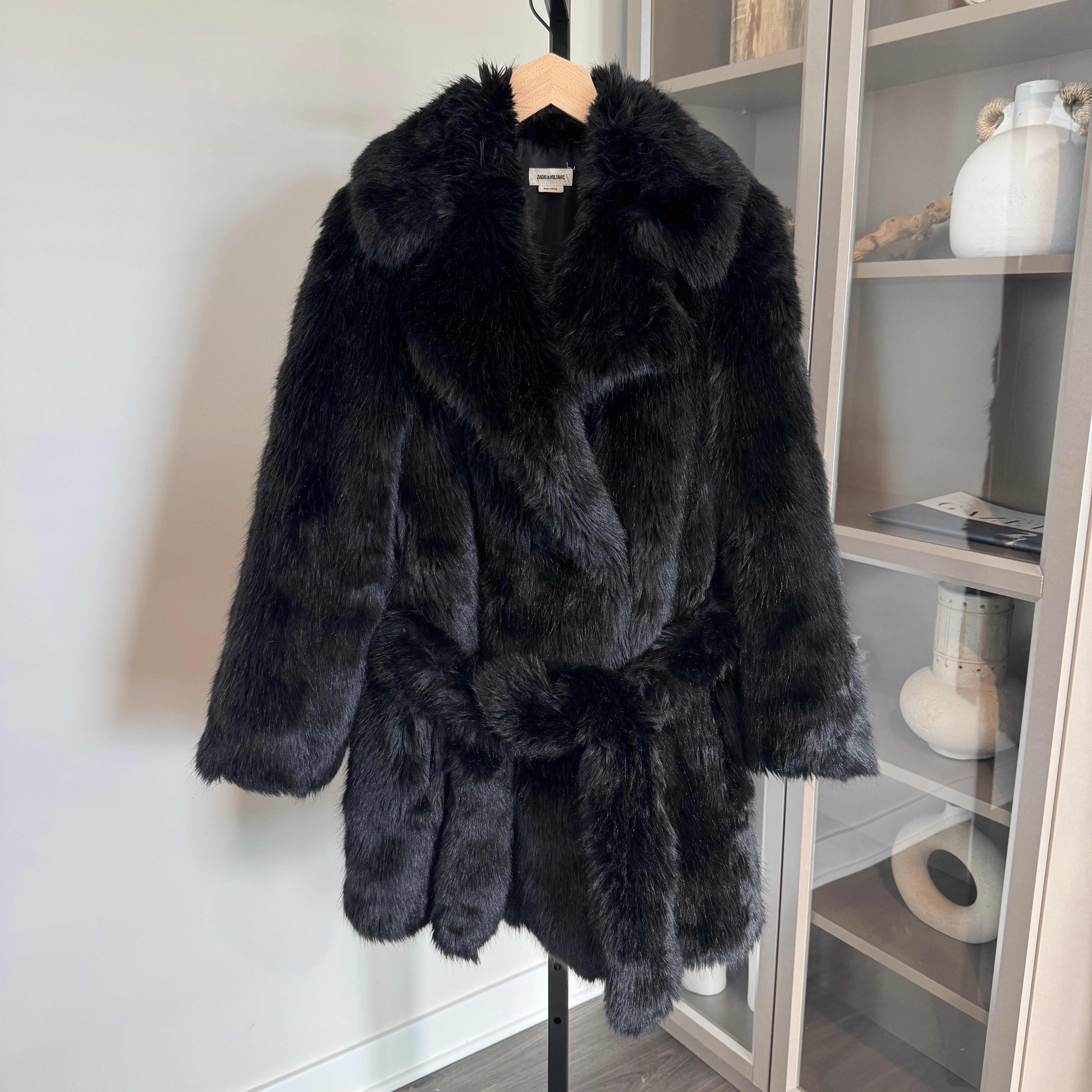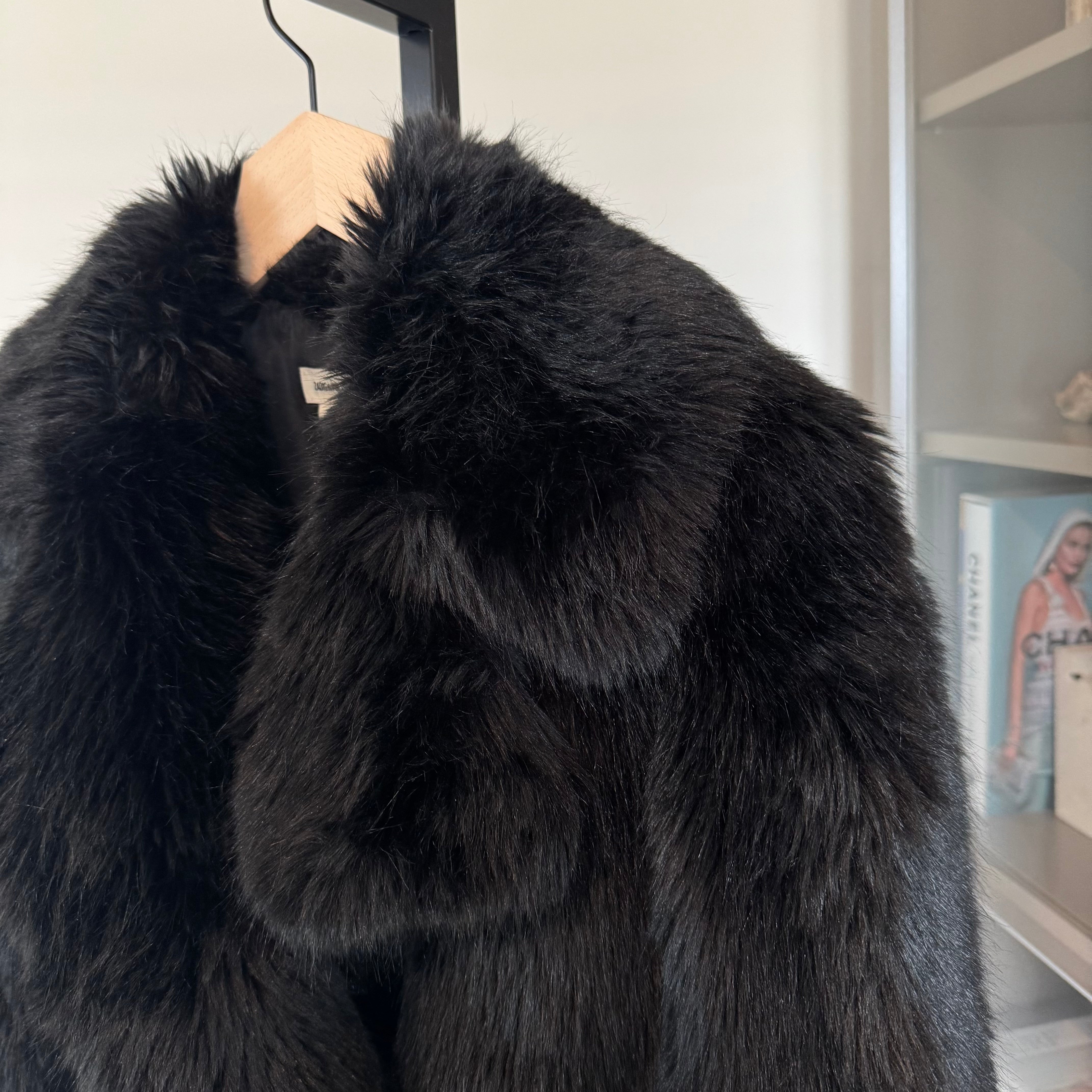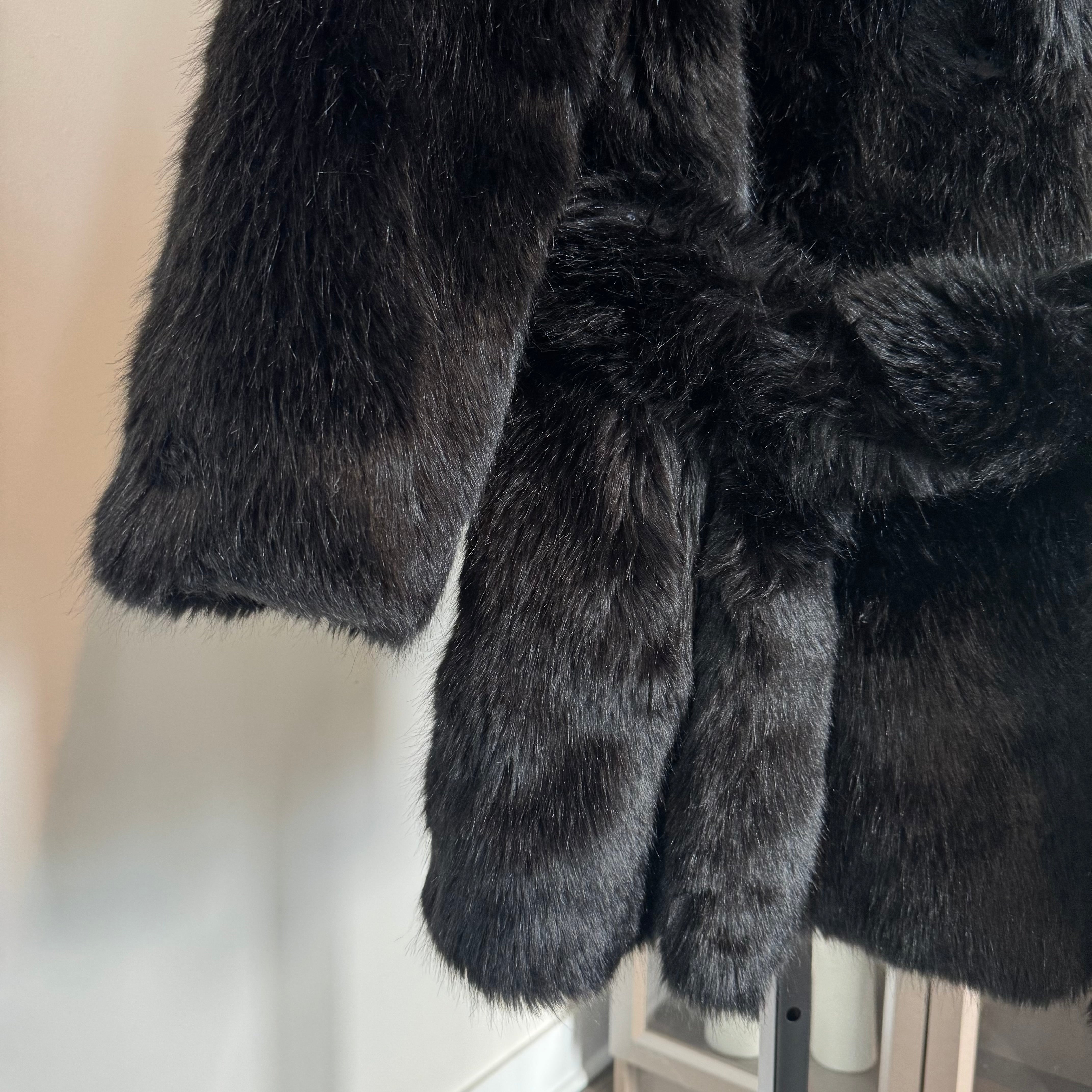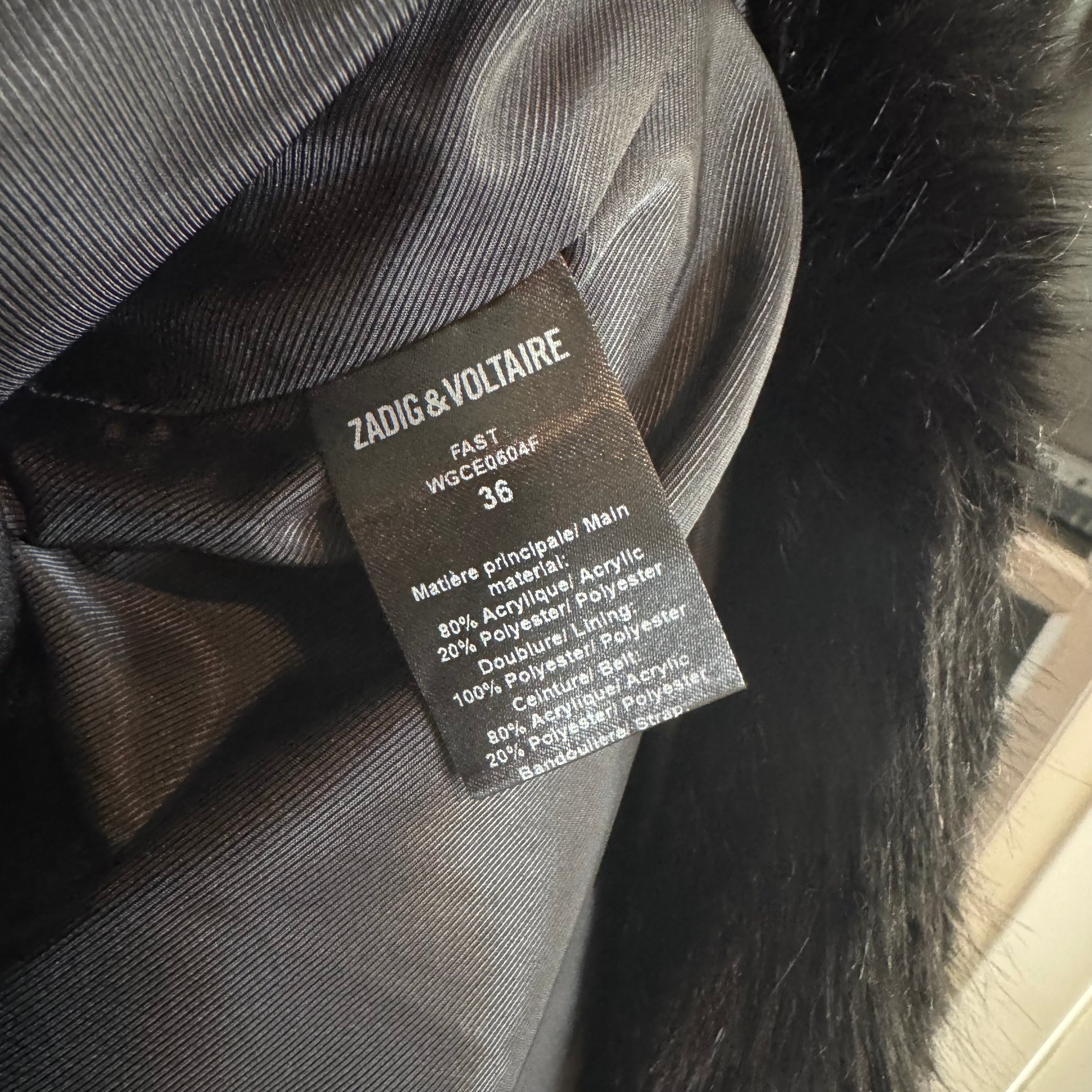 Zadig & Voltaire Fast Black Faux Fur Double Breasted Belted Coat