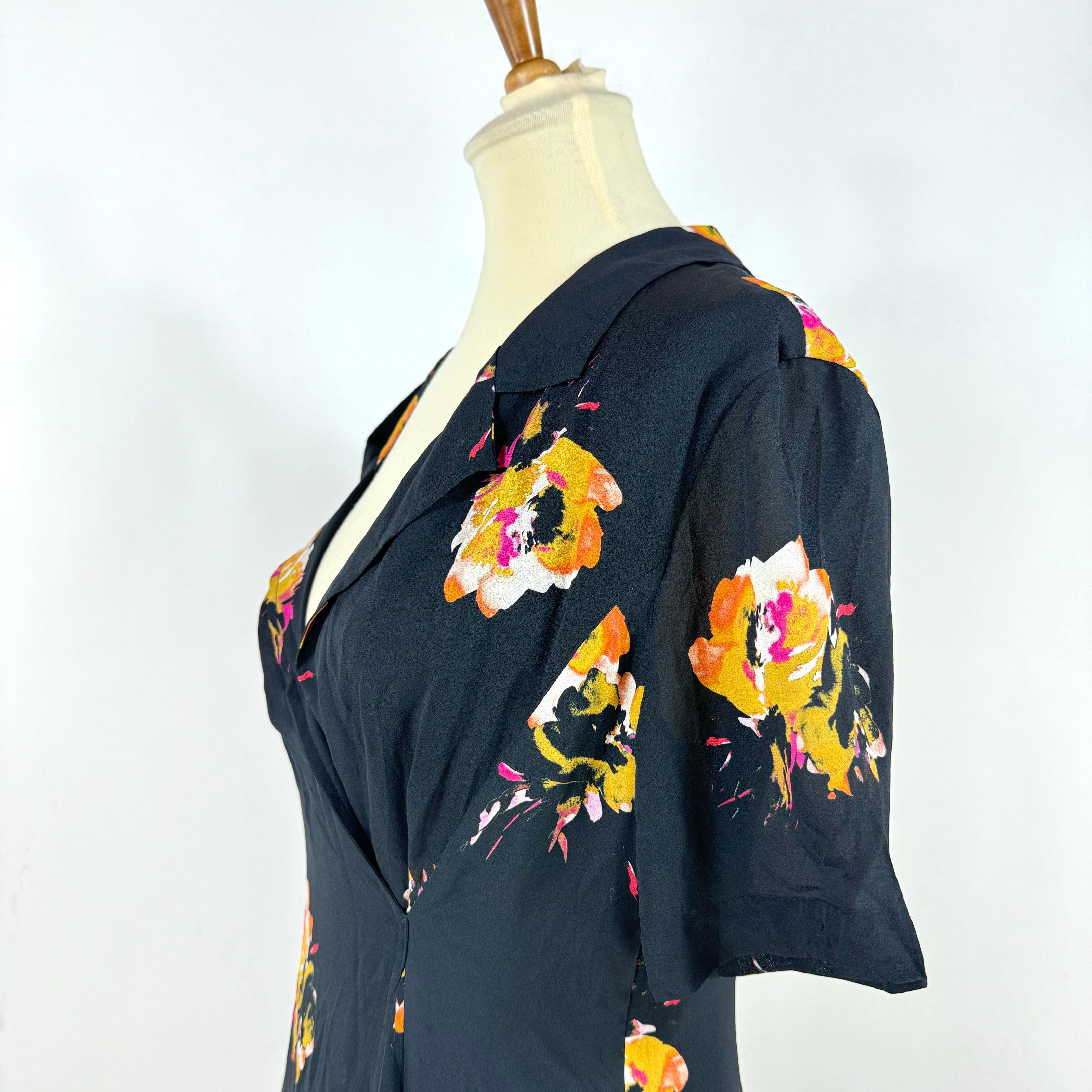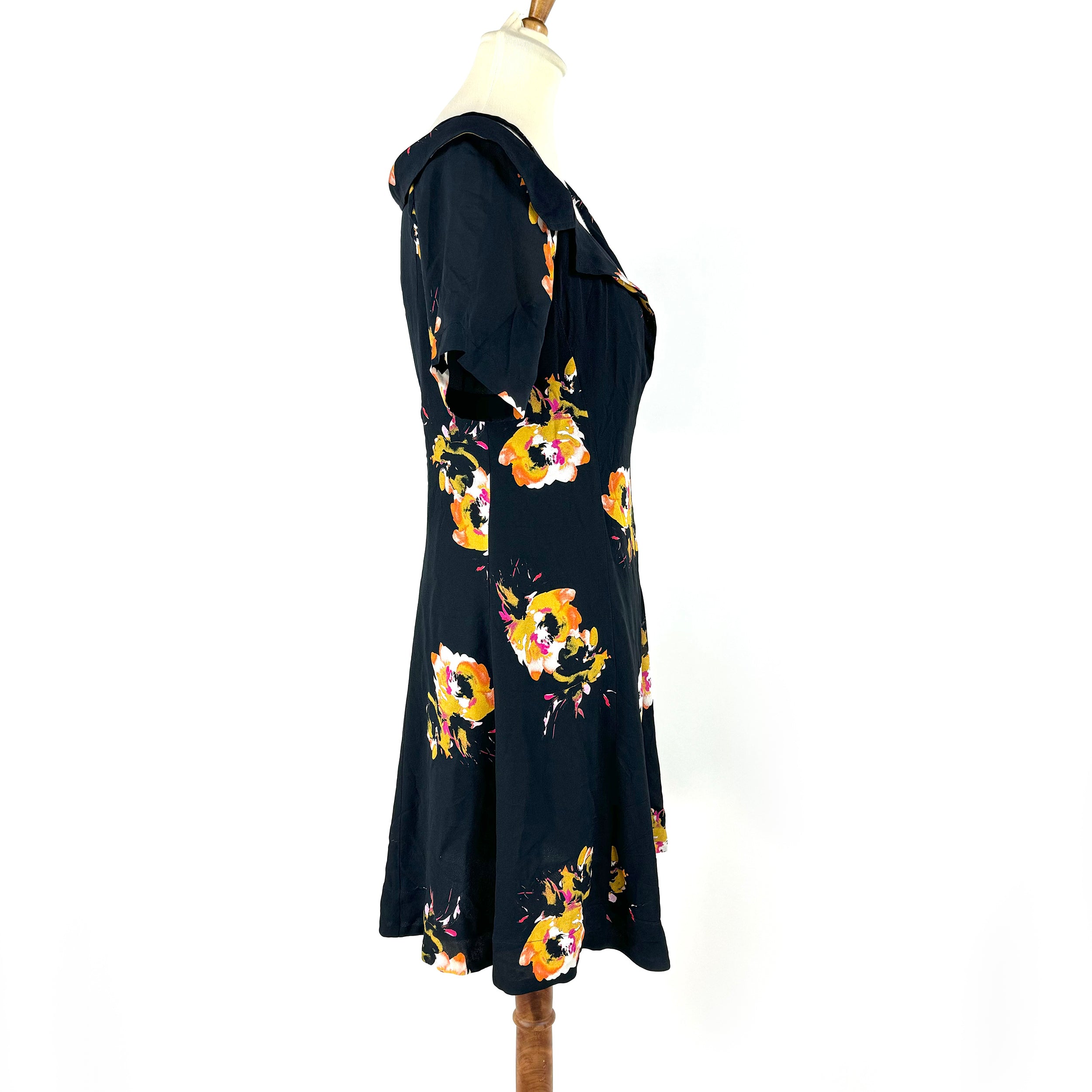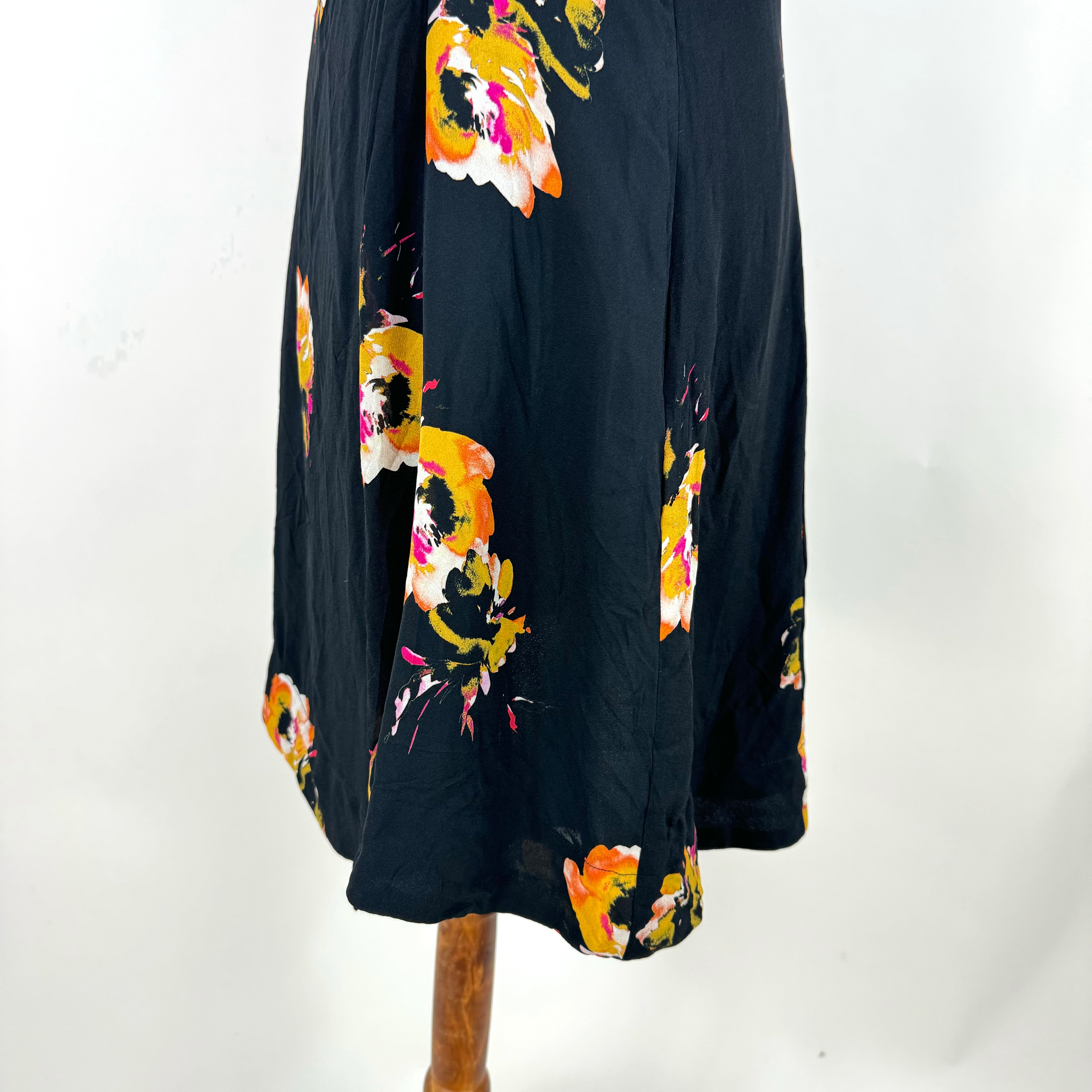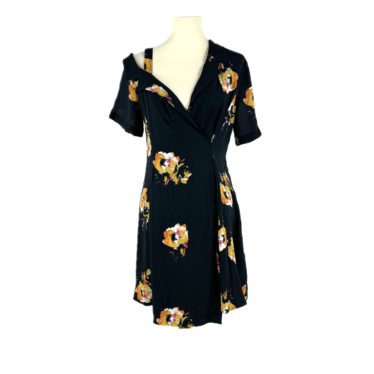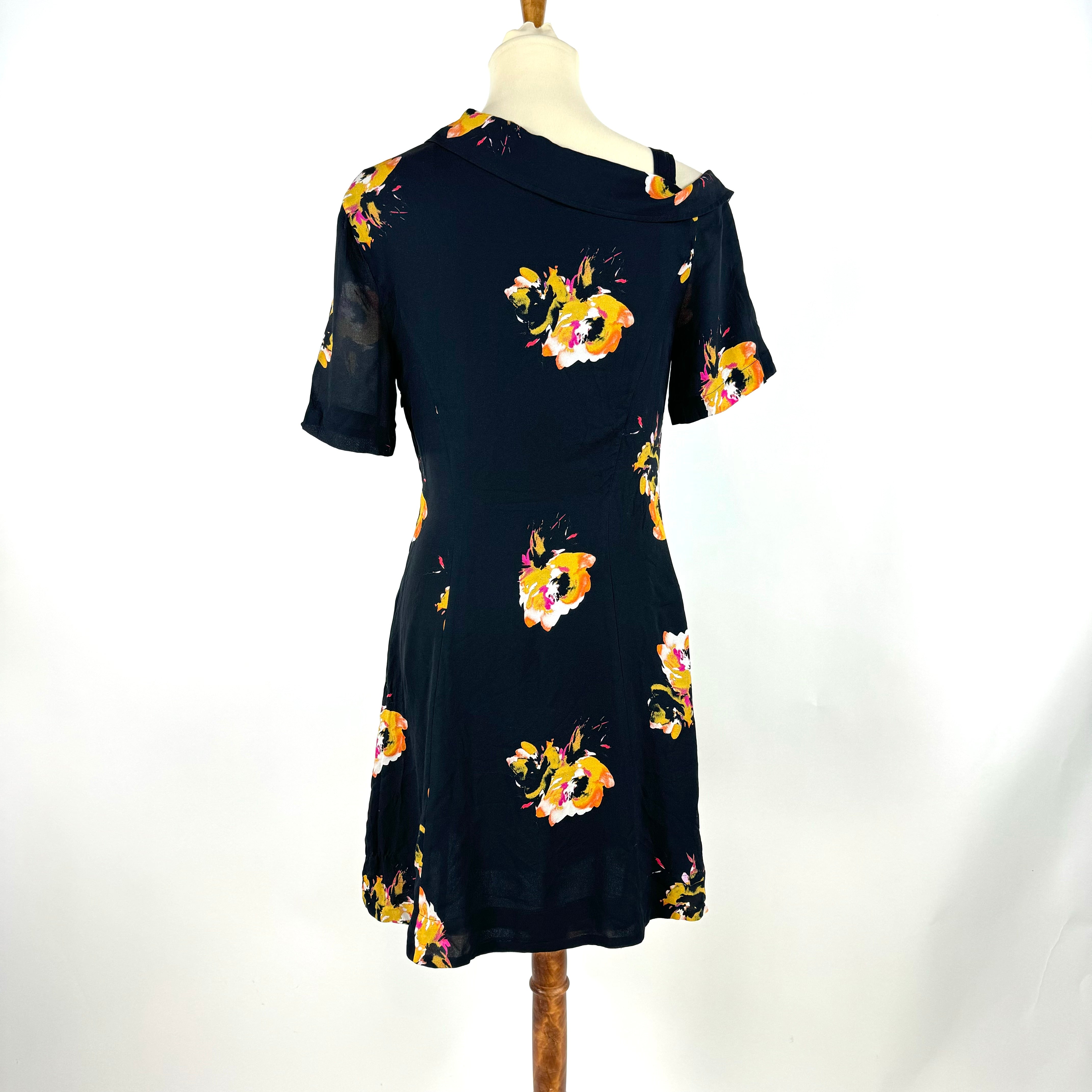 A.L.C. Lucia Black Silk Floral Print Cold Shoulder Mini Dress