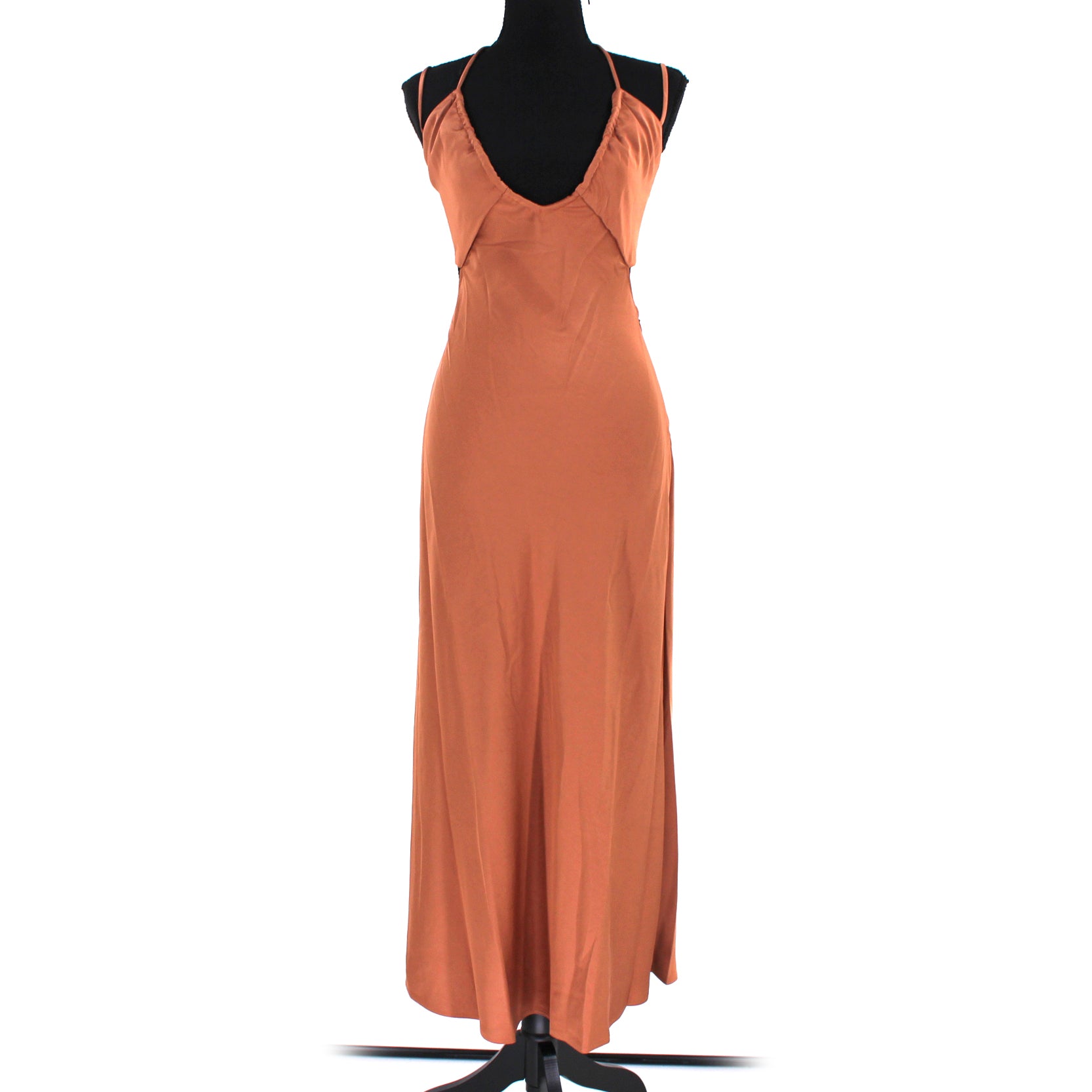A.L.C. Sienna Halter Neck Strappy Rawhide Tan Satin Slip Midi Dress