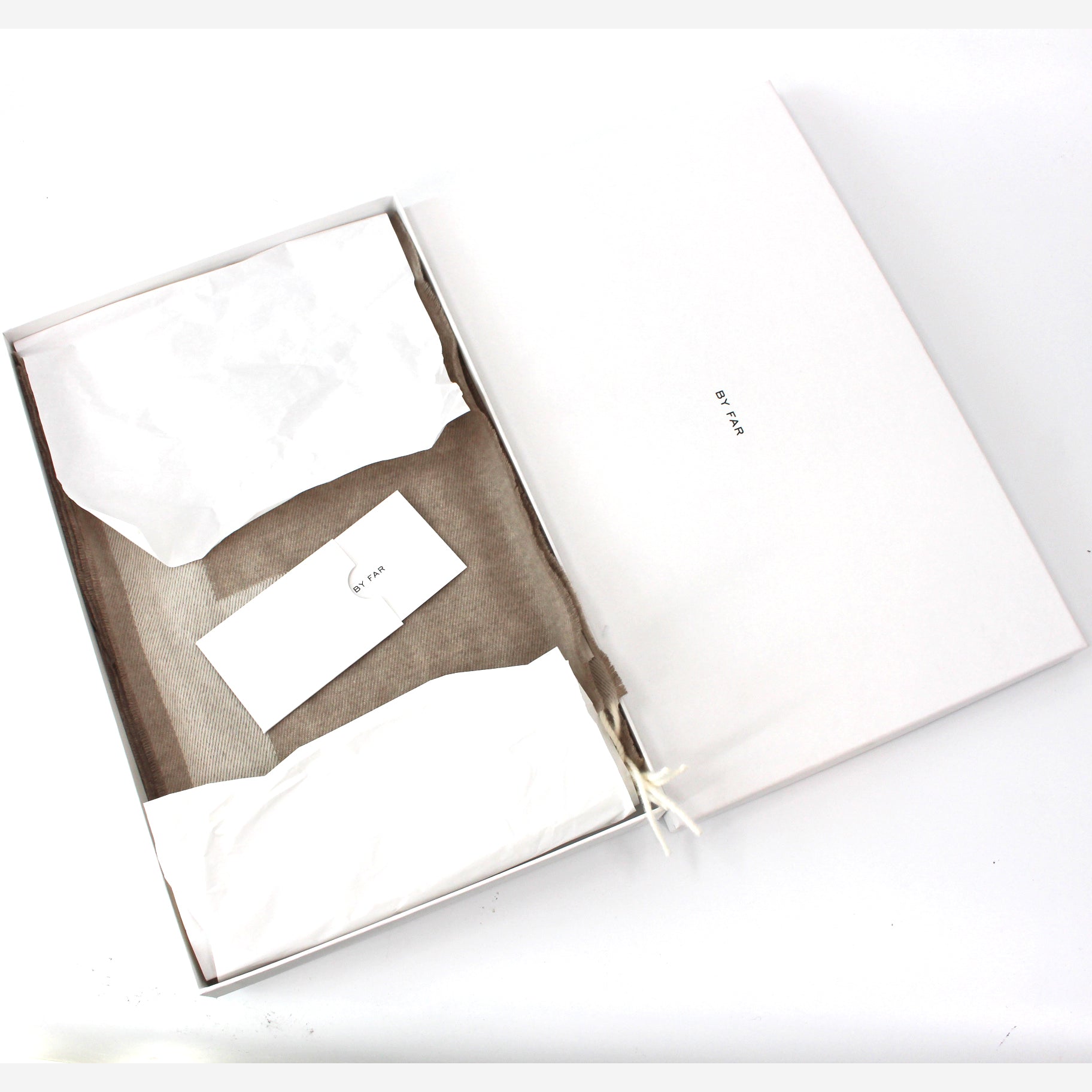 - Tan scarf with BF Monogram in cream