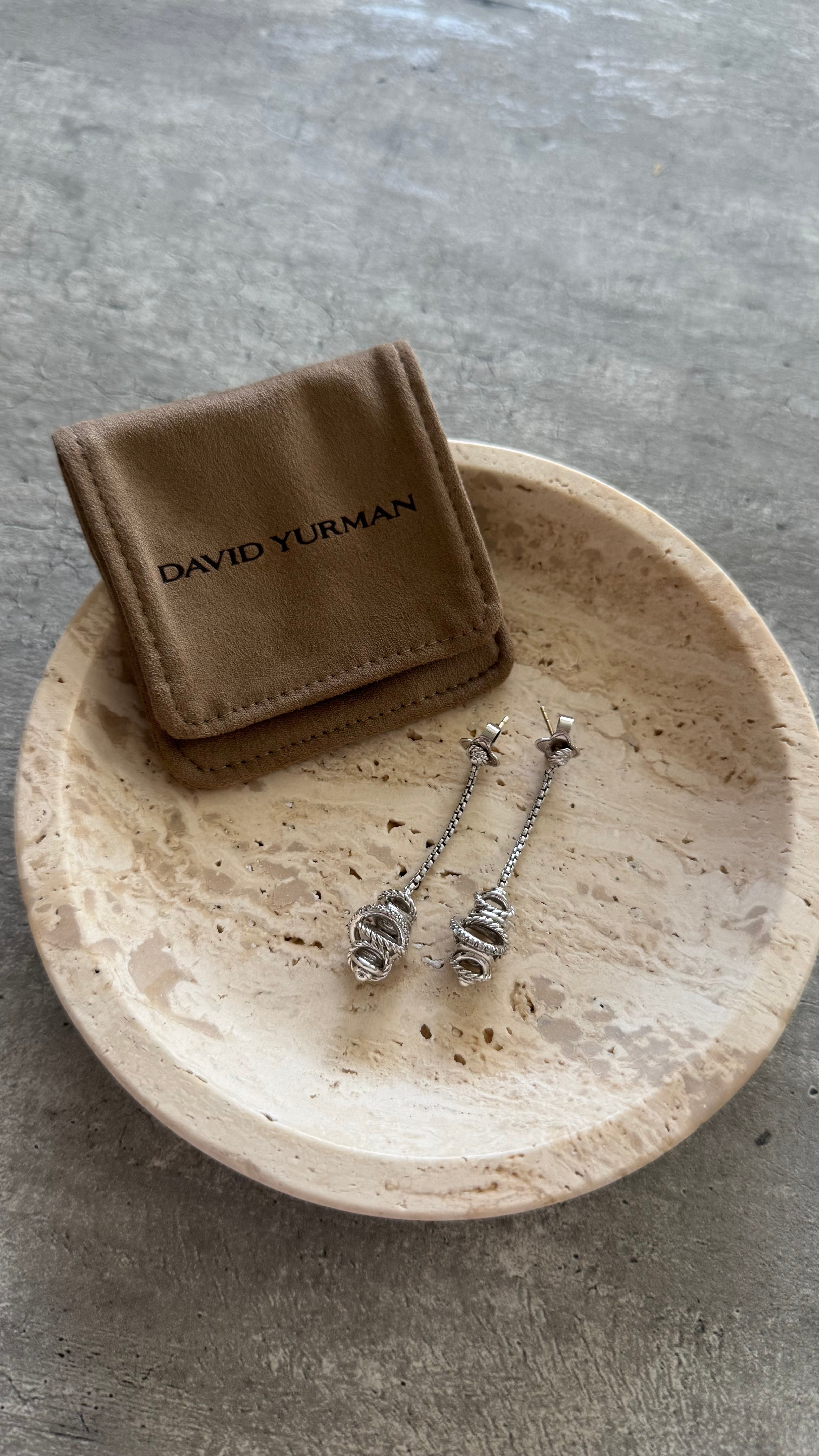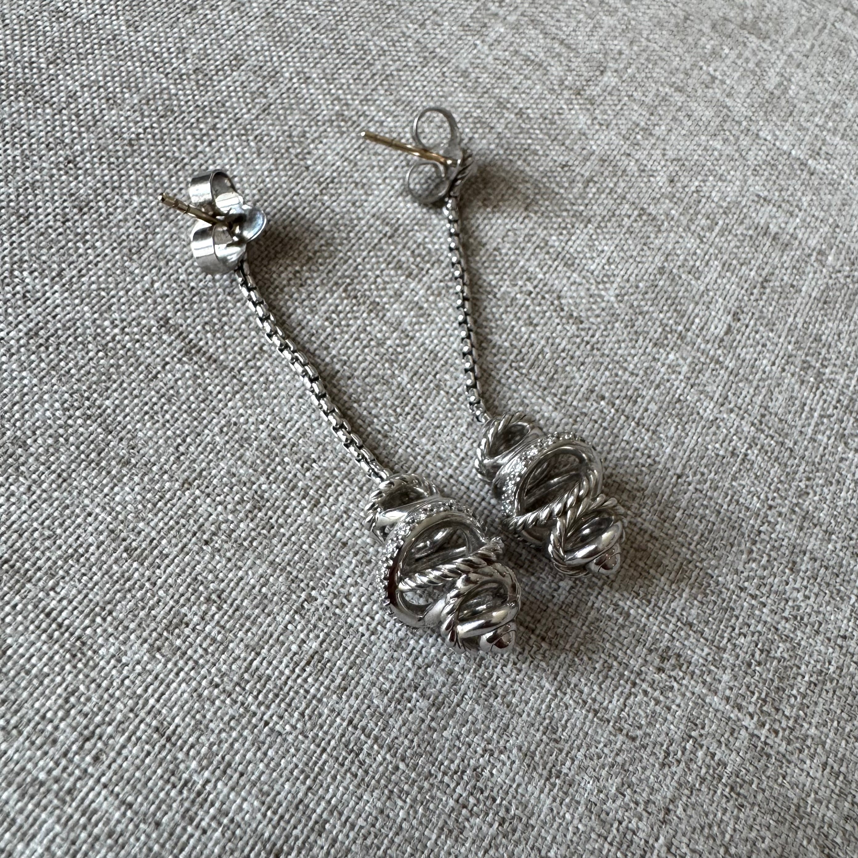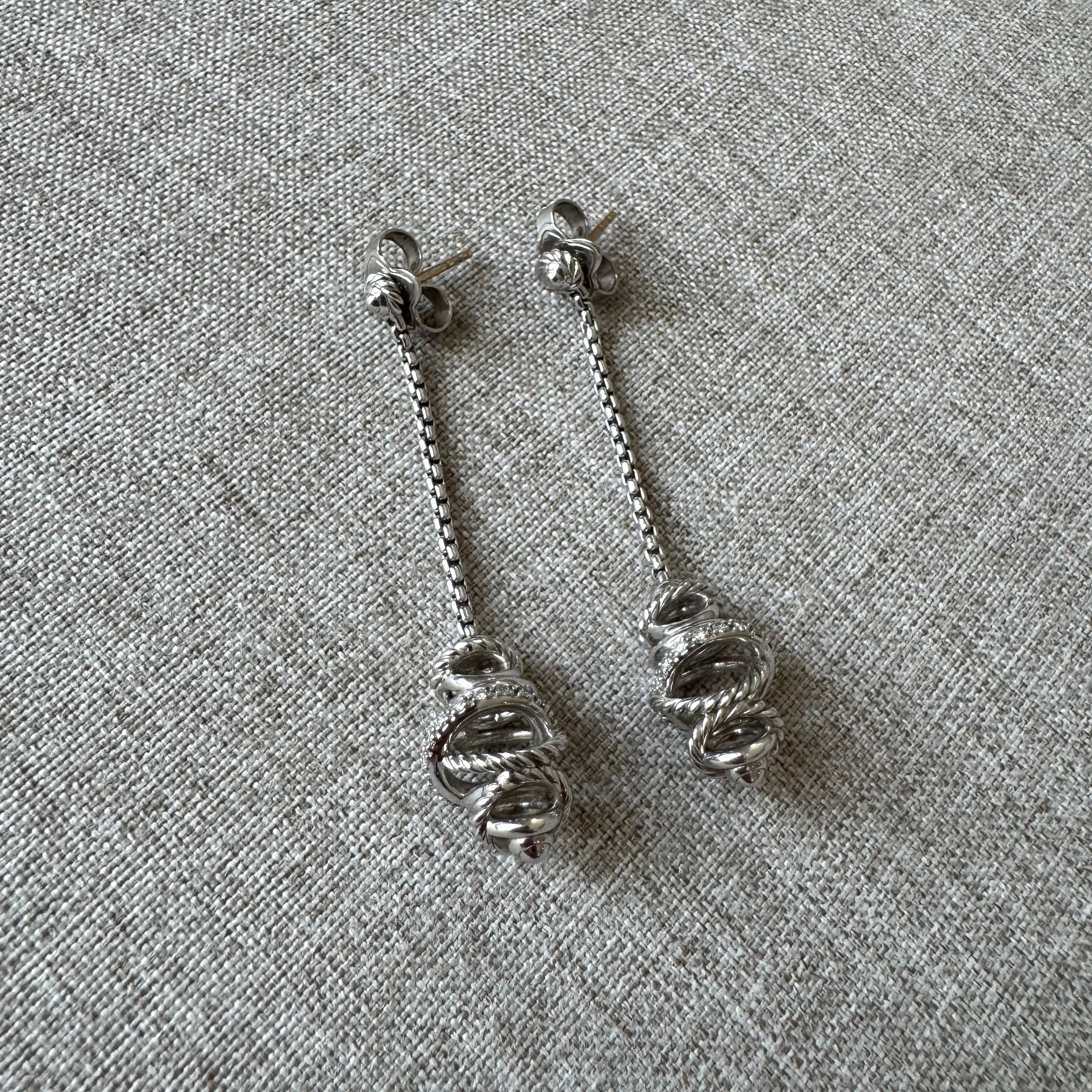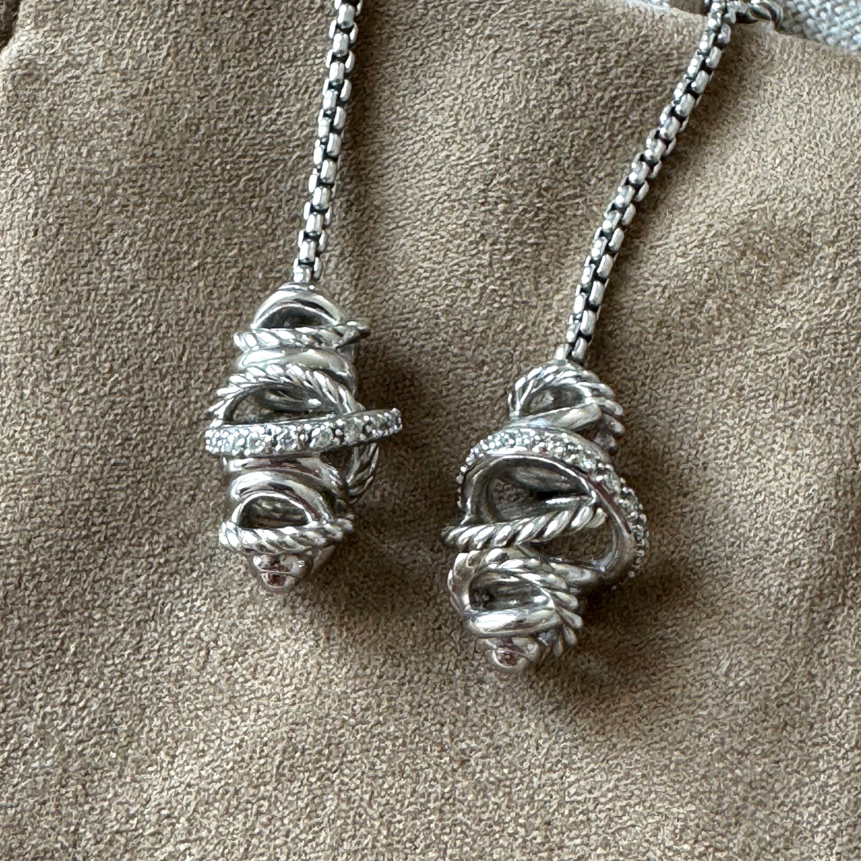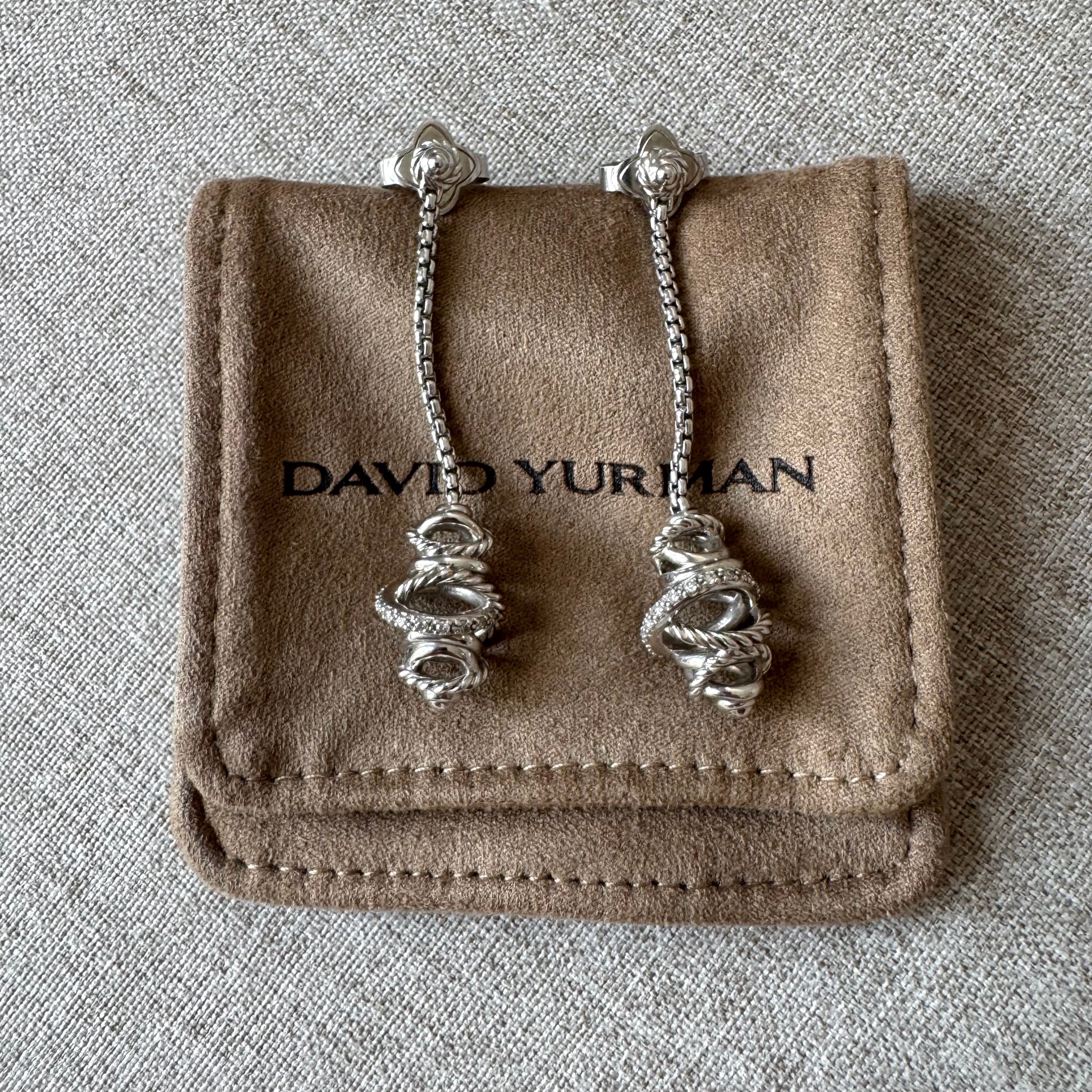 David Yurman Sterling Silver Diamond Chain Drop Sphere Pierced Earrings