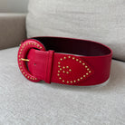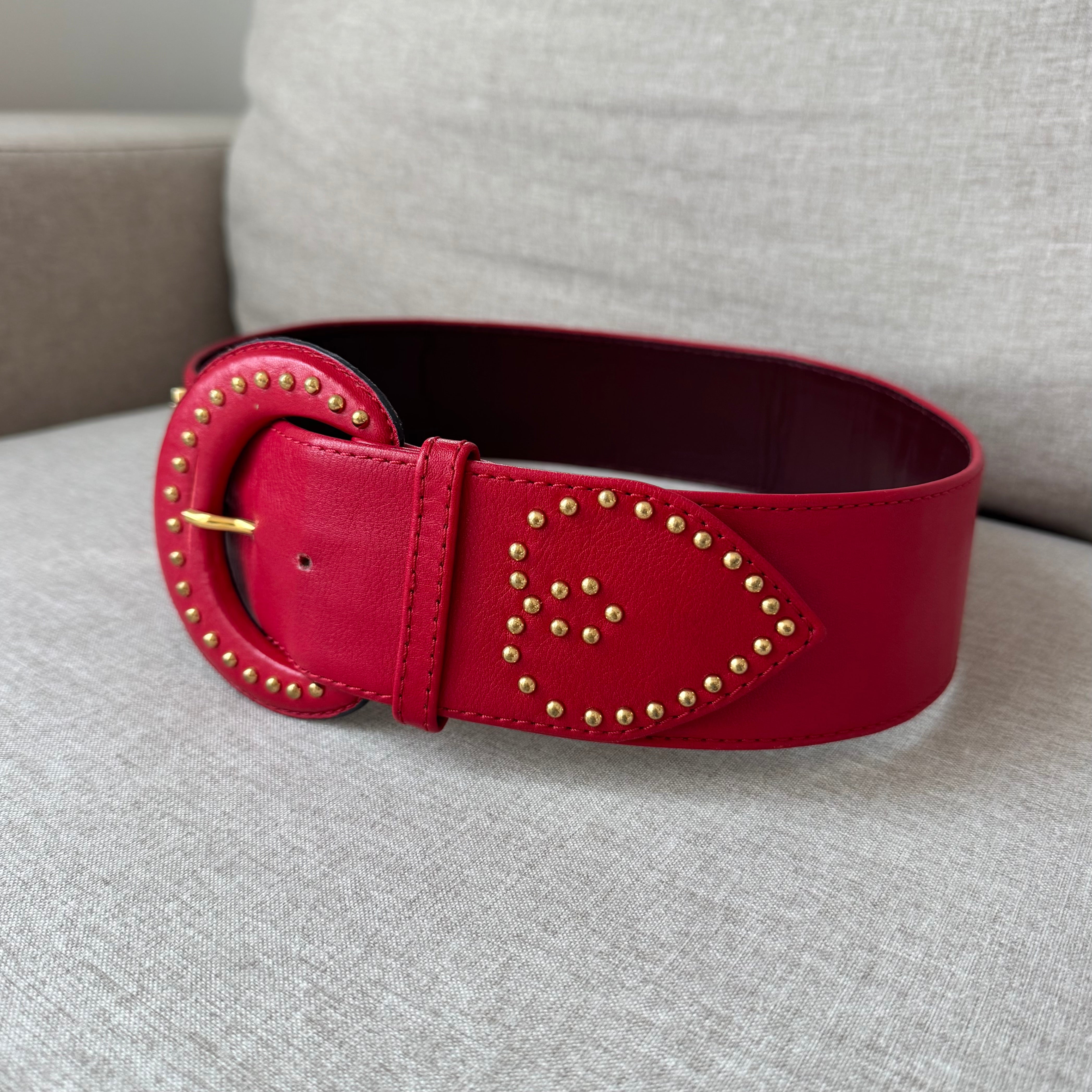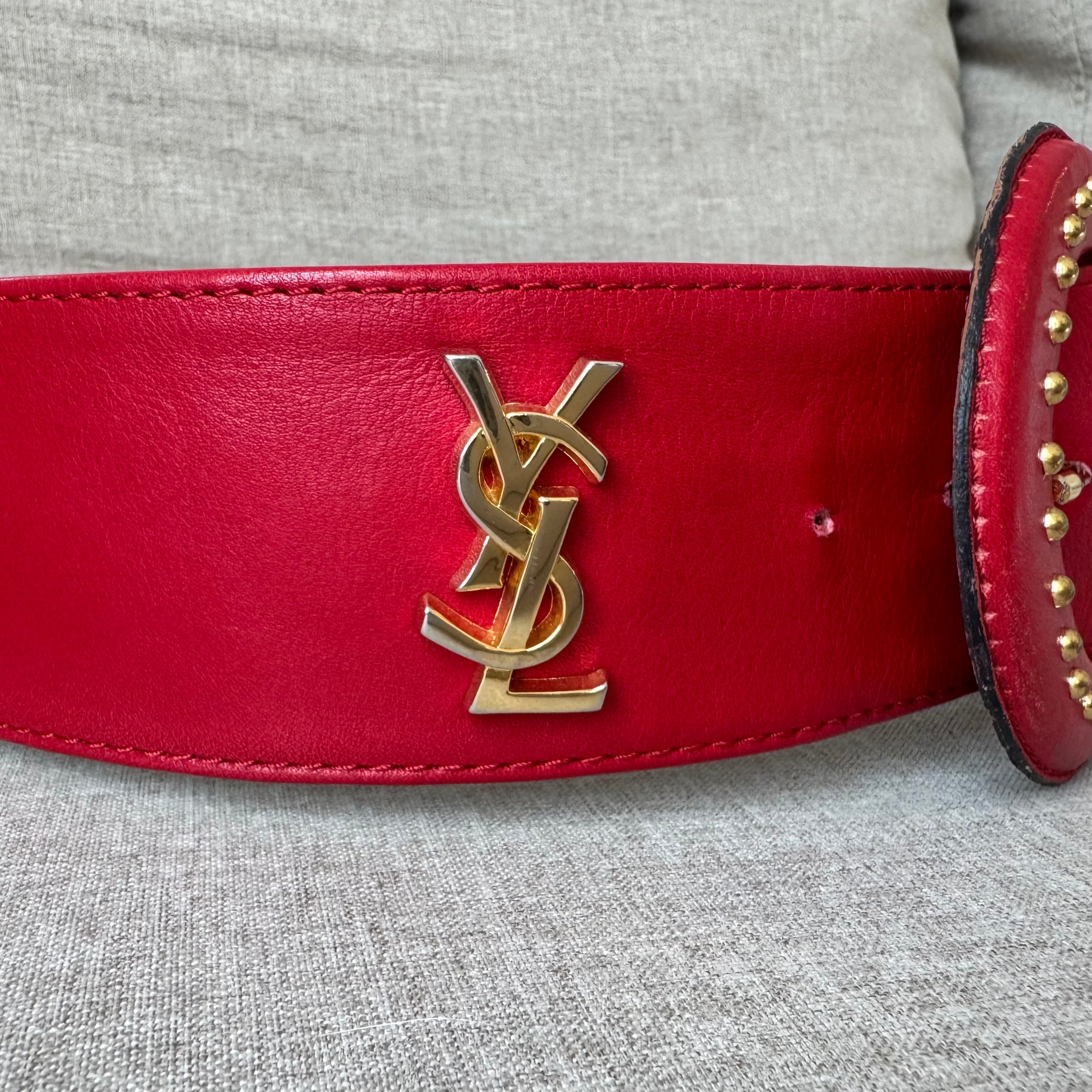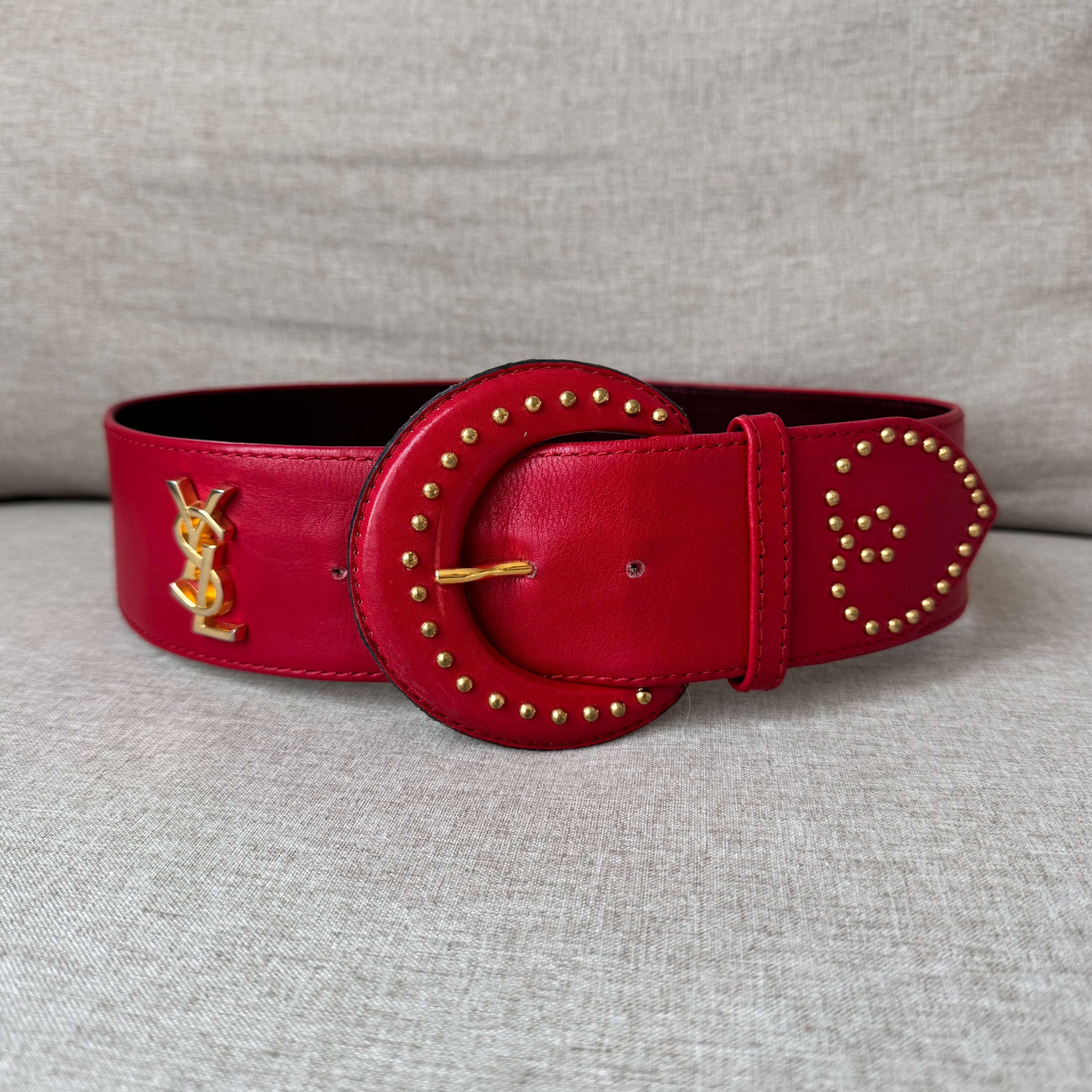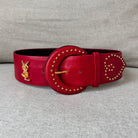 Yves Saint Laurent YSL Red Leather Wide Gold Studded Belt