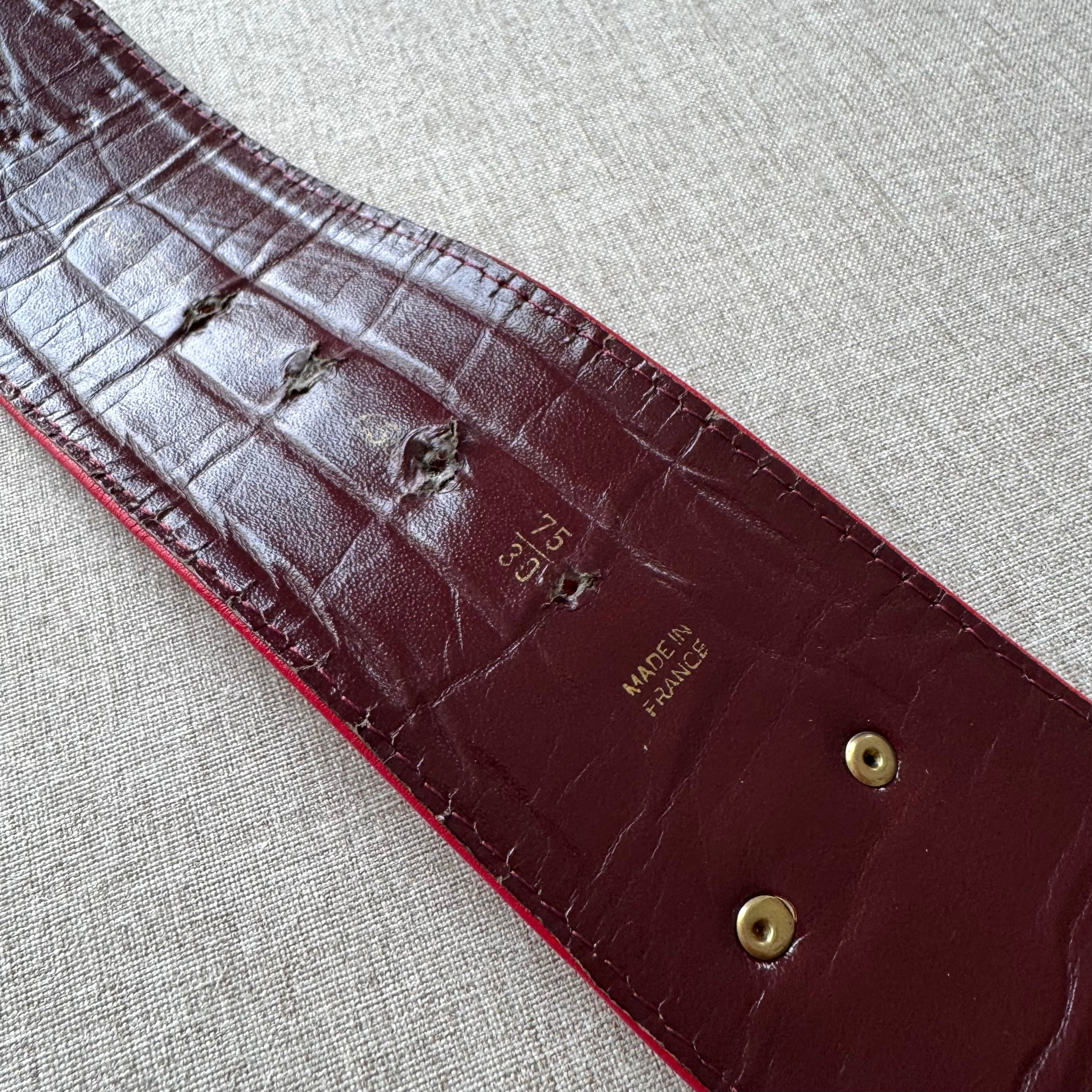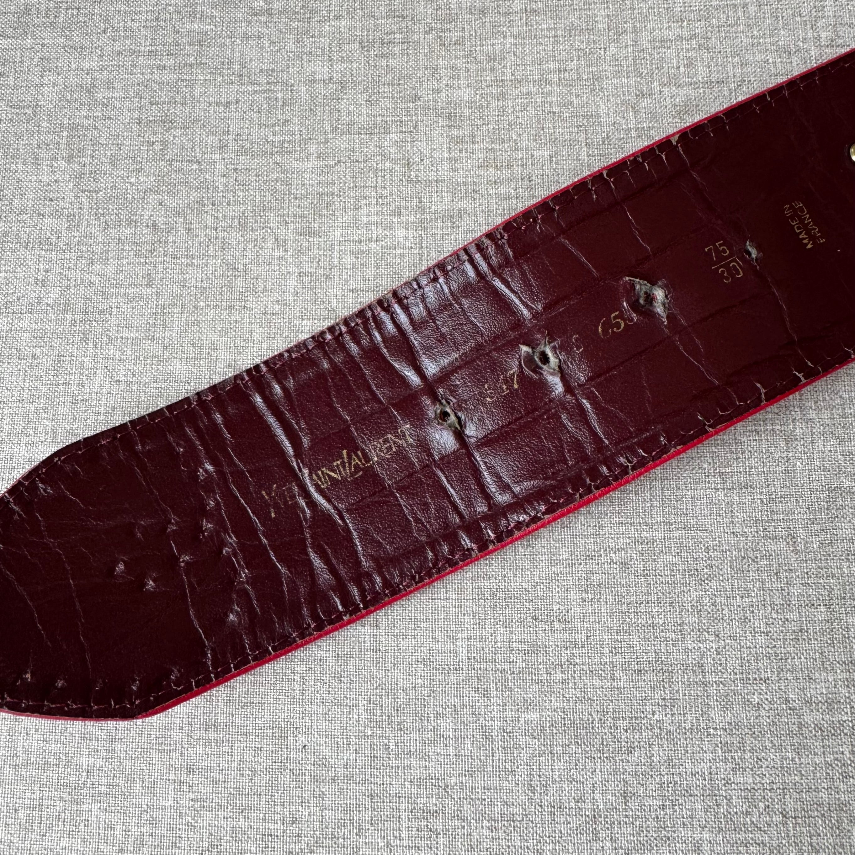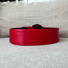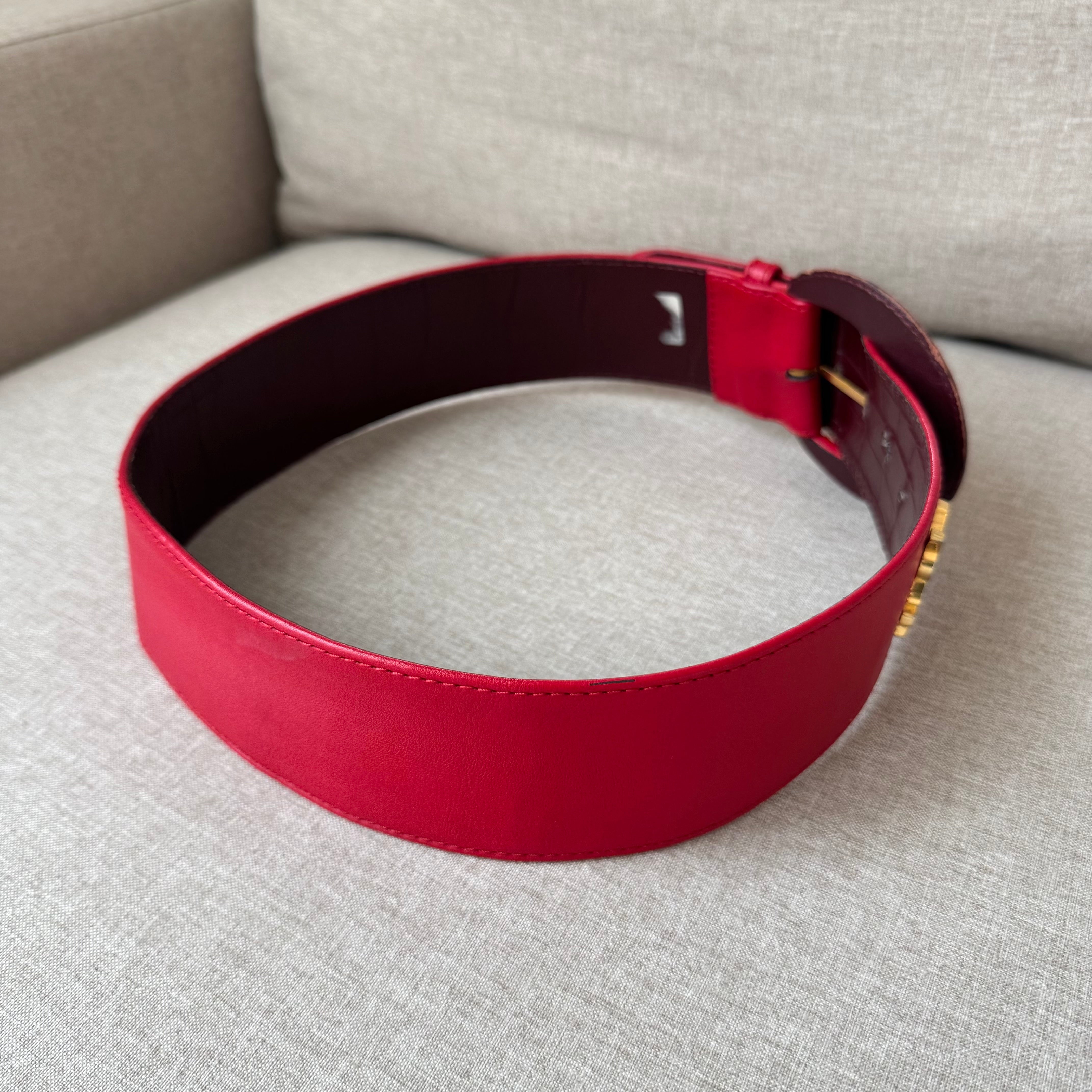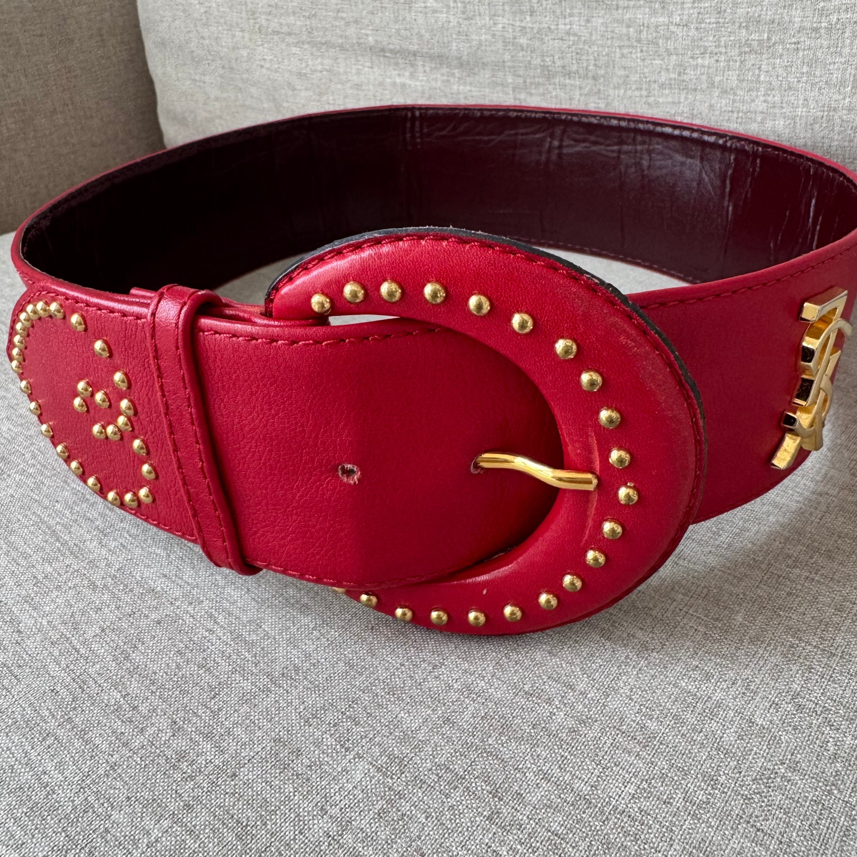 Yves Saint Laurent YSL Red Leather Wide Gold Studded Belt