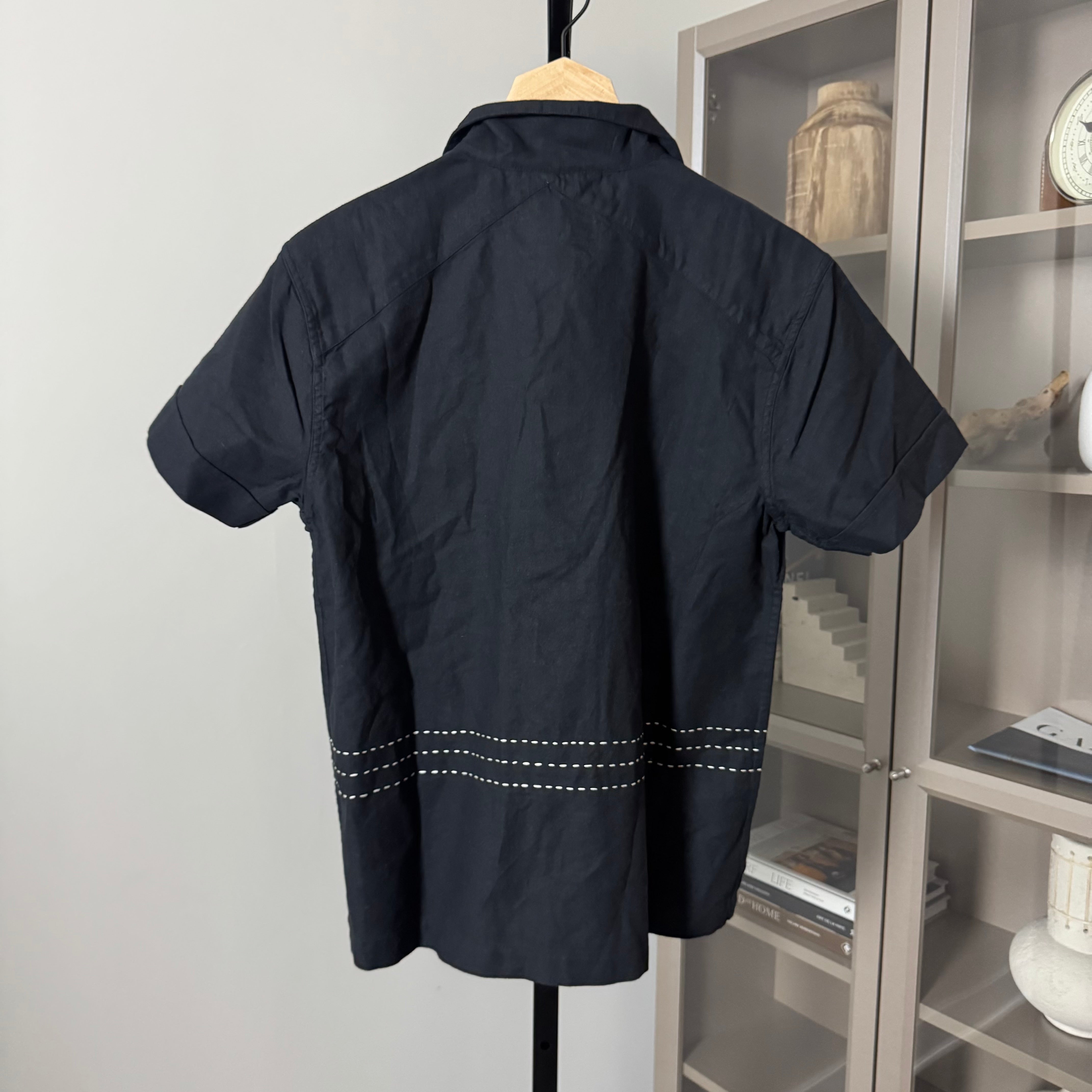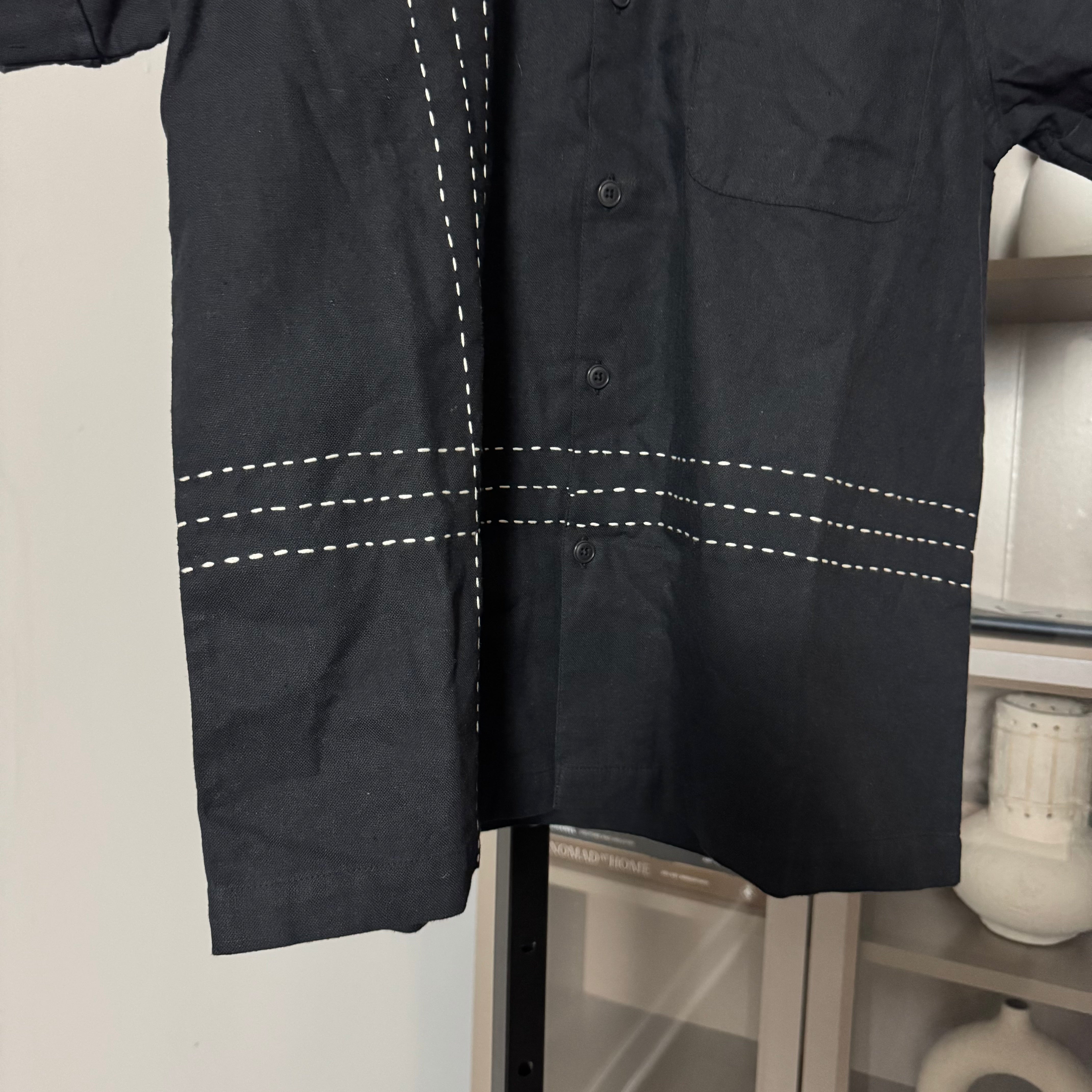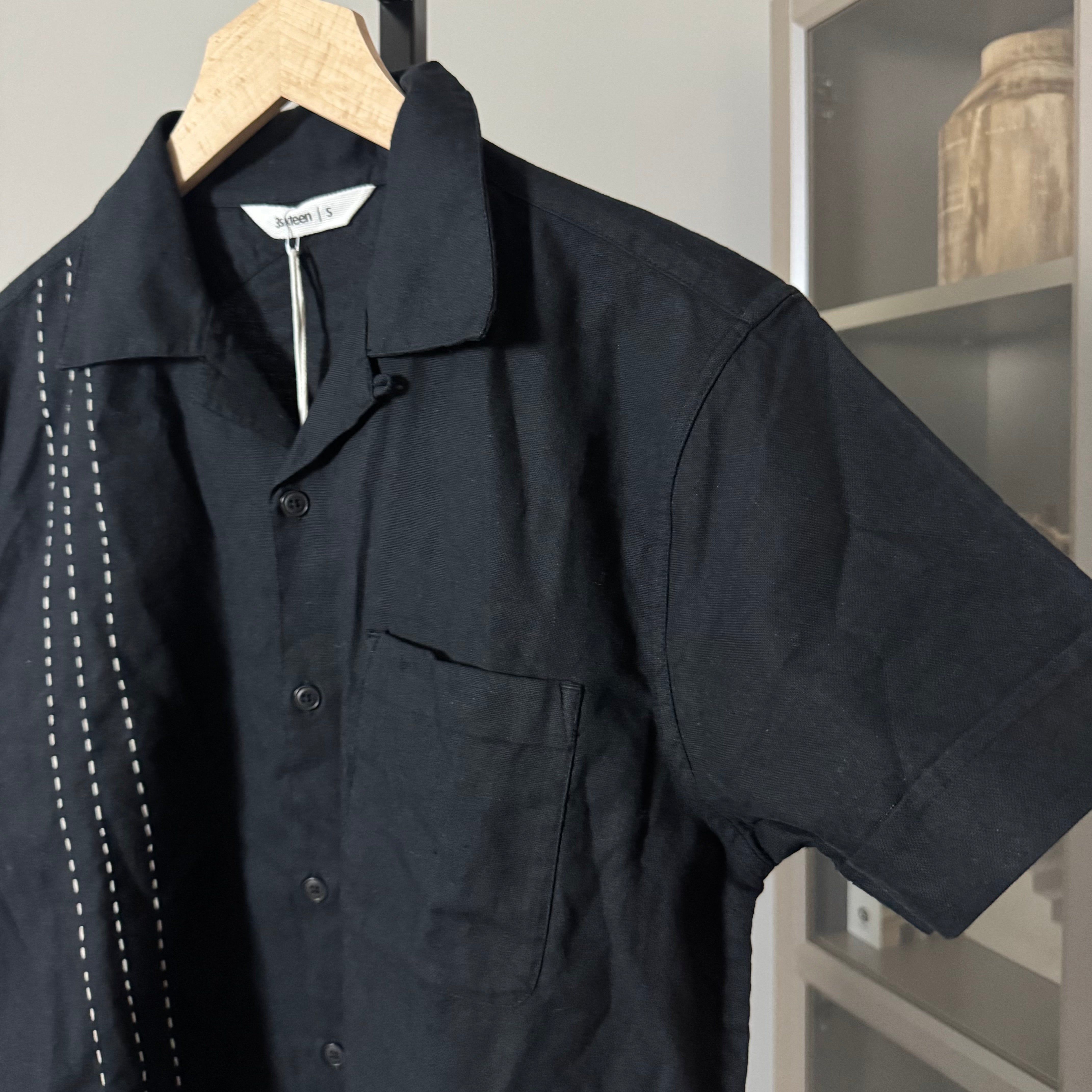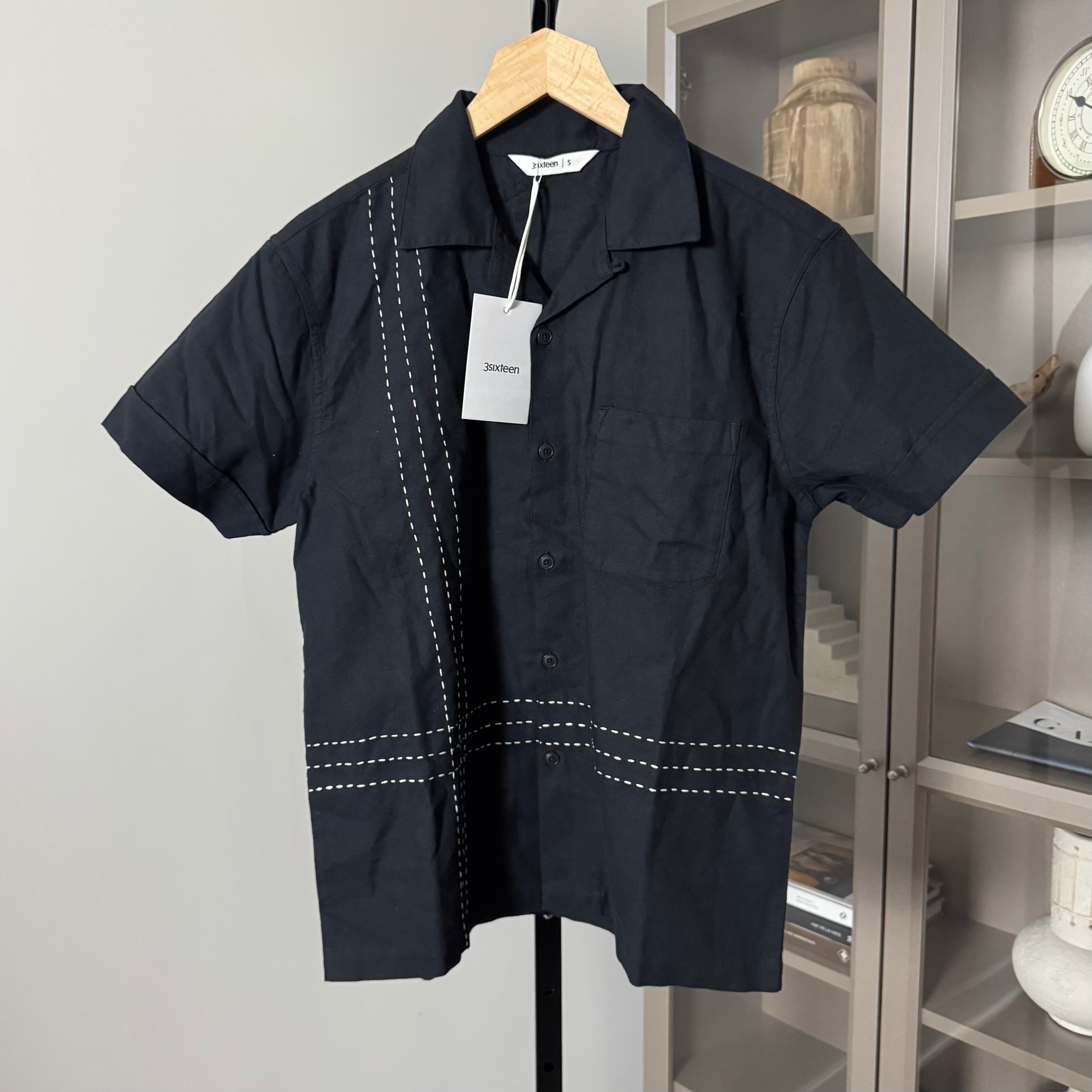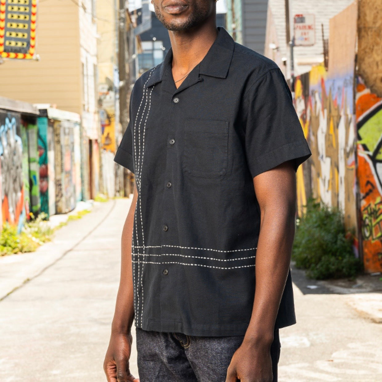 3sixteen Vacation Short Sleeve Shirt Black White Hand Stitched Stripe Pattern