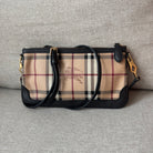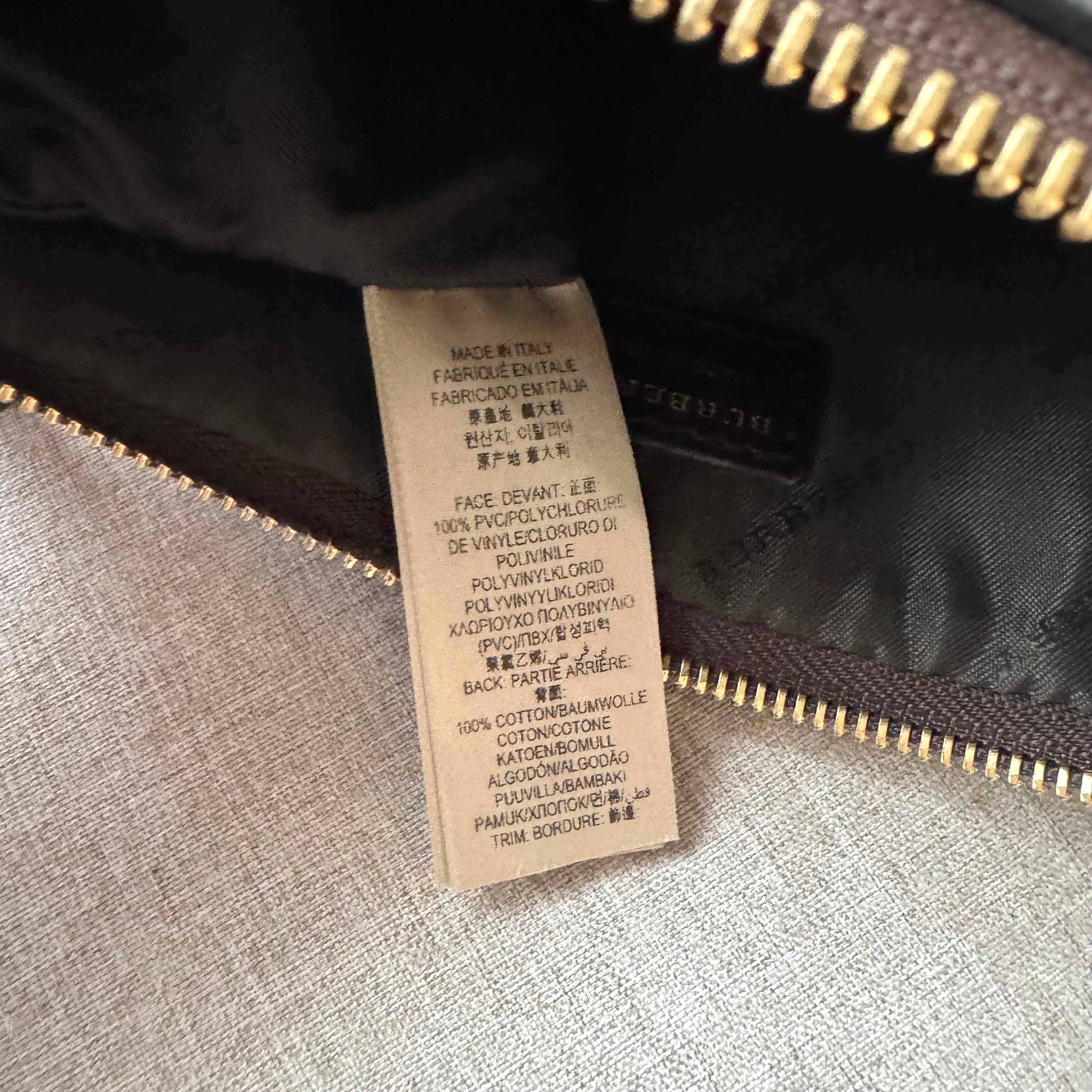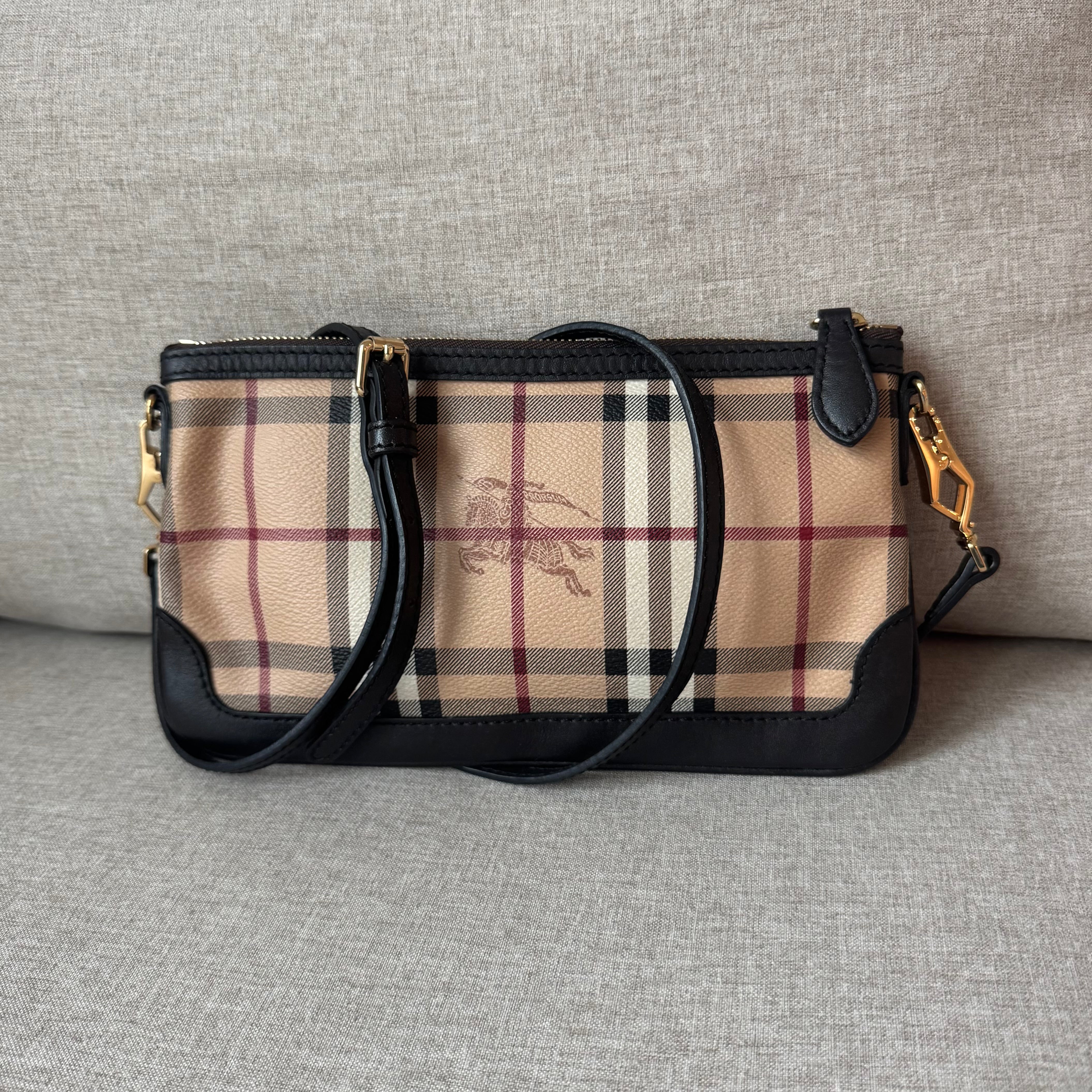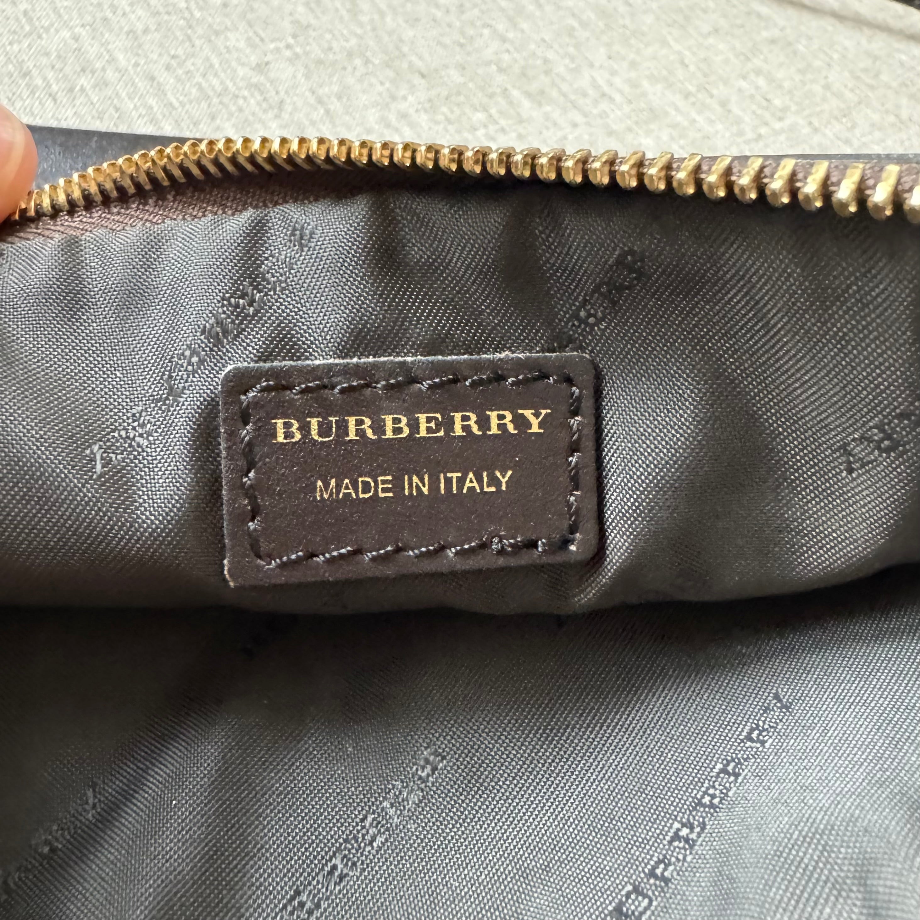 Burberry Haymarket Check Brown Leather Small Peyton Crossbody Clutch Bag