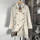 Burberry Double Breasted Nova Check Lined Stone Belted Trench Coat