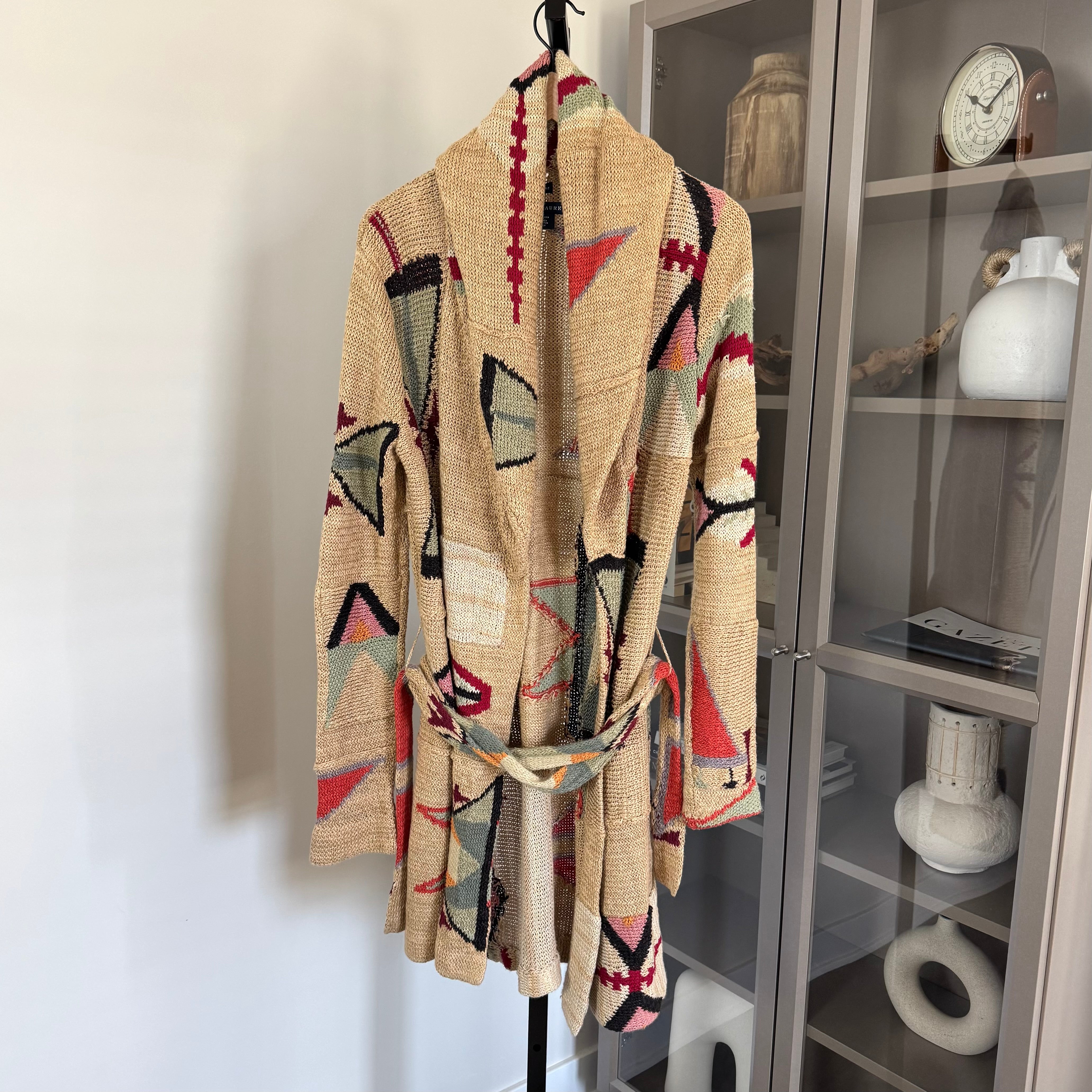 Ralph Lauren Blue Label Southwestern Intarsia Knit Belted Sweater Cardigan