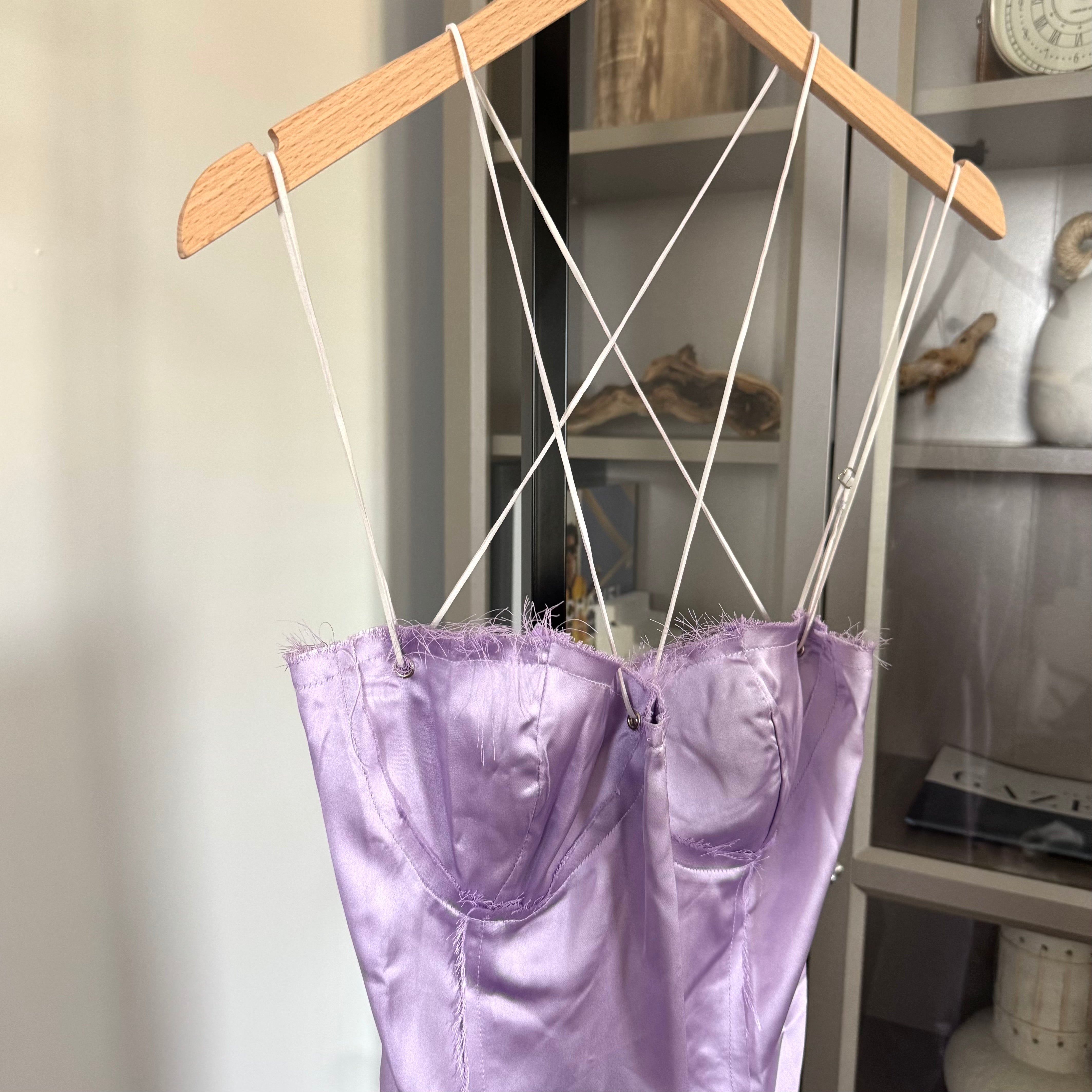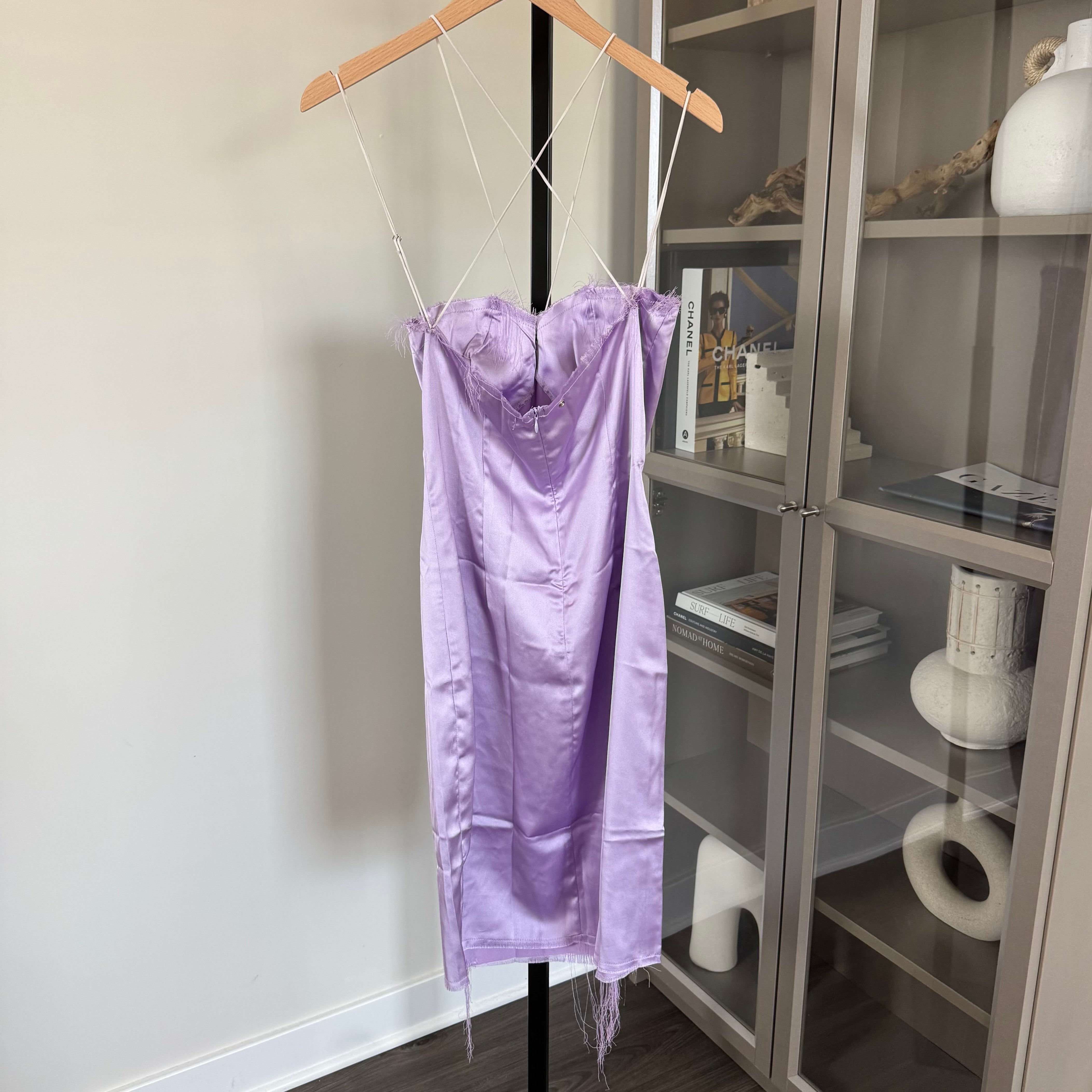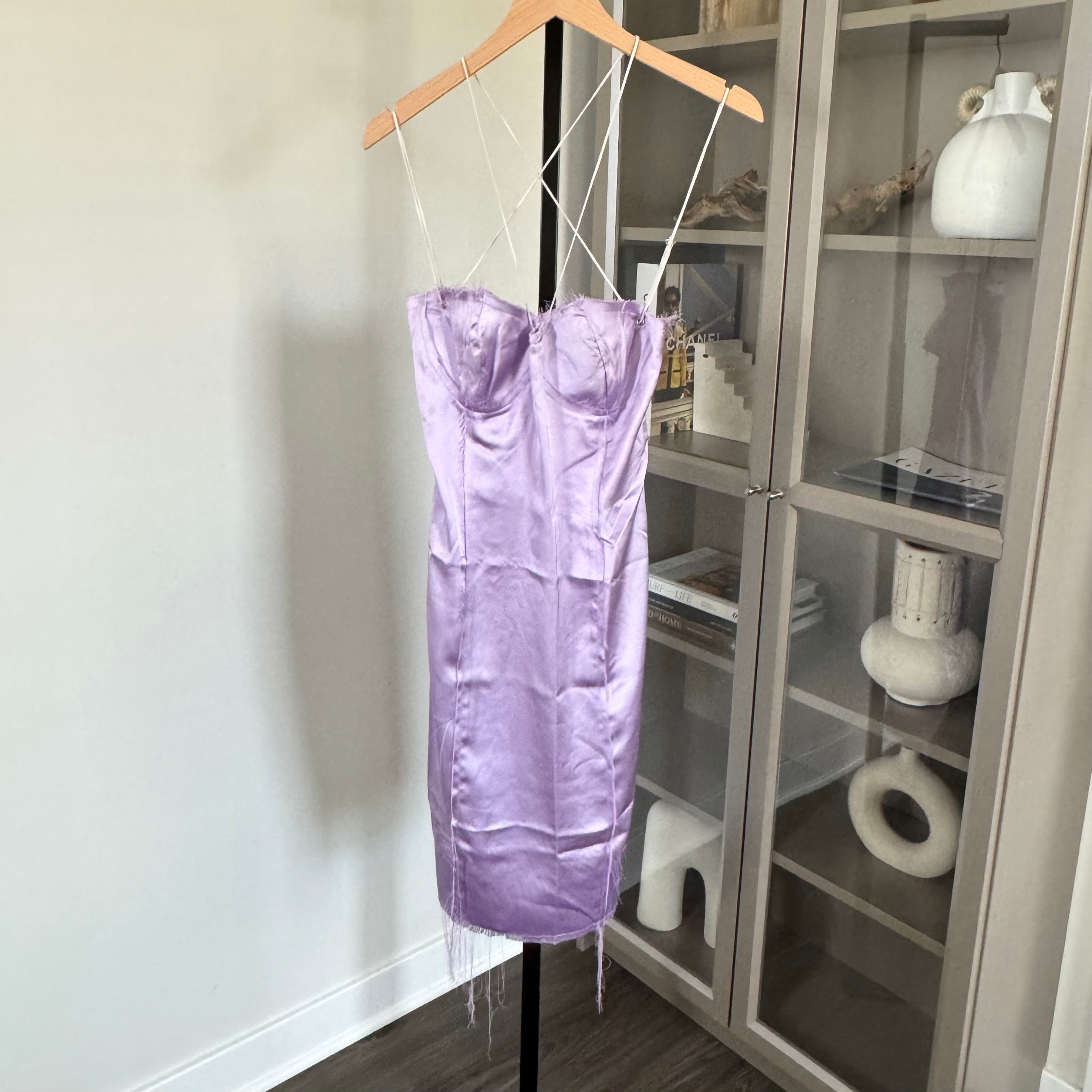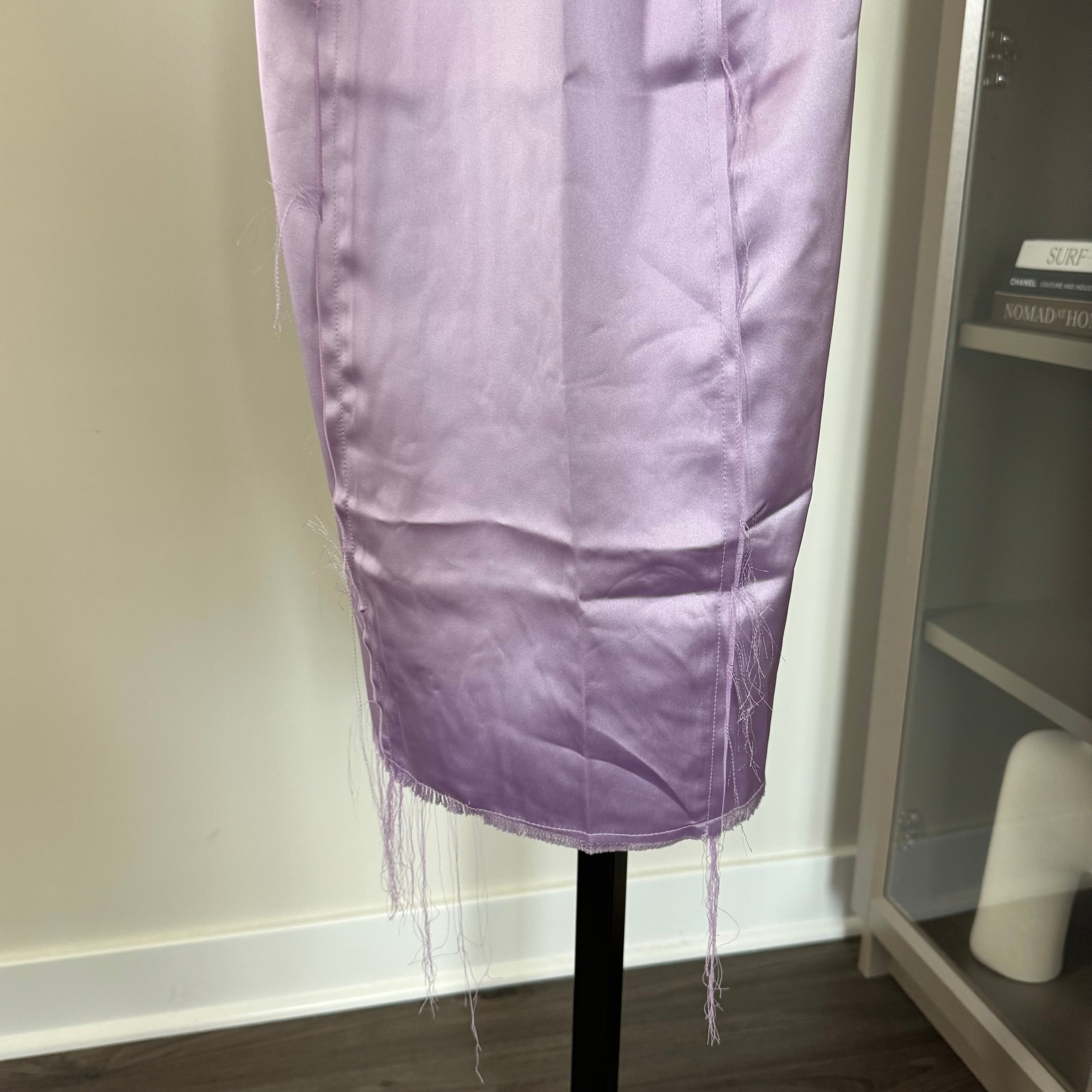Danielle Guizio Lavender Satin Multi-Strap Frayed Bustier Slip Dress